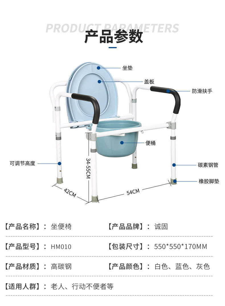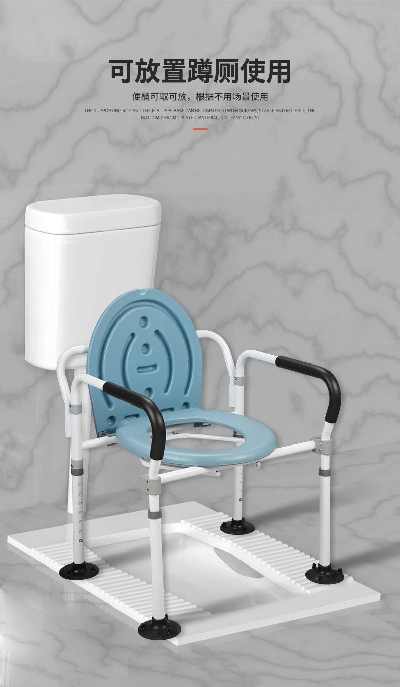 Fábrica en stock ancianos inodoro silla móvil inodoro taburete hogar inodoro silla plegable de acero inoxidable mujeres embarazadas Silla de baño