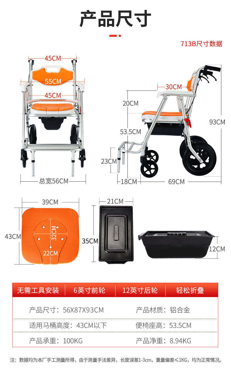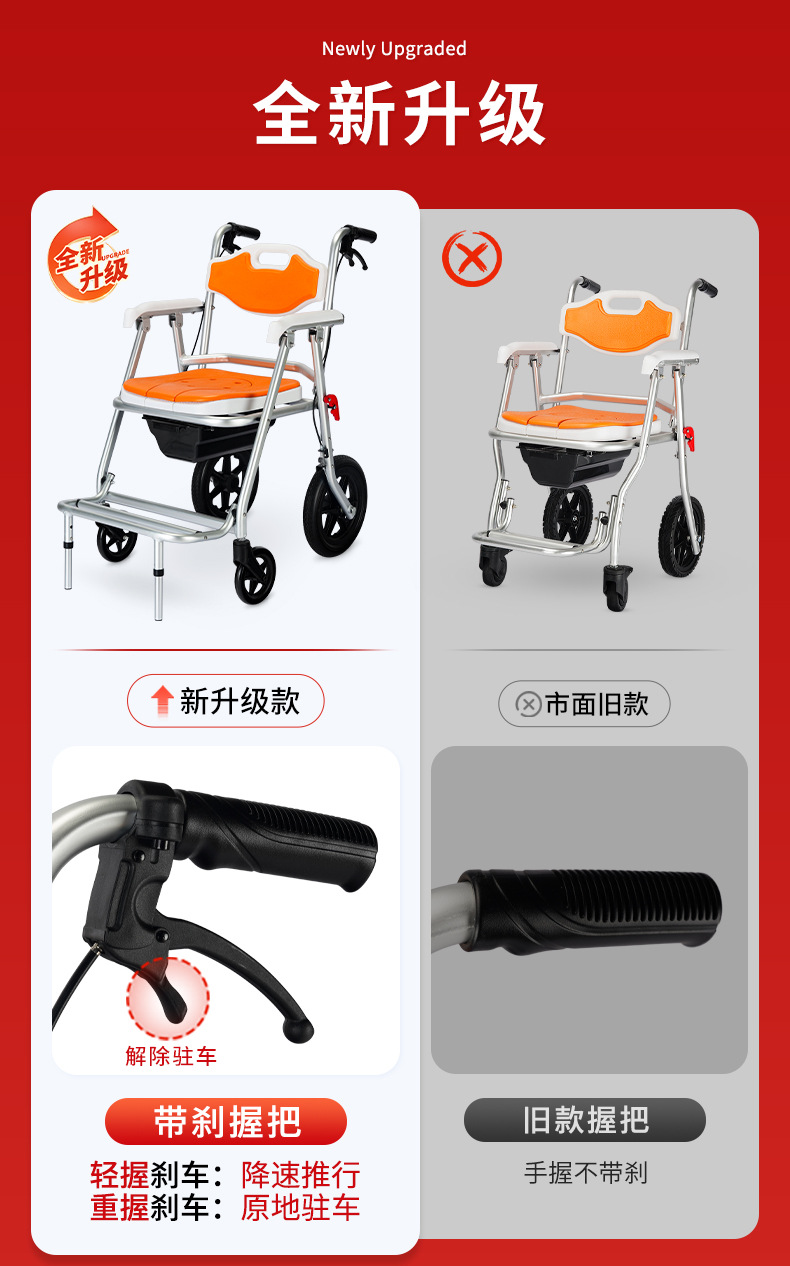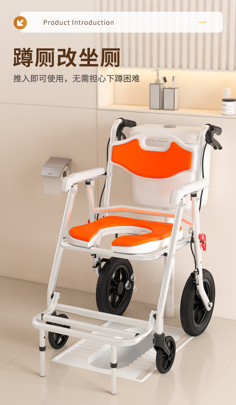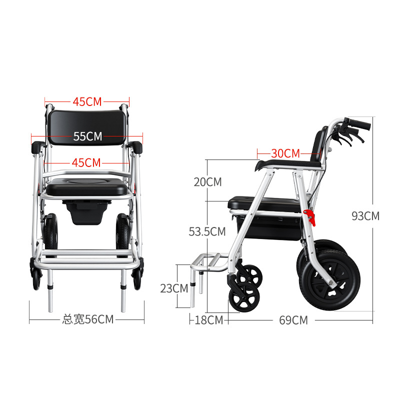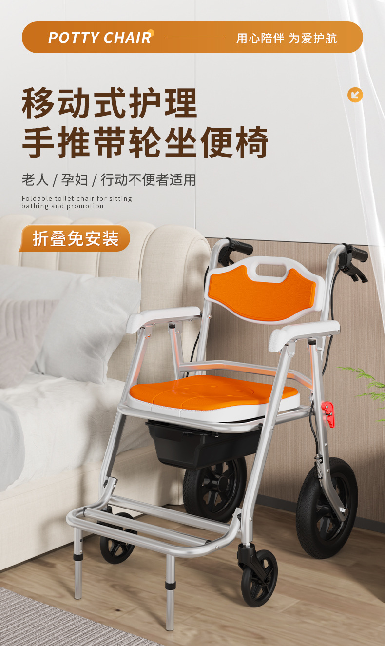 Silla de inodoro para ancianos con ruedas inodoro para discapacitados inodoro móvil orinal cuidado en el hogar Baño plegable pequeña silla de ruedas