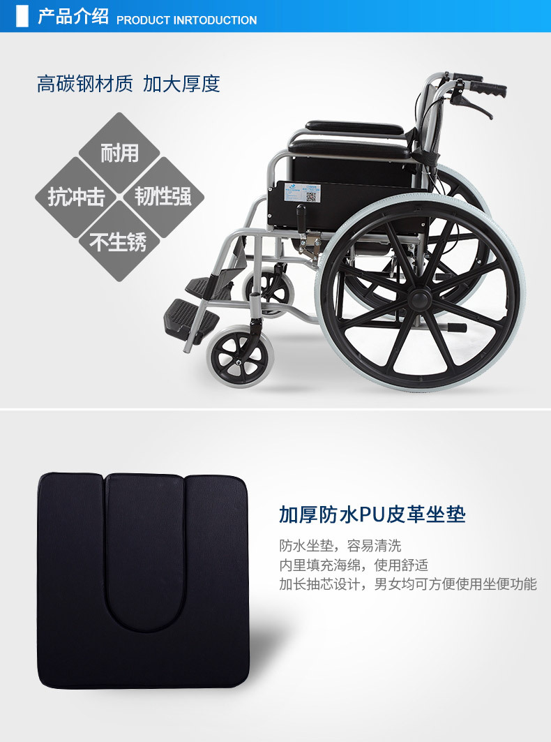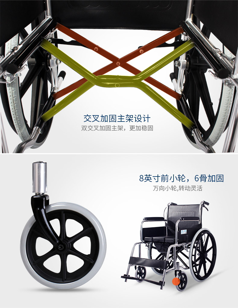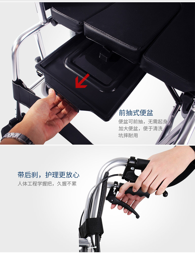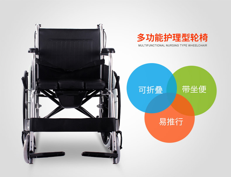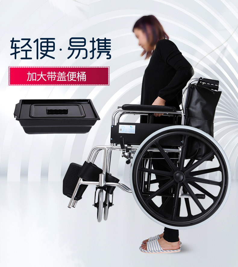 Silla de ruedas de la silla de ruedas de la silla de ruedas de acero de alto carbono para personas mayores con inodoro plegable carro de mano multifuncional ligero