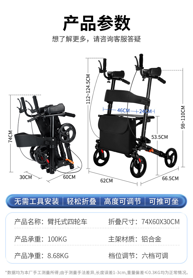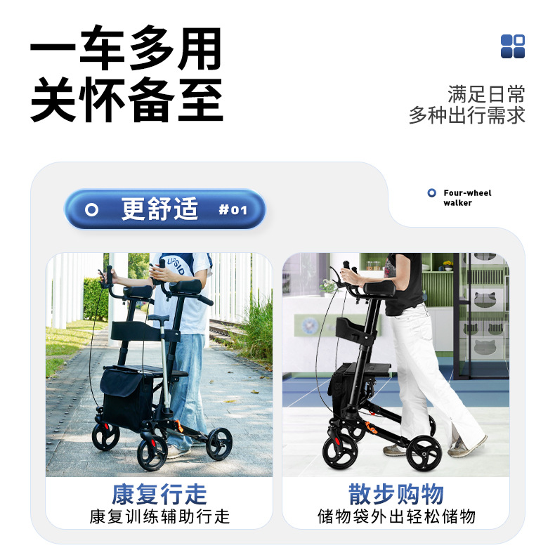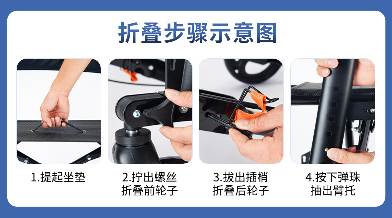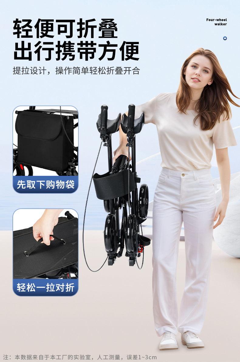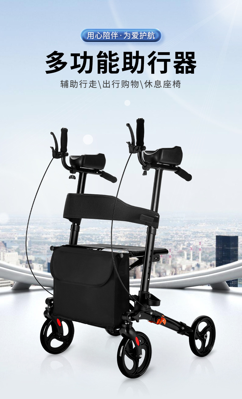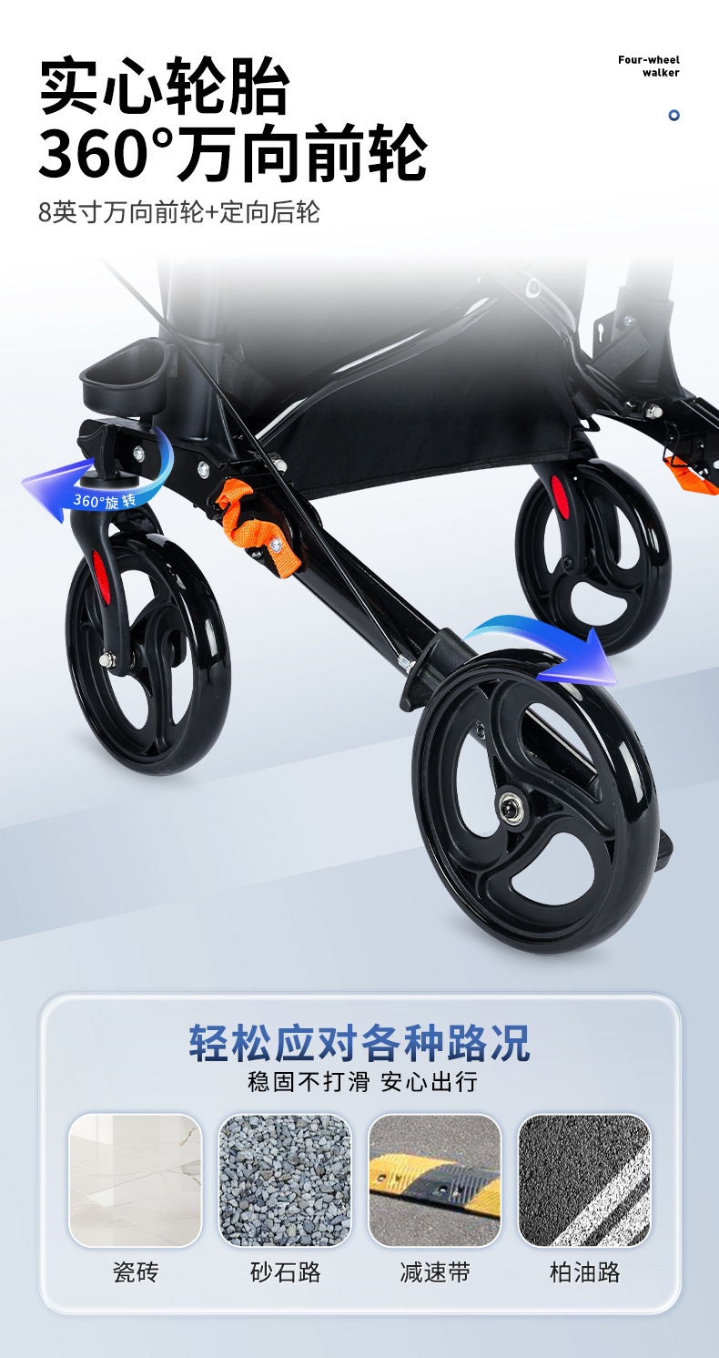 Carro de andador para personas mayores, andador de aleación de aluminio, scooter ligero, carrito de compras para personas mayores, silla de ruedas simple