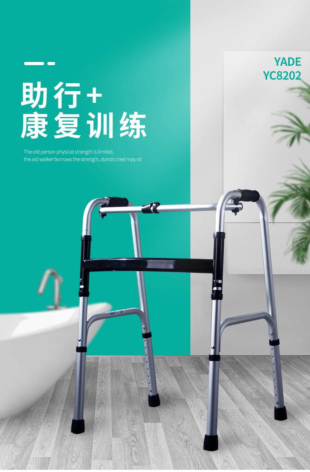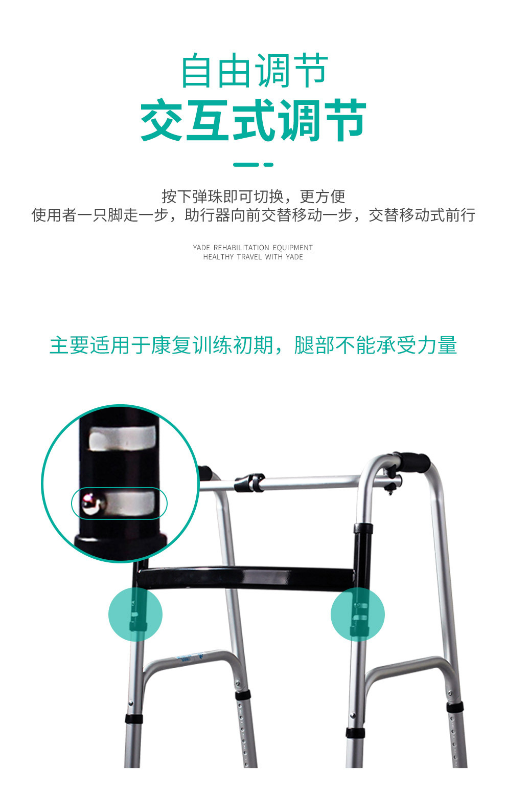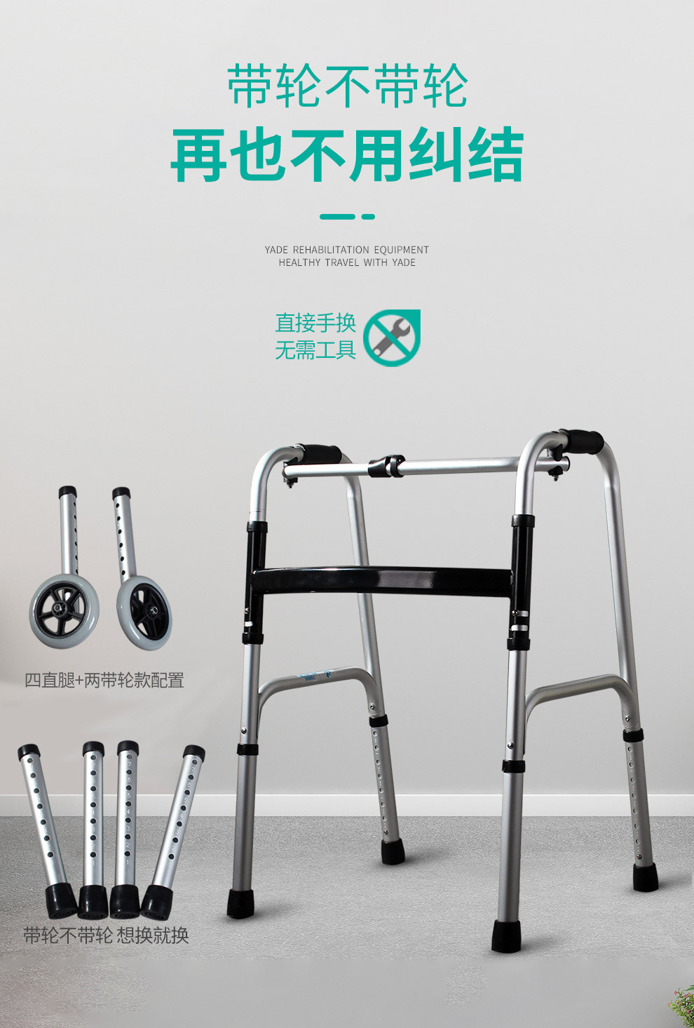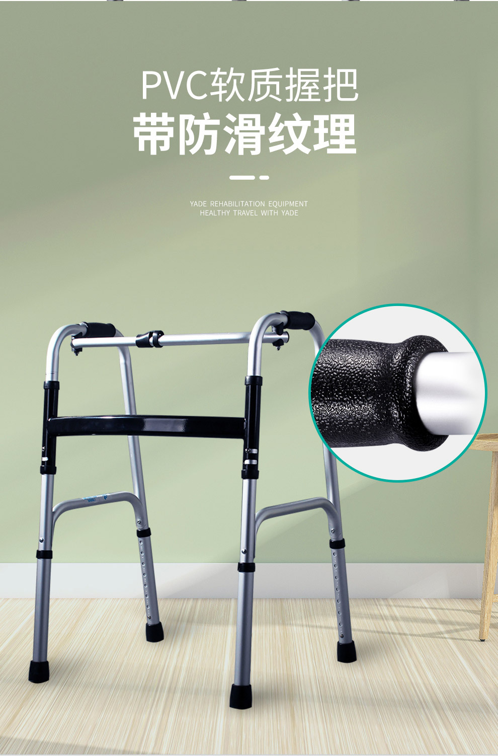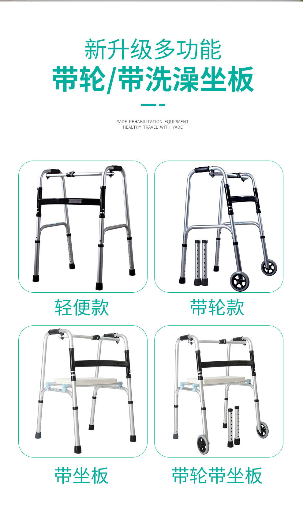 Aleación de aluminio ayuda a caminar muleta ancianos equipo médico polea con cojín