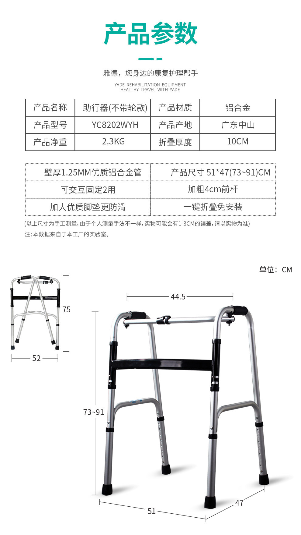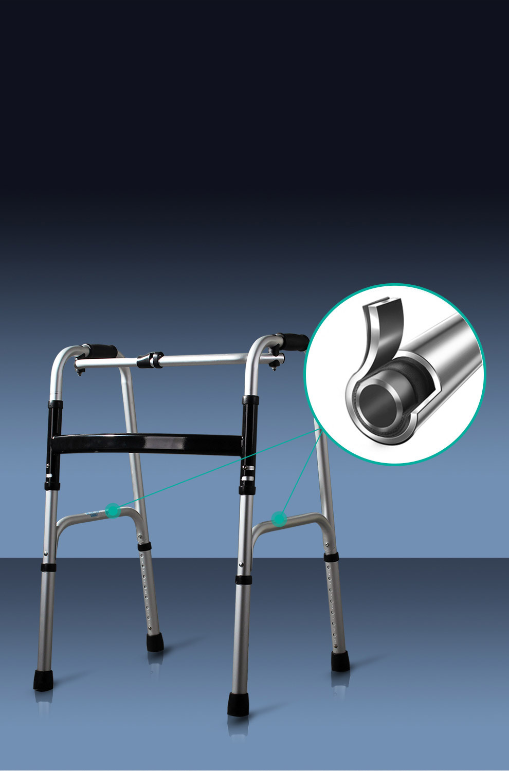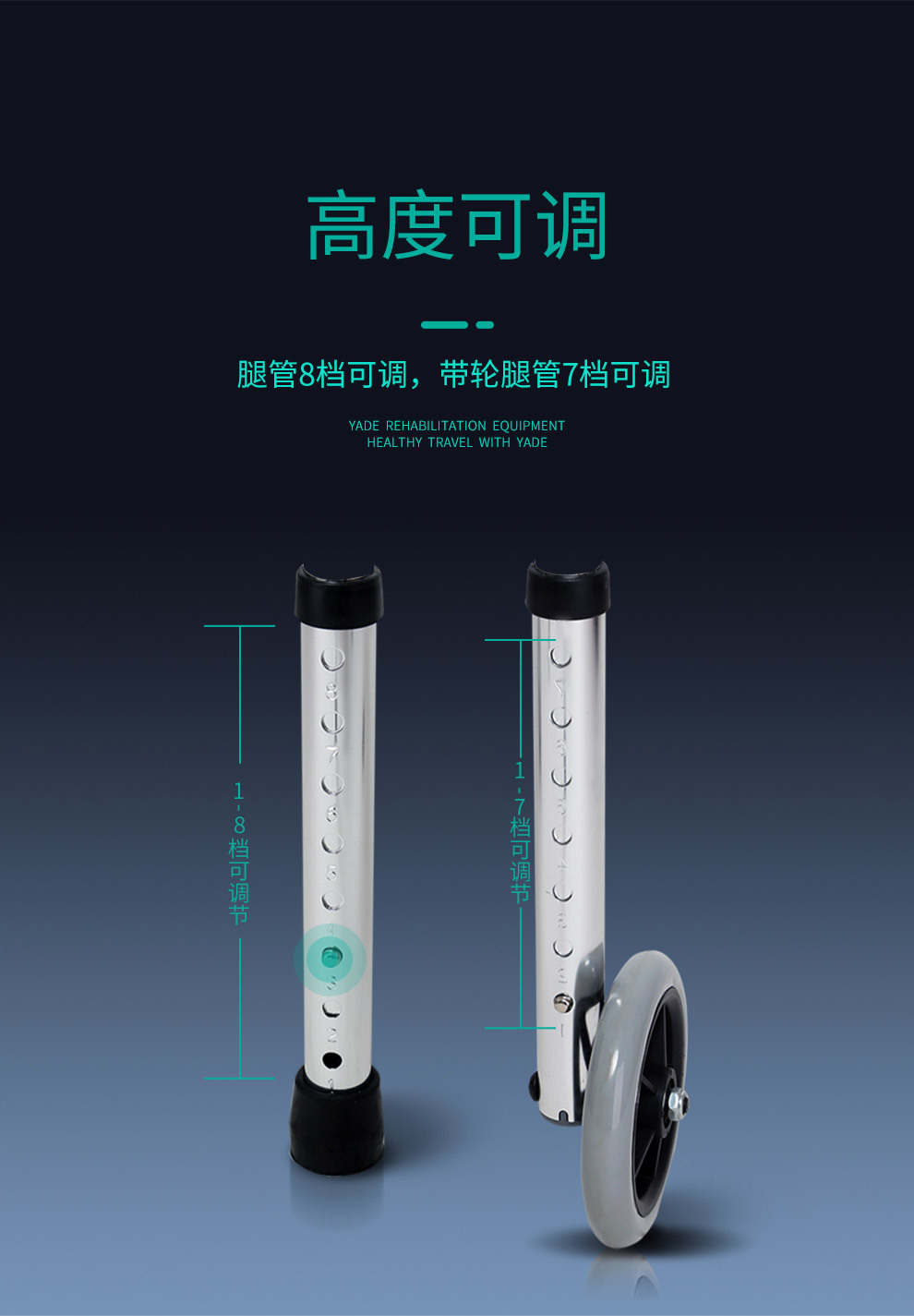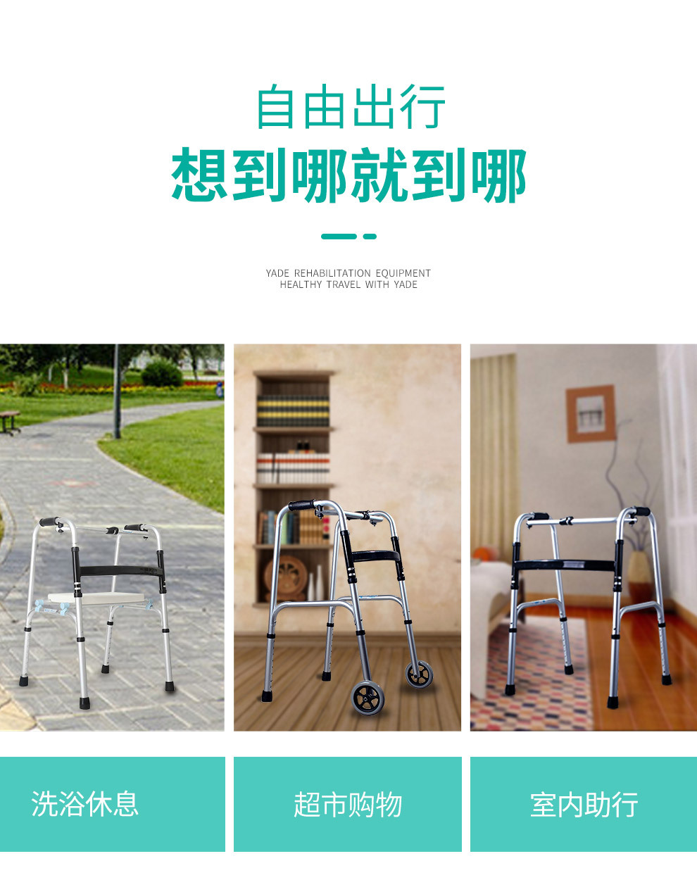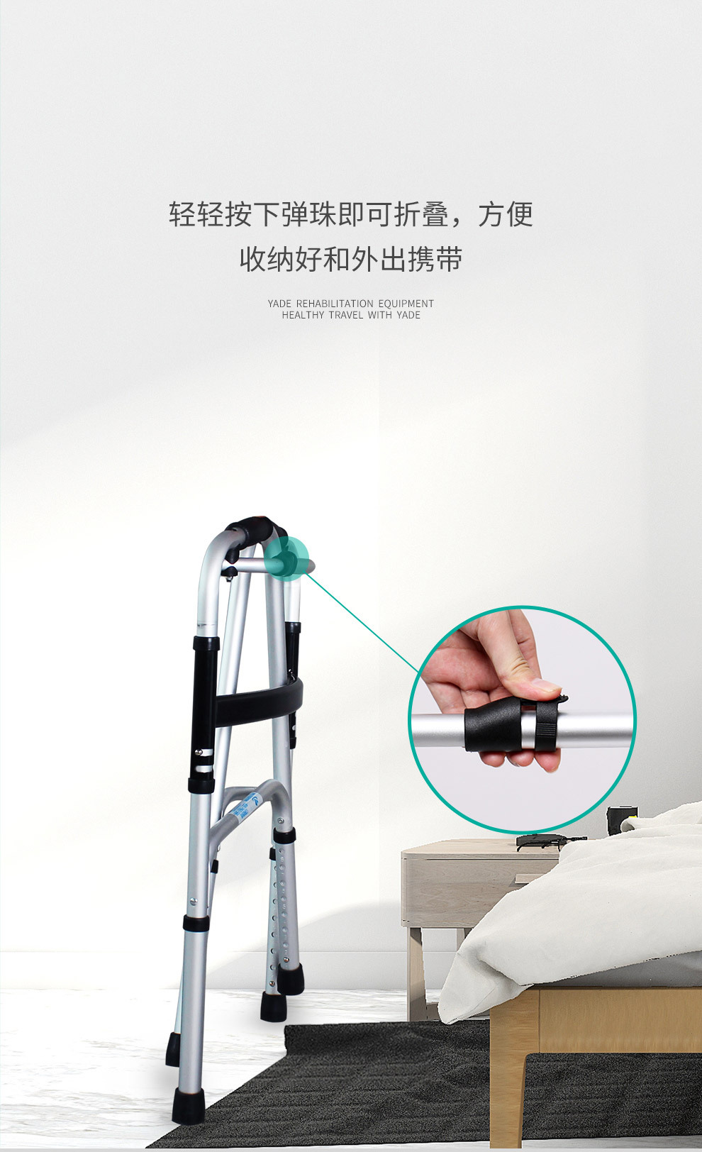Aleación de aluminio ayuda a caminar muleta ancianos equipo médico polea con cojín