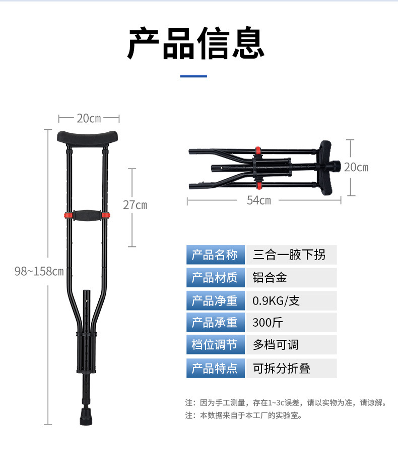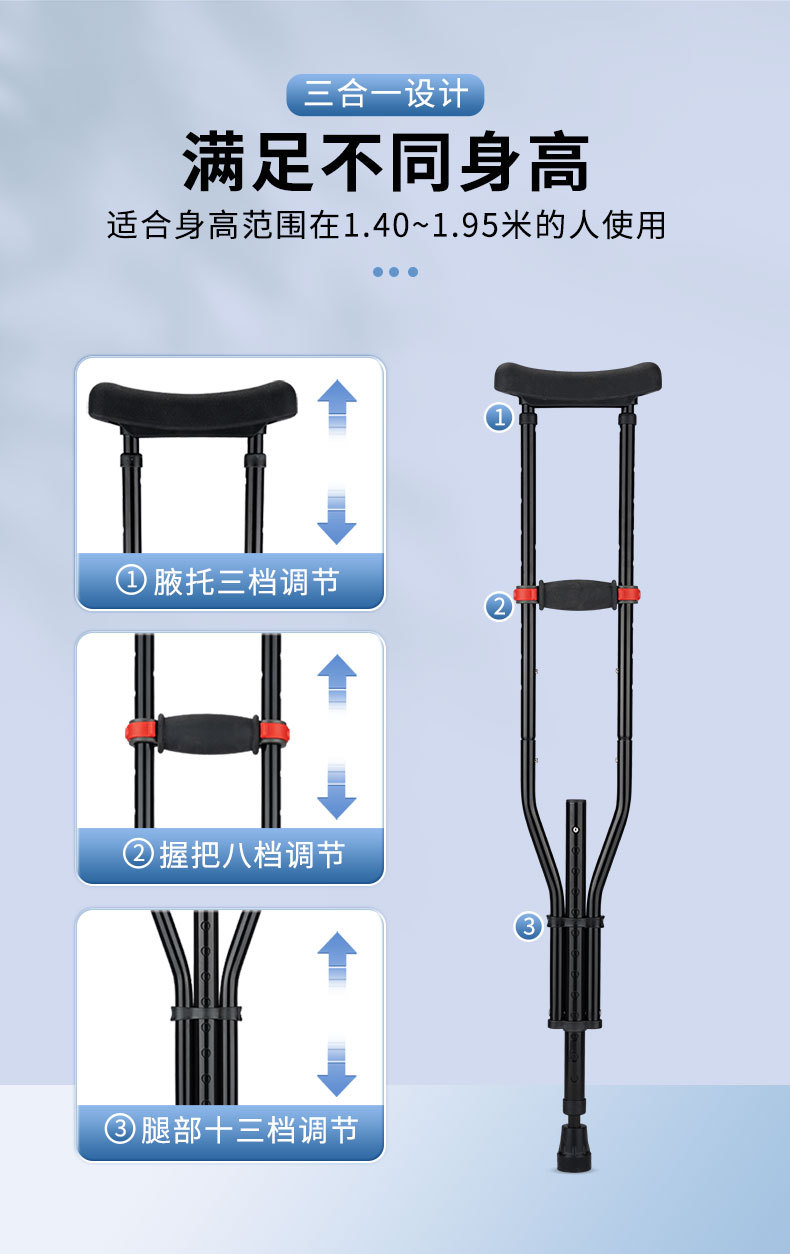 muletas axilares muletas de aleación de aluminio médico antideslizante muletas de dos personas mayores andador discapacitado muletas ajustable muletas de una sola persona