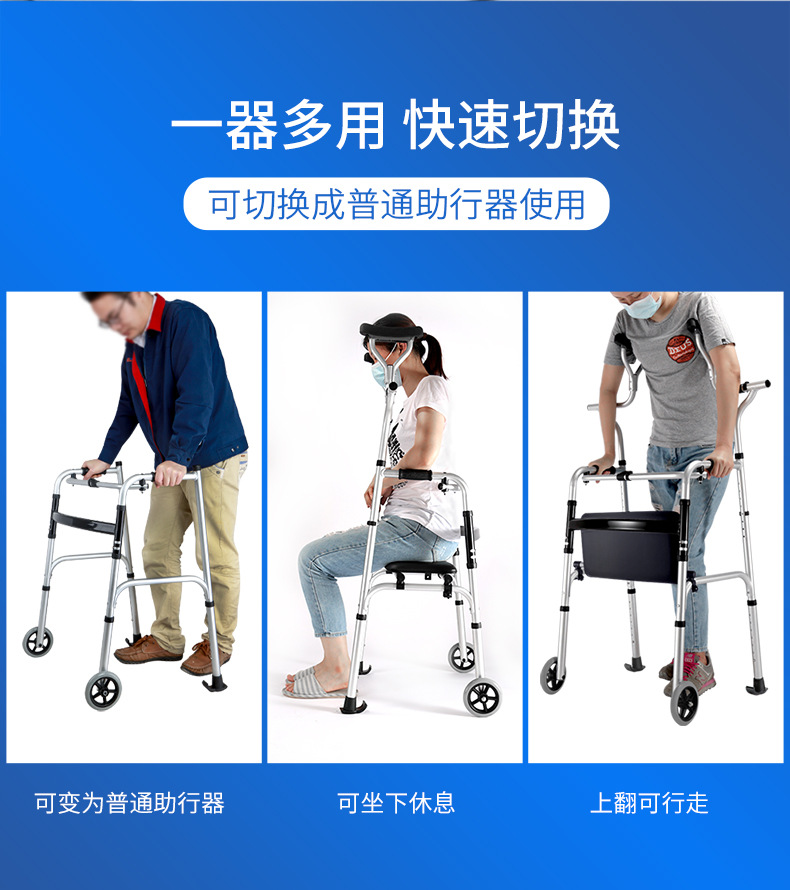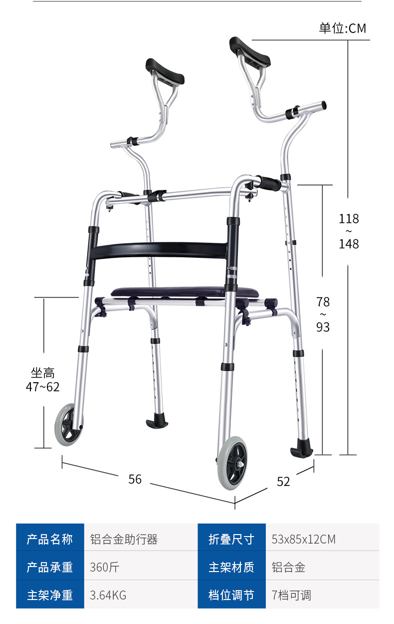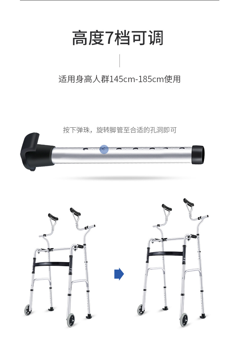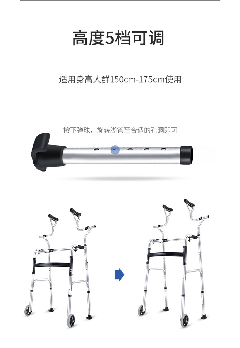 Rehabilitación de ancianos ayuda para caminar hogar aleación de aluminio estante de pie con ruedas rehabilitación equipo auxiliar axila muleta caminar ayuda cojín