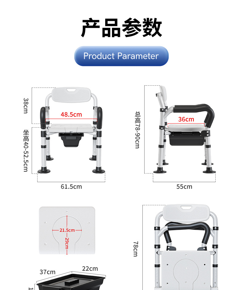 Silla de inodoro para ancianos, silla de baño plegable para el hogar, taburete de inodoro para mujeres embarazadas, silla de inodoro para pacientes con movilidad reducida