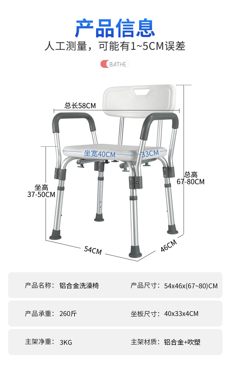 Silla de baño mujeres embarazadas antideslizante ligero baño lavado de pies taburete ancianos ducha inodoro silla baño aleación de aluminio
