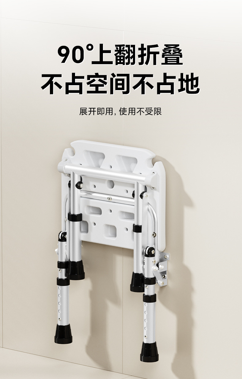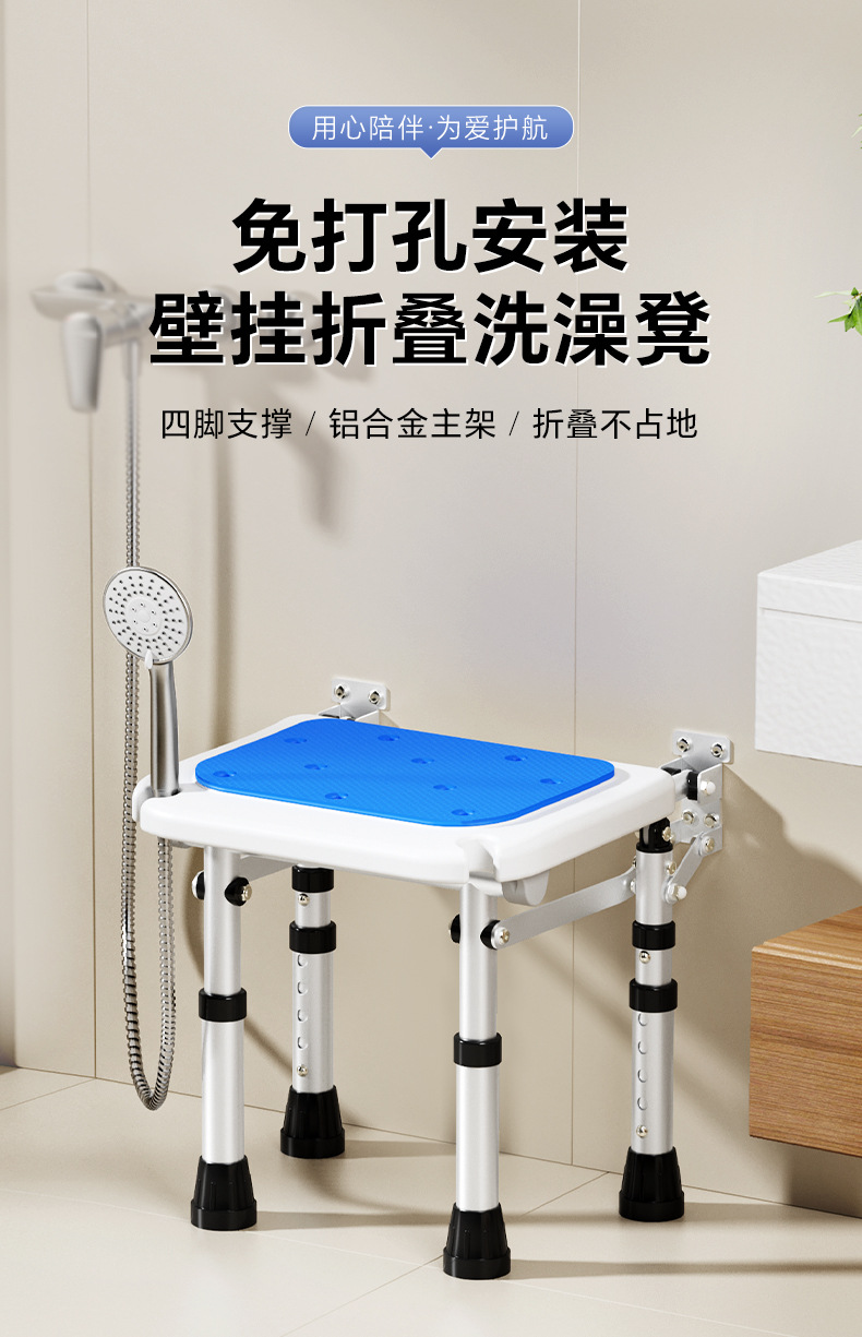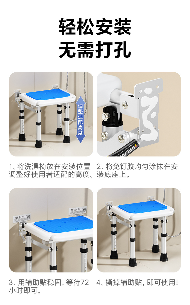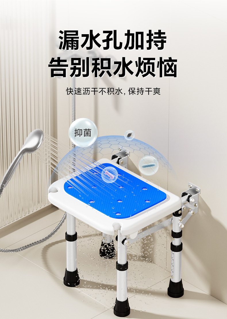 Taburete plegable de baño Taburete de baño de pared sin perforación contra la pared Taburete de ducha antideslizante para ancianos Silla de ducha