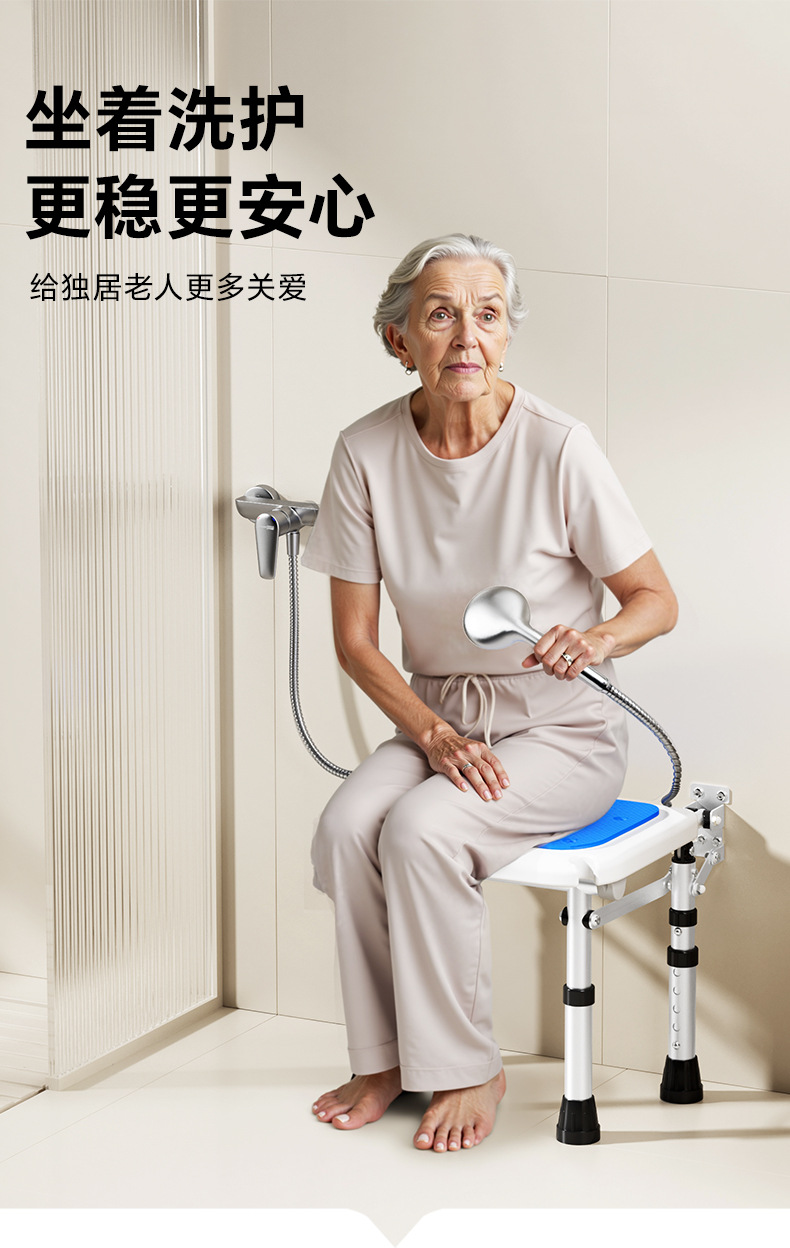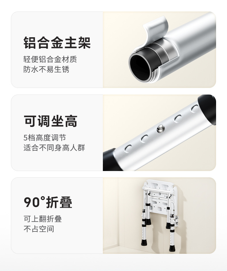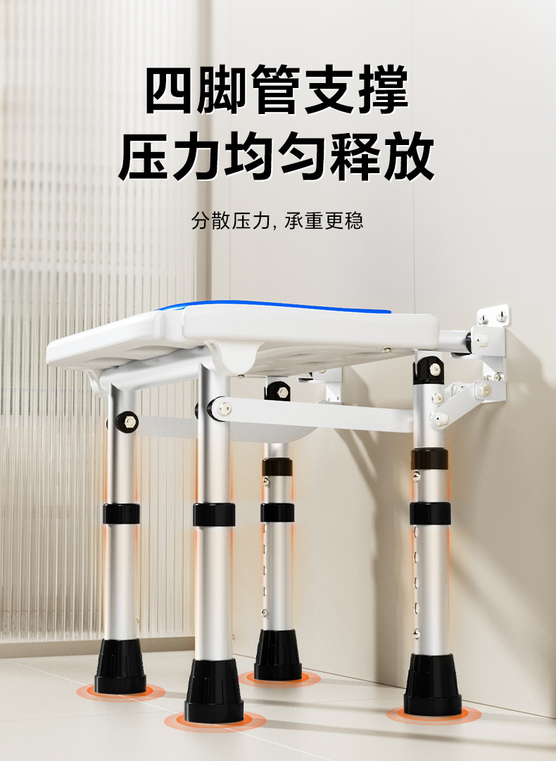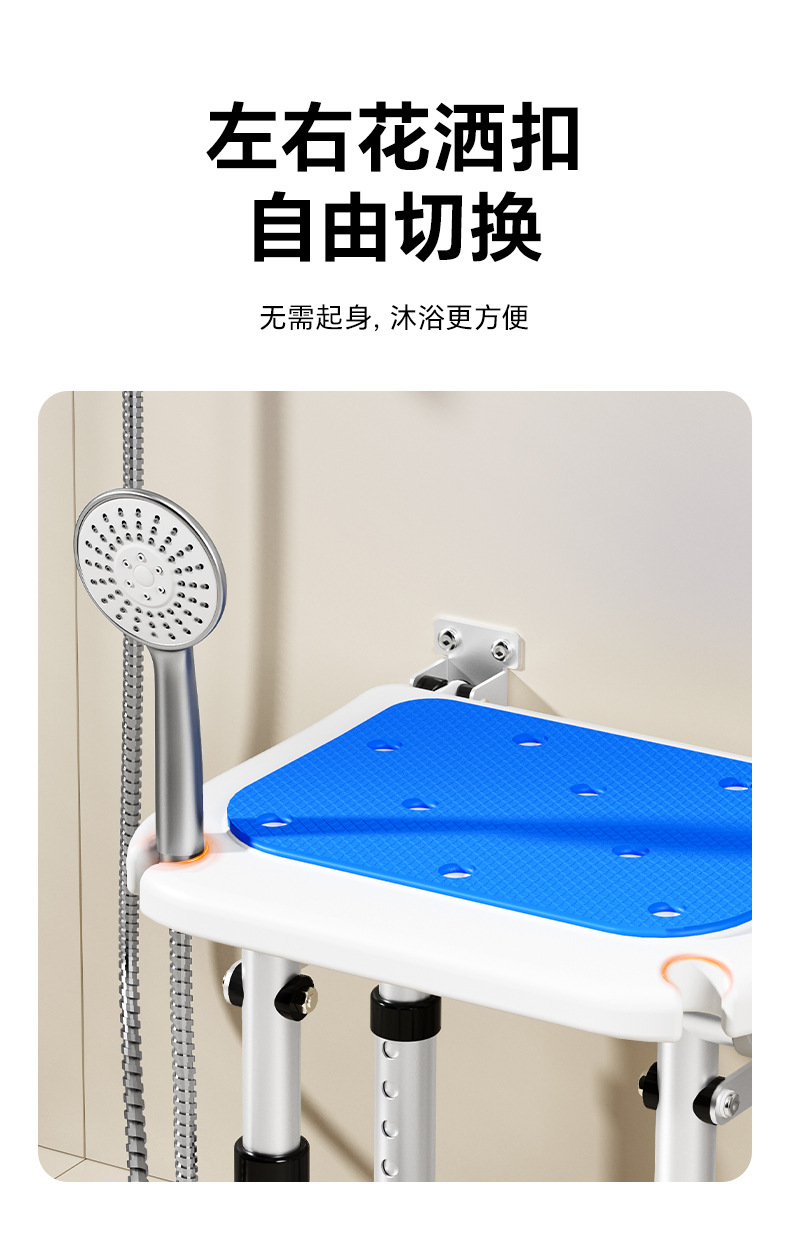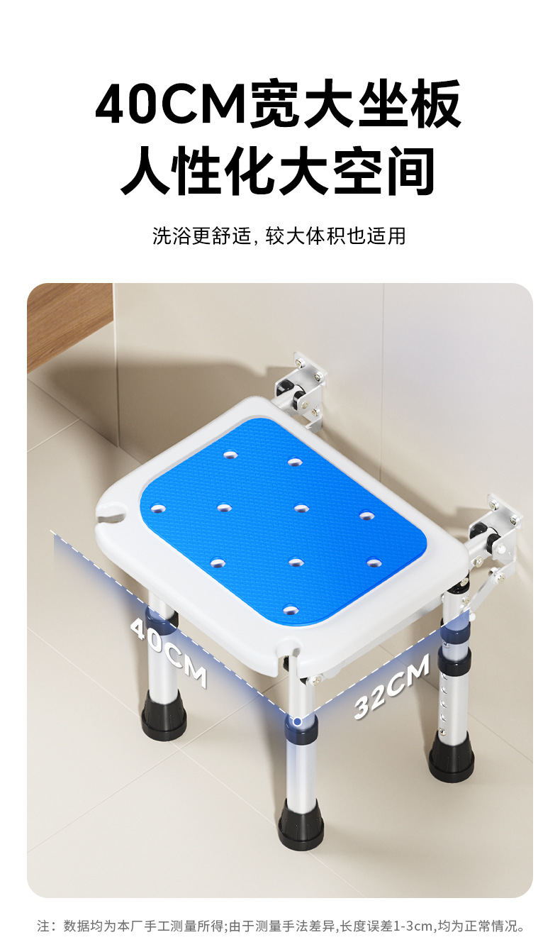 Taburete plegable de baño Taburete de baño de pared sin perforación contra la pared Taburete de ducha antideslizante para ancianos Silla de ducha
