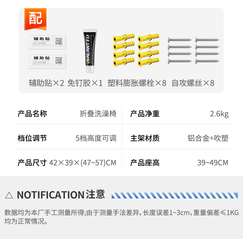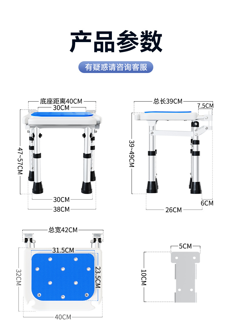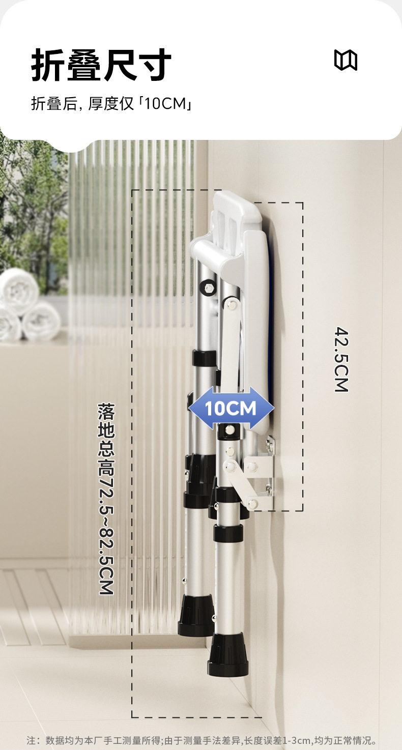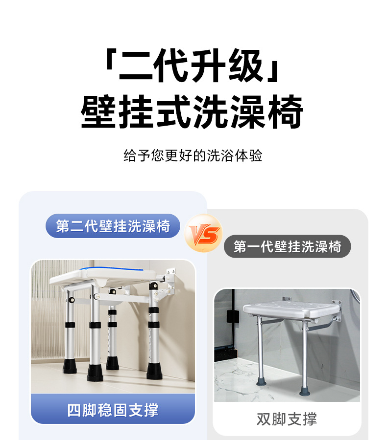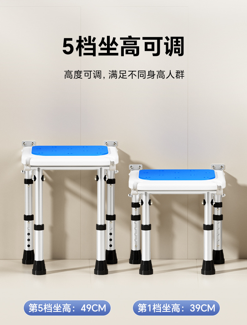 Taburete plegable de baño Taburete de baño de pared sin perforación contra la pared Taburete de ducha antideslizante para ancianos Silla de ducha