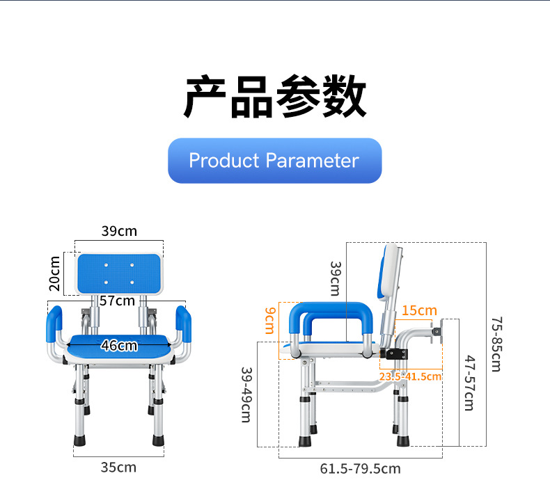 Taburete de baño silla de baño plegable silla de baño para ancianos