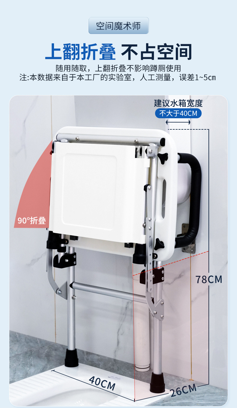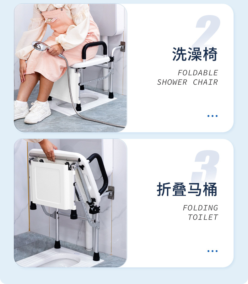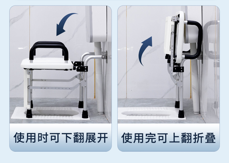 silla de inodoro plegable montada en la pared para ancianos embarazadas en cuclillas para reemplazar taburete de inodoro con pasamanos