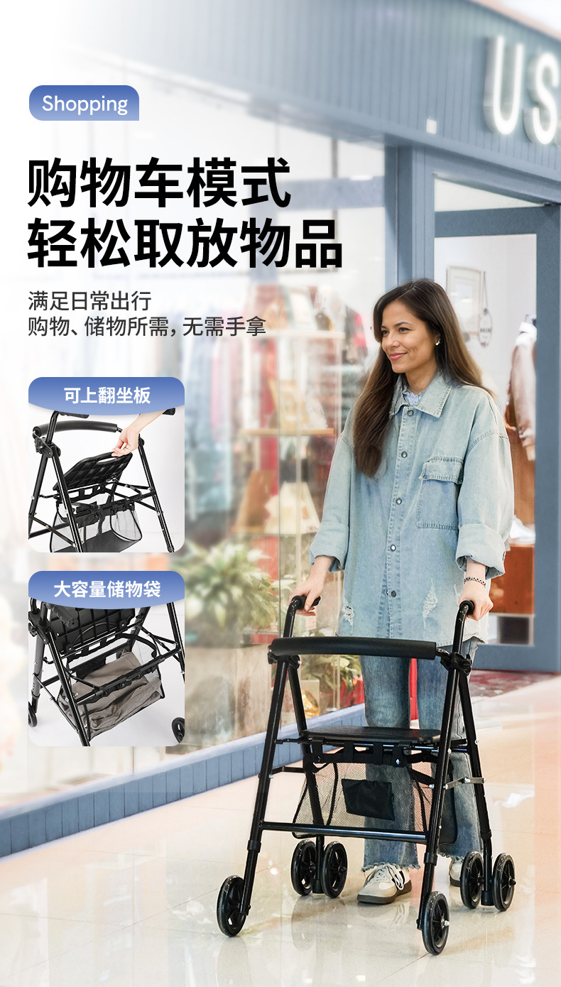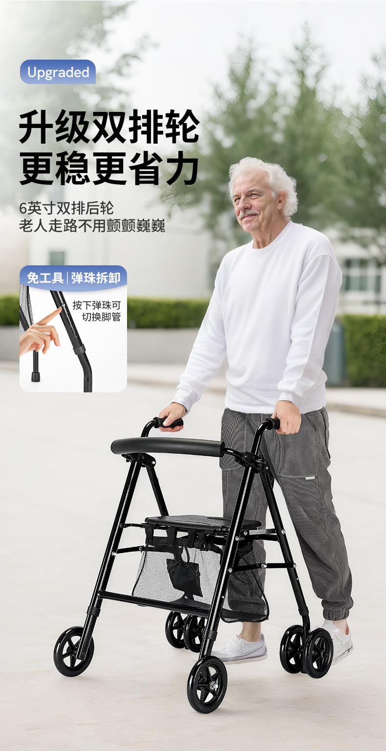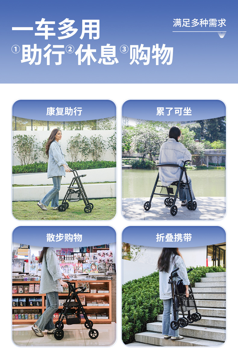 asistente de marcha para ancianos carro de mano capaz de sentarse y caminar ligero plegable multifuncional de cuatro ruedas asistente de marcha