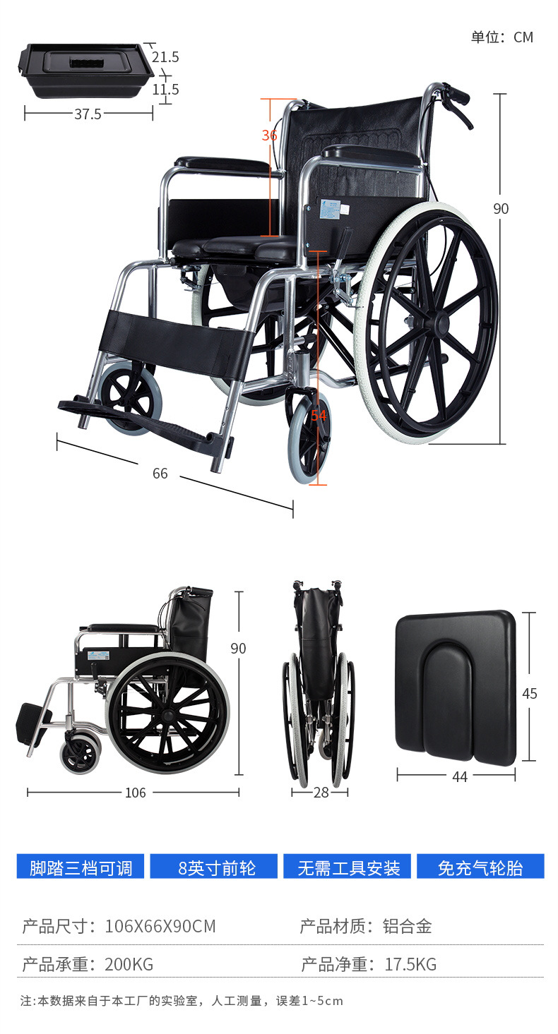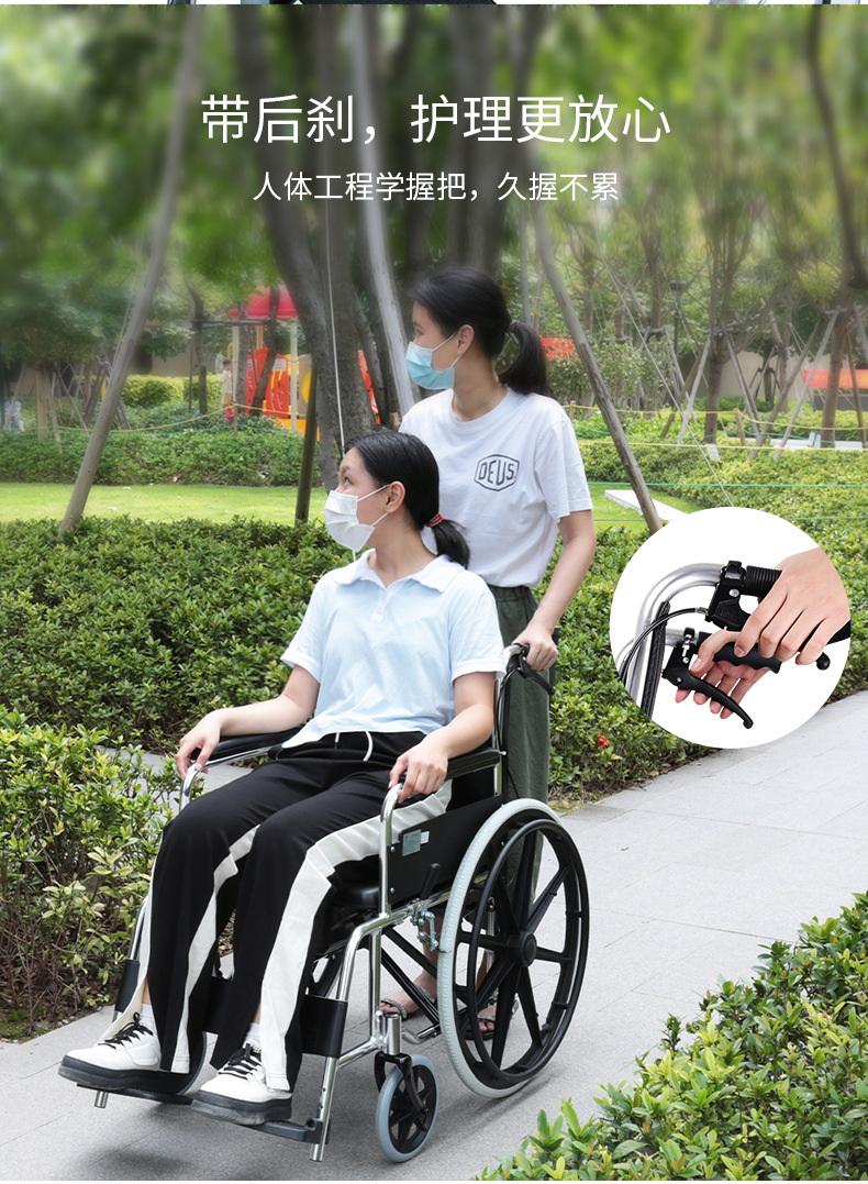 Aleación de aluminio de Zhengzhou para personas mayores con discapacidad carro de mano para silla de ruedas ligera de cuatro ruedas scooter plegable con freno de parada