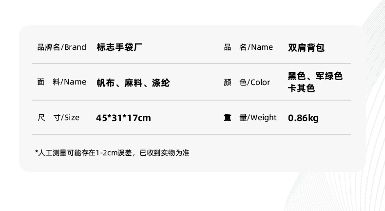 | Colores | Lona negra,Cacca de lona,Lona militar verde,Negro cáñamo,Película negra |