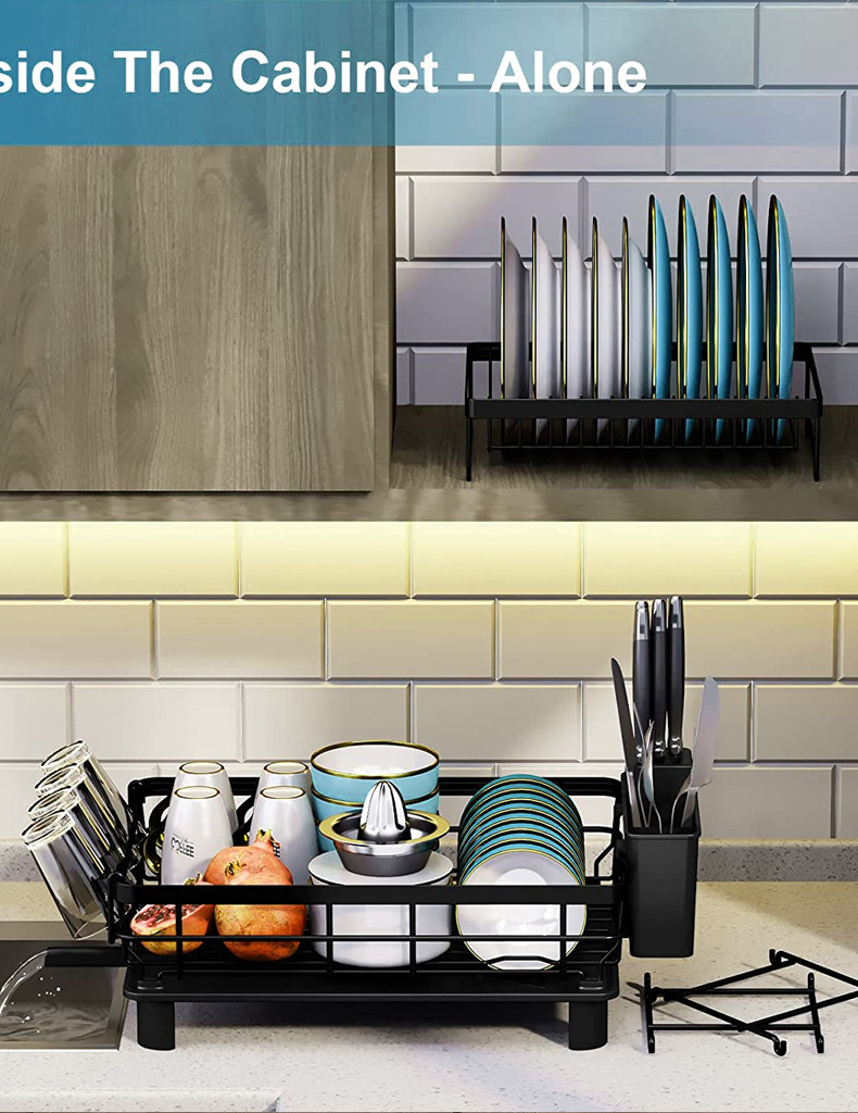 Escurridor de platos de cocina, estante de drenaje, estante de almacenamiento de platos para gabinete, estante para tazones pequeño y estético, estante, estante para platos.