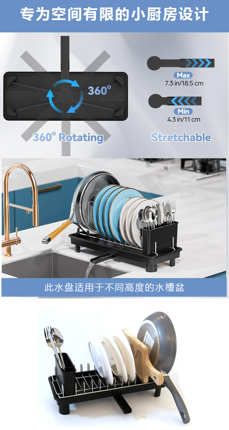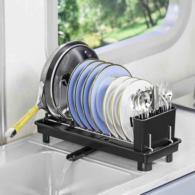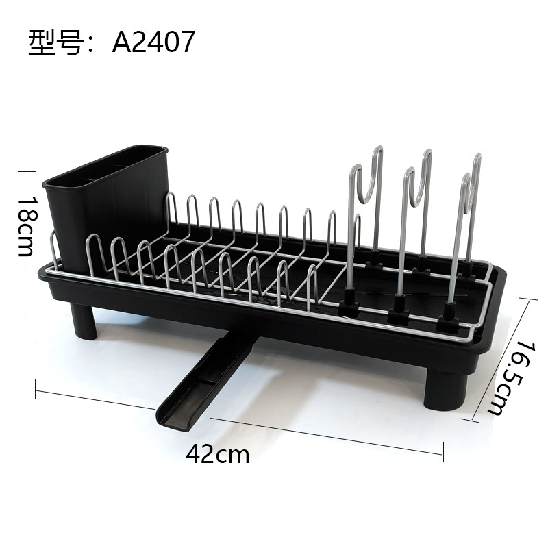 Estante de platos de cocina Estante de almacenamiento de platos multifuncional Estante de platos de drenaje negro de una sola capa Estante de platos de espacio pequeño Estante de acabado de platos