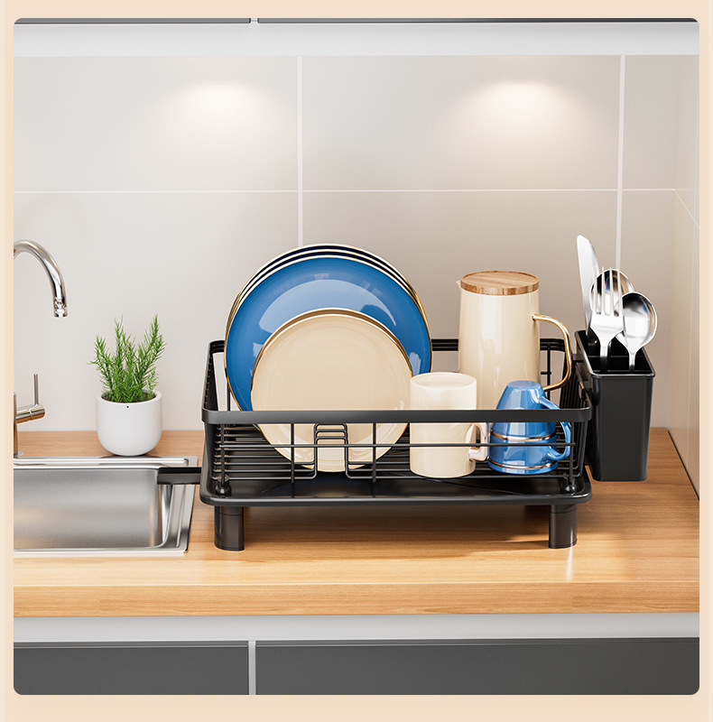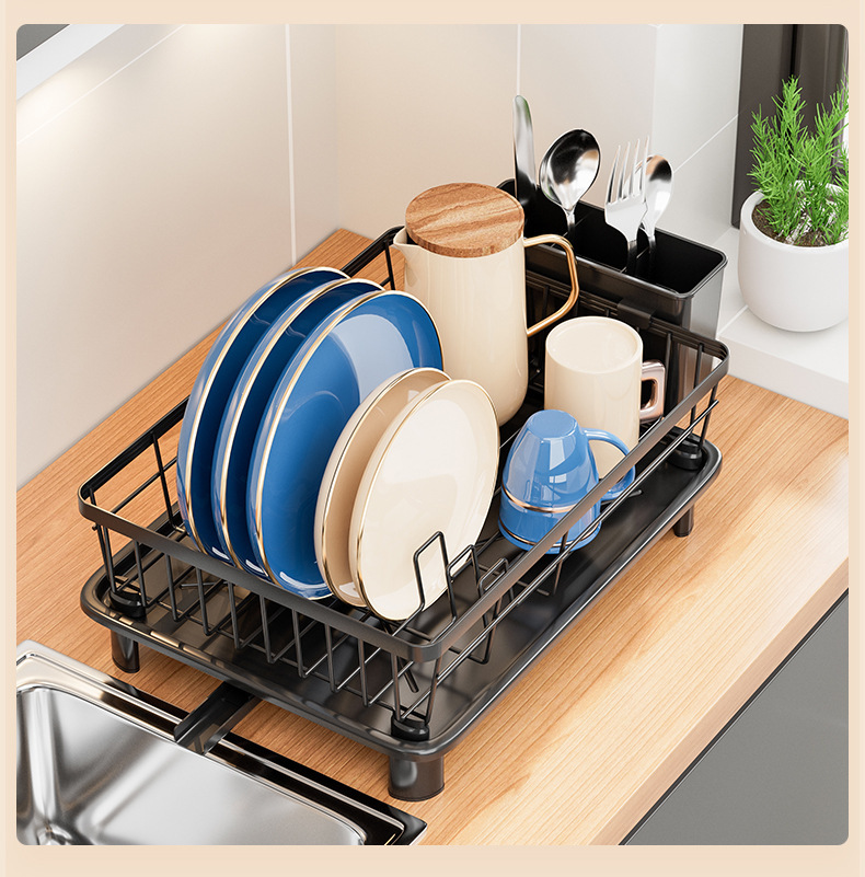 Estante de drenaje de fregadero doméstico estrecho de cocina multifuncional estante de platos estilo japonés con bandeja de drenaje