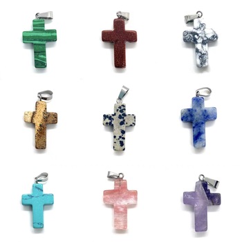 Piedra natural Goldstone 6x18x29mm Cruz Rosa cristal turquesa colgante DIY joyería collar accesorios lote