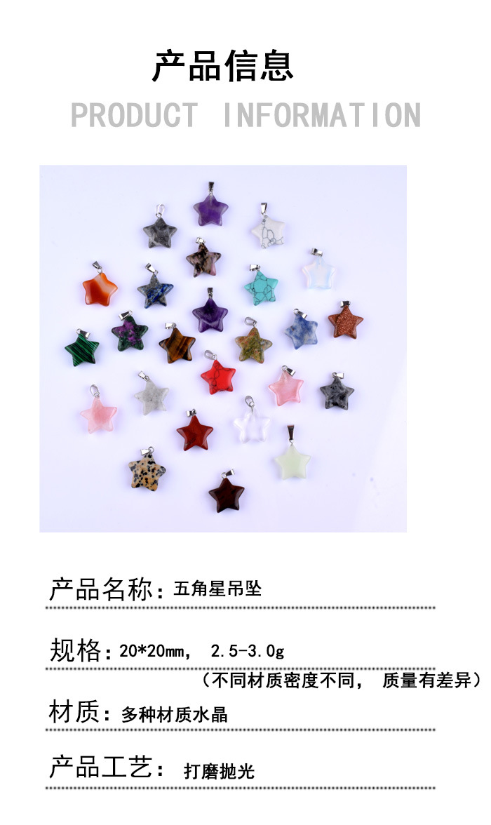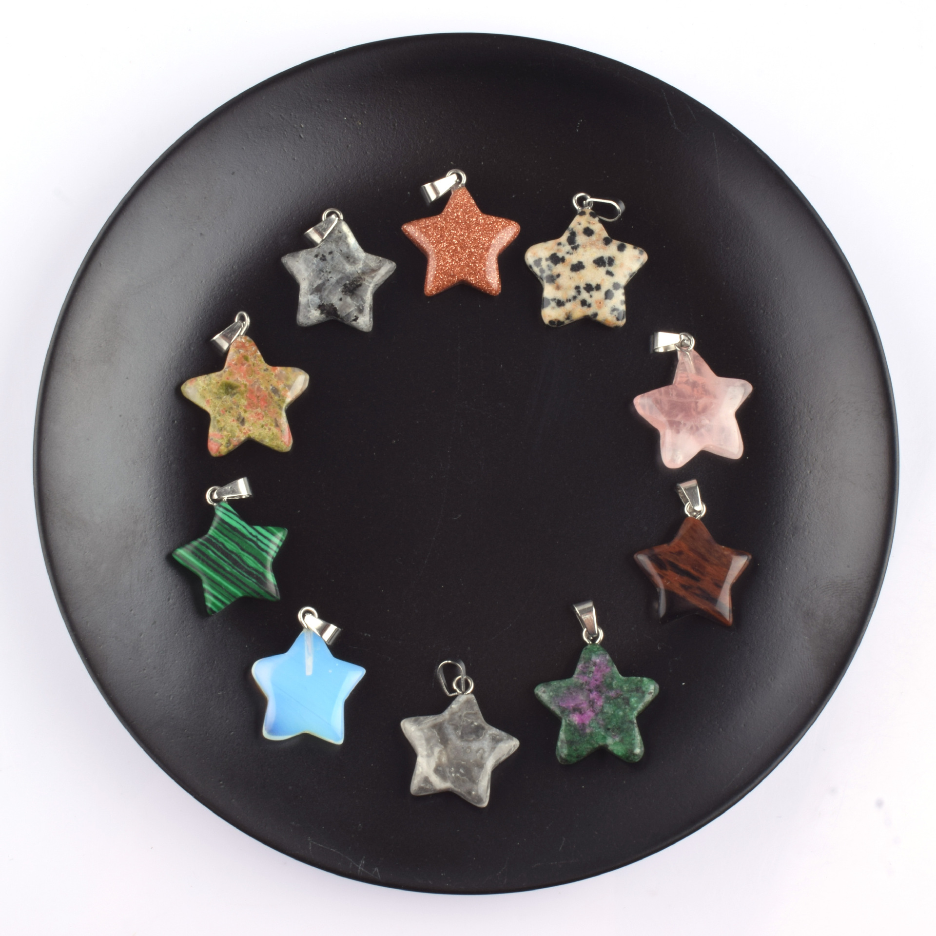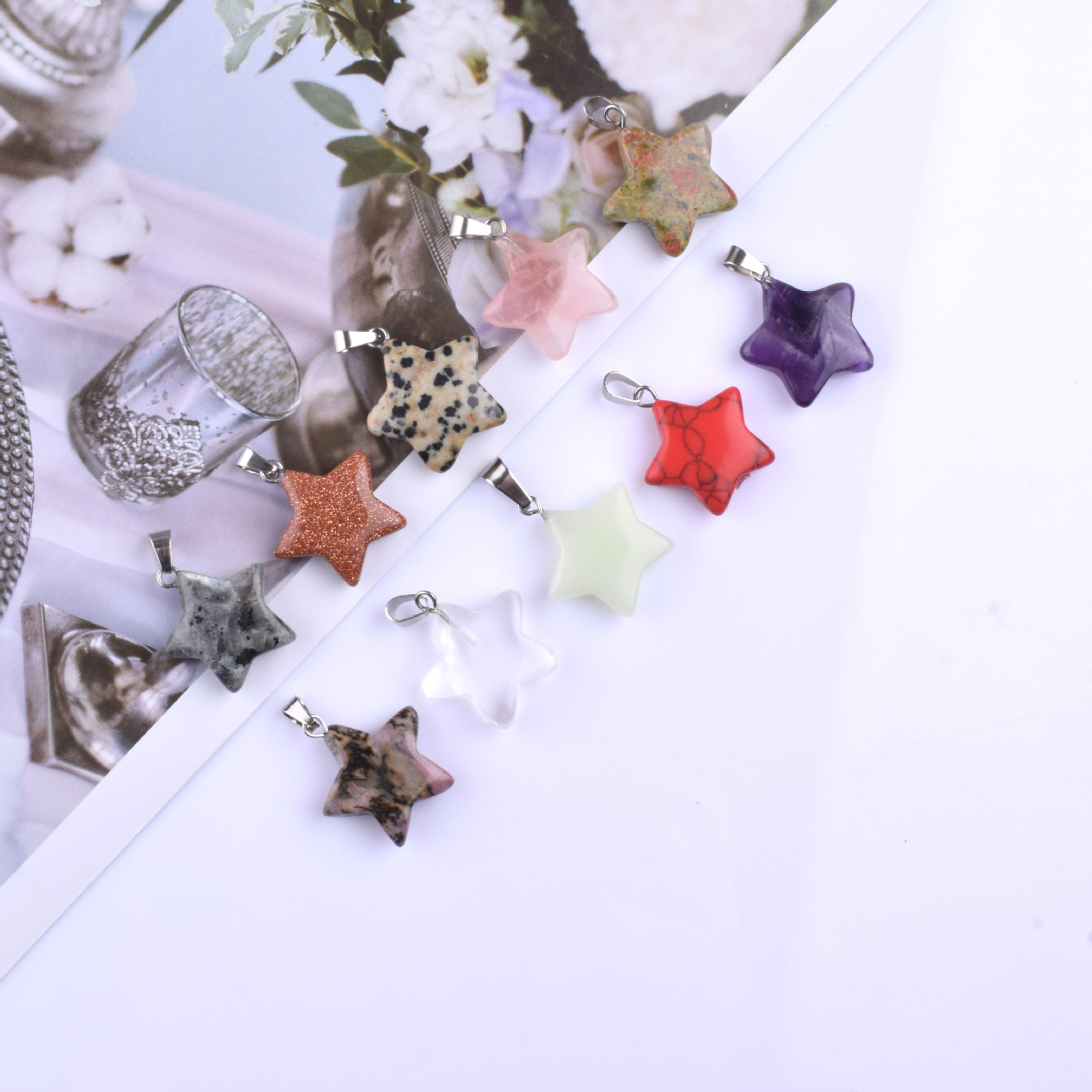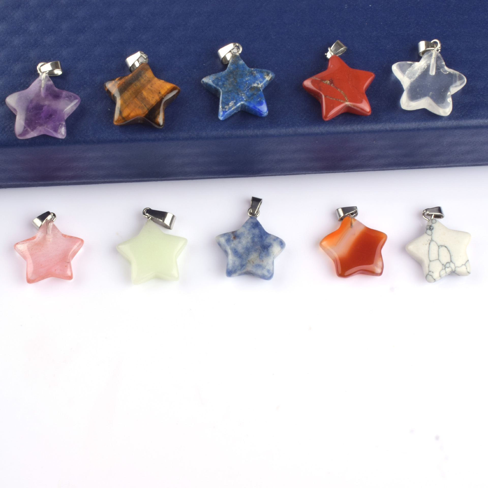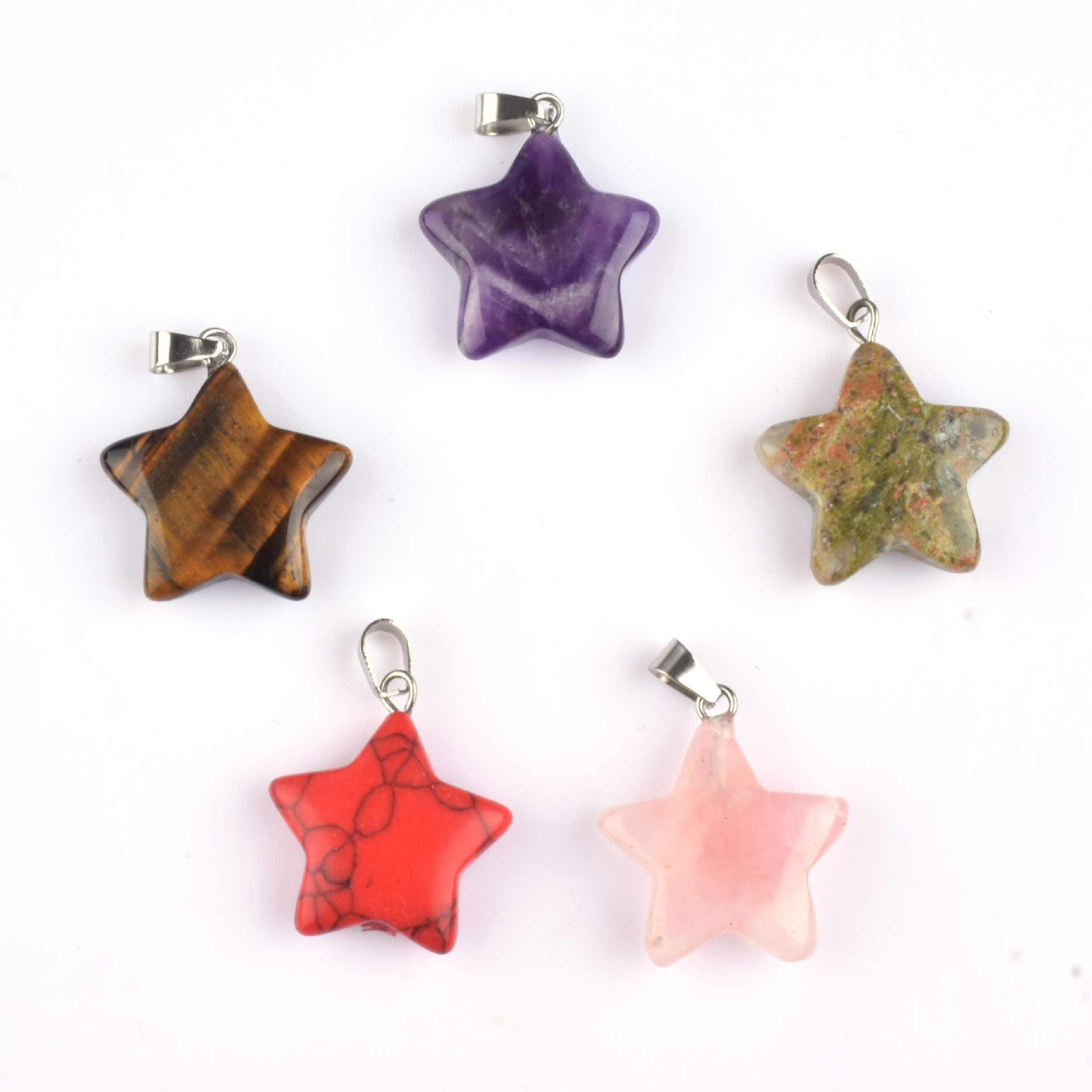 Colgante de piedra de estrella de color natural colgante de amatista de estrella de color pentagramas colgante de estrella de cielo colgante DIY joyas artículos
