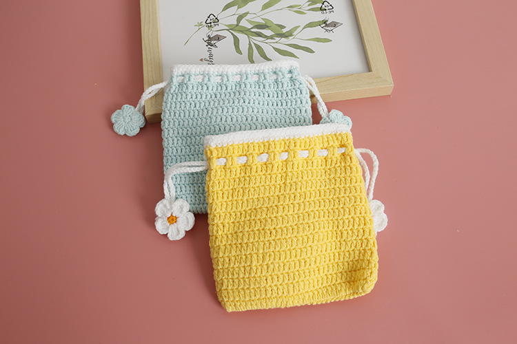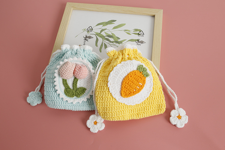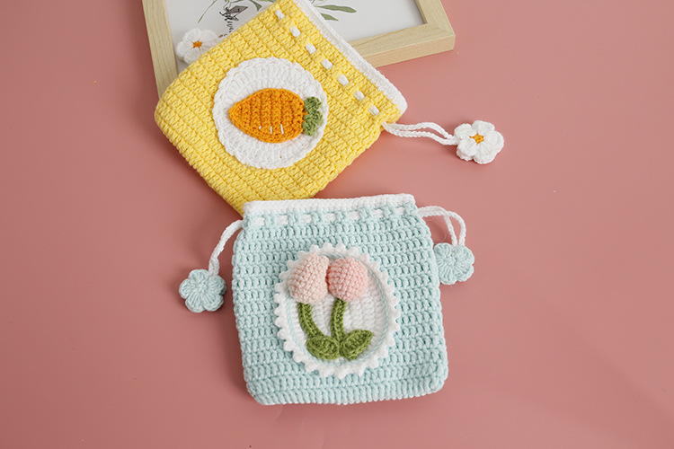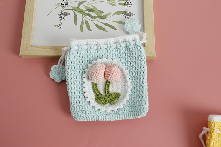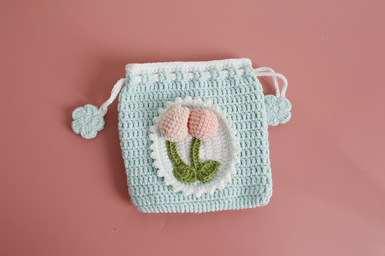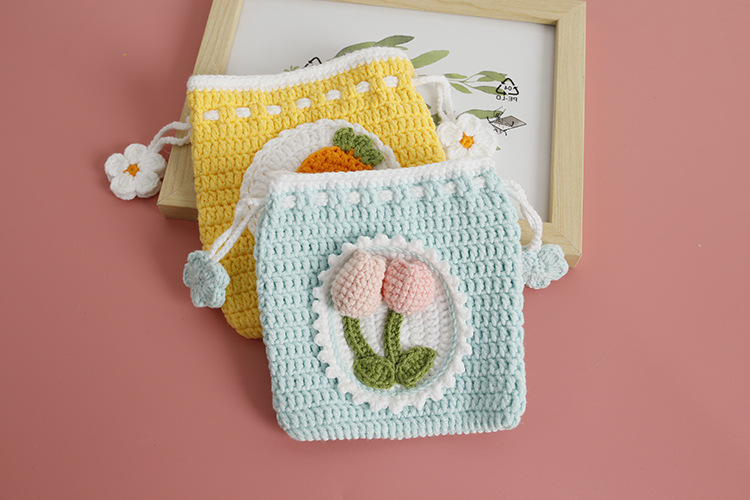 Bolsillo de gancho de lana dulce para chicas pequeñas bolsas de gancho de mano frescas bolsas de cambio de cuerda de pulpa de tulipas productos terminados
