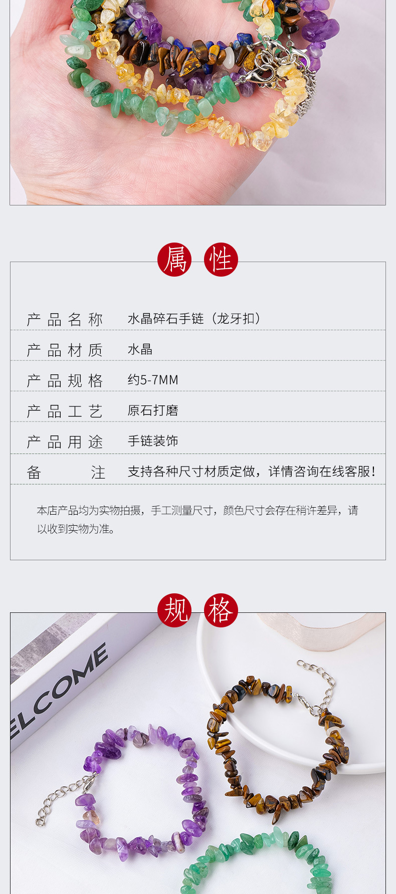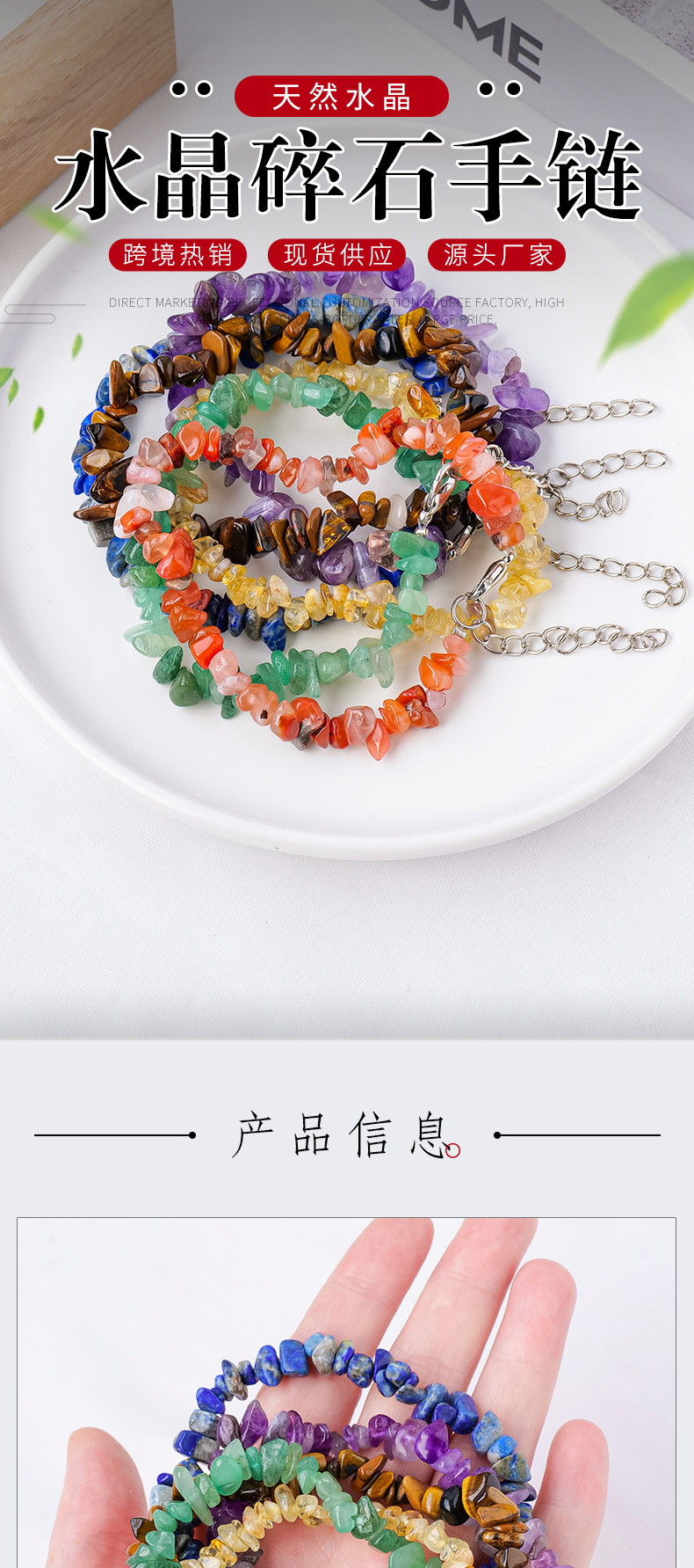 Transfronteriza Amazon natural cristal grava pulsera irregular ágata grava pulsera cristal piedra joyería al por mayor