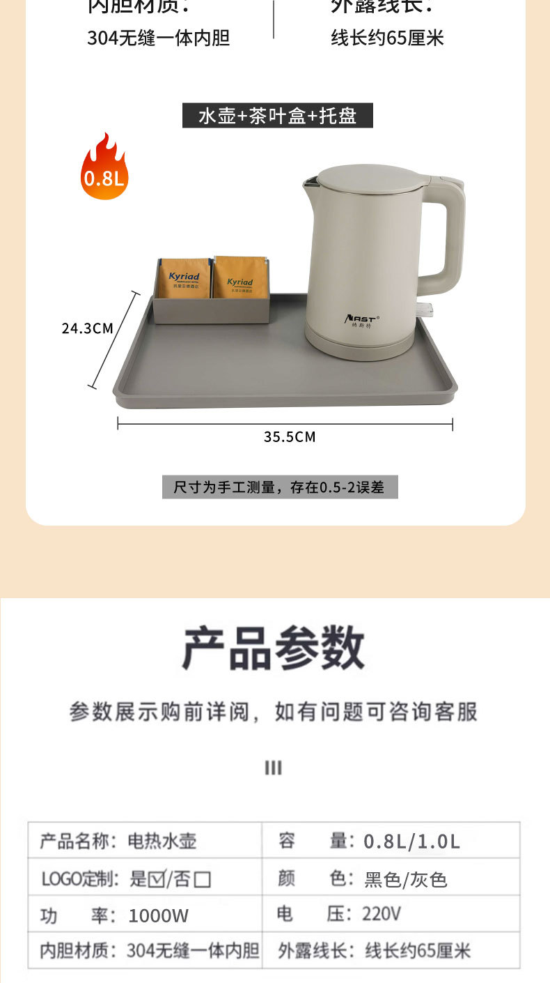 Hotel todo gris hervidor eléctrico hervidor de agua pequeña capacidad hervidor eléctrico aislamiento térmico fábrica de suministros de hotel