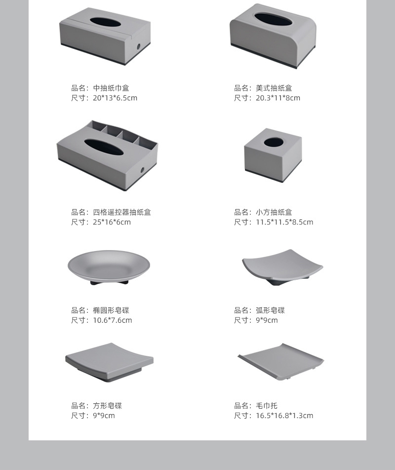 | Especificación | Caja grande para cepillos de dientes horizontal.,Caja de cepillos de dientes vertical grande,Caja de cepillos de dientes vertical pequeña,Caja de cepillo de dientes pequeña estilo horizontal.,Caja dental mediana,Bandeja de consumibles estilo escalera,palet plano,estante para agua potable,caja de té,Caja de té de tres compartimentos,Soporte para mando a distancia,Caja de papel cuadrada,caja de papel americana,Caja de pañuelos mediana,Caja de bombeo de papel multifuncional de dos comparticiones,Caja de dibujo multifuncional de cuatro compartidos,bandeja de toallas,cuaderno de notas,jabonera cuadrada,jabonera curva,Taza de lavado individual,Hervidor de agua 0.8L,1 taza,secador de pelo de alta velocidad |