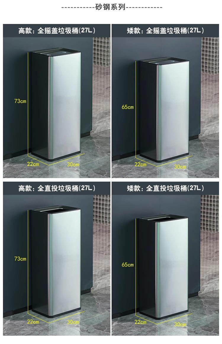 Basura de acero inoxidable toallitas de inodoro cubierta de papel de toallitas de gran capacidad oficina pasillo de caída directa cubo de almacenamiento