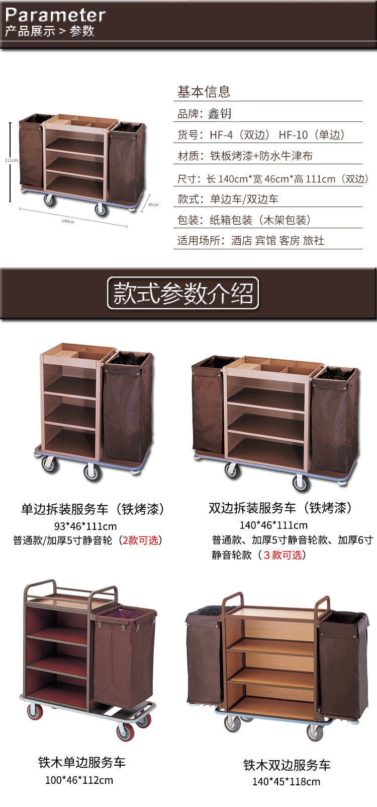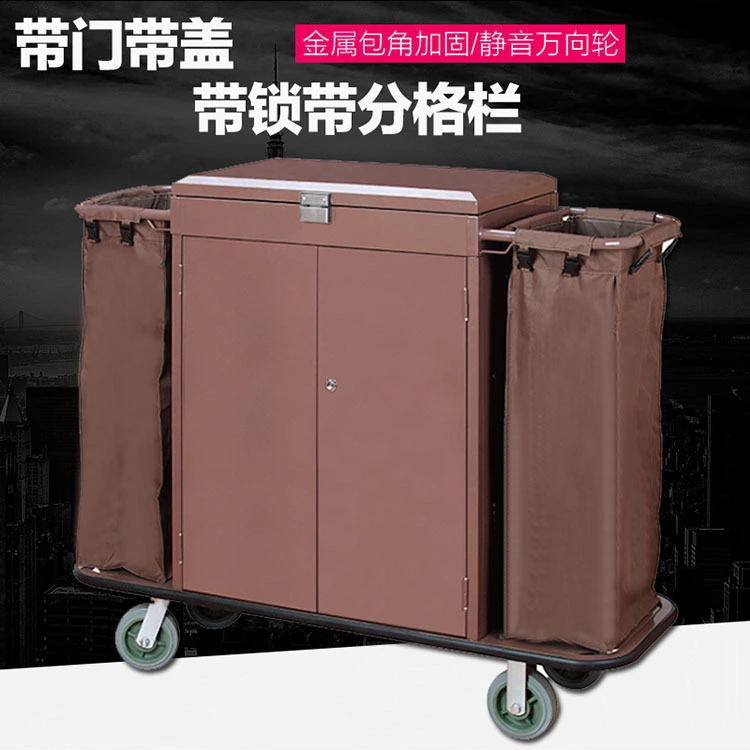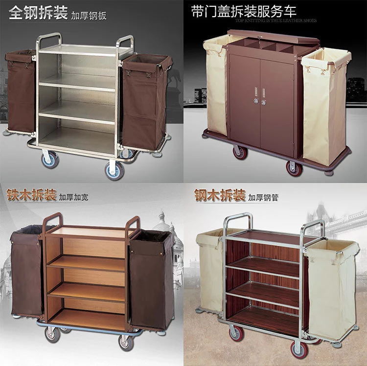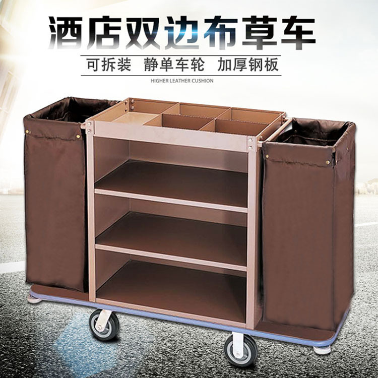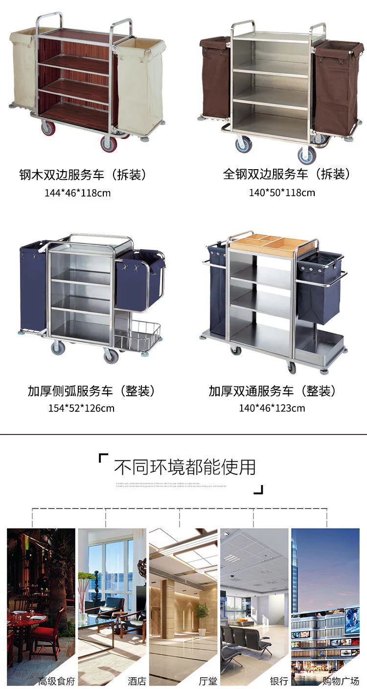 Coche de ropa de hotel Coche de limpieza de hotel Coche de trabajo Coche de recogida de habitación de invitados Coche de habitación bilateral Carro de acero inoxidable