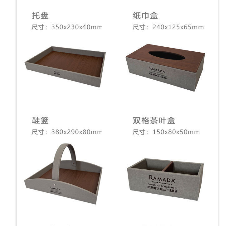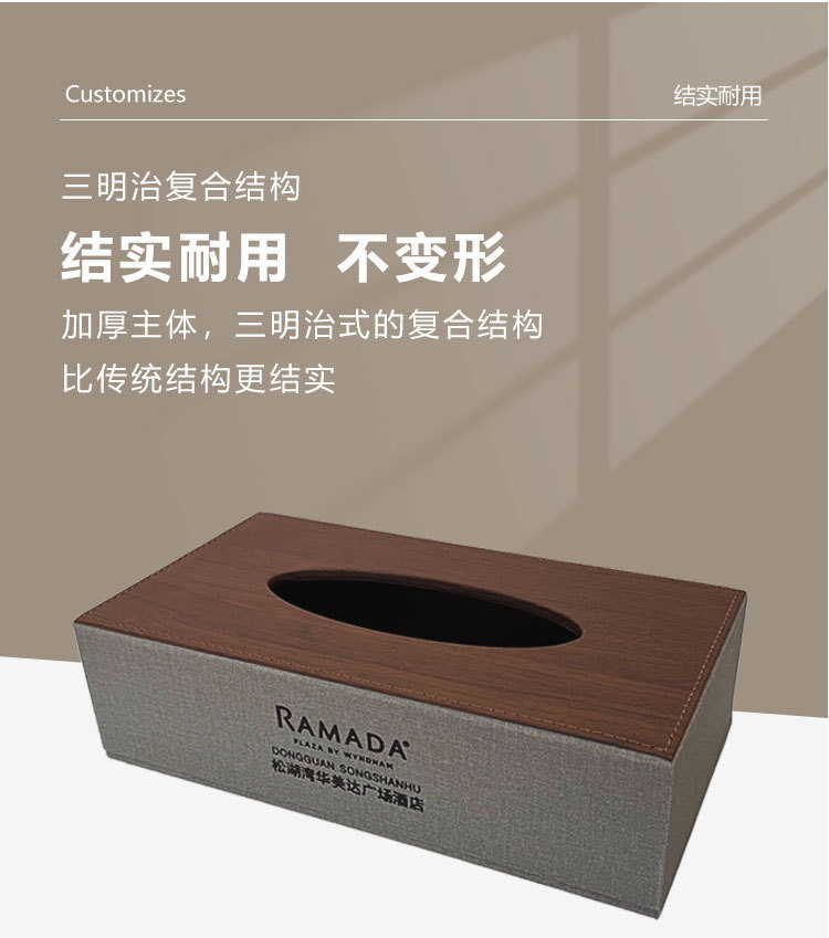 Caja de almacenamiento de hotel de cinco estrellas cuero conjunto de basura caja de toallas de cuero color de madera caja de control remoto