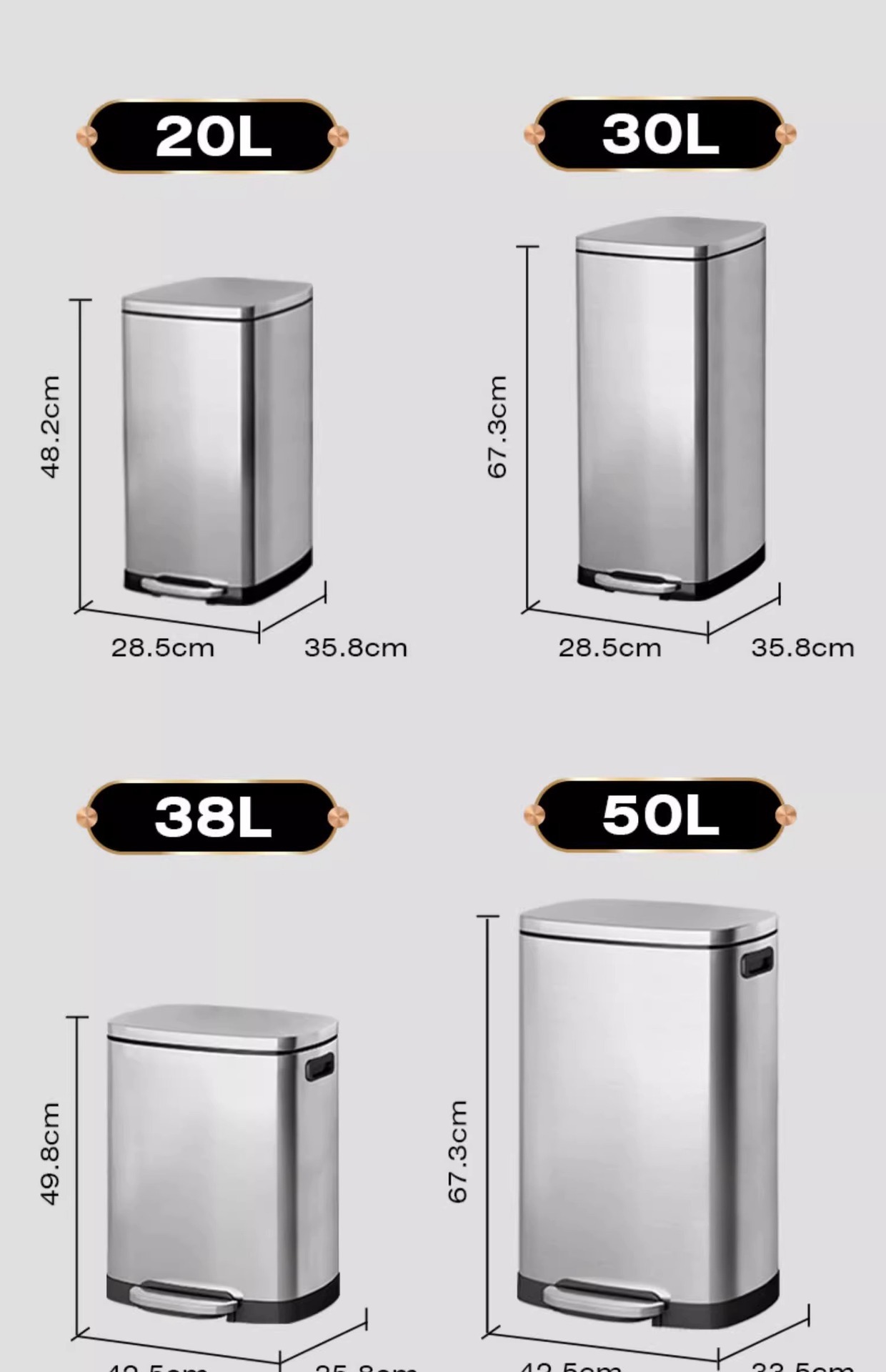 Basurera de acero inoxidable cocina doméstica pie con cubierta hotel oficina comercial super grande capacidad 50 litros
