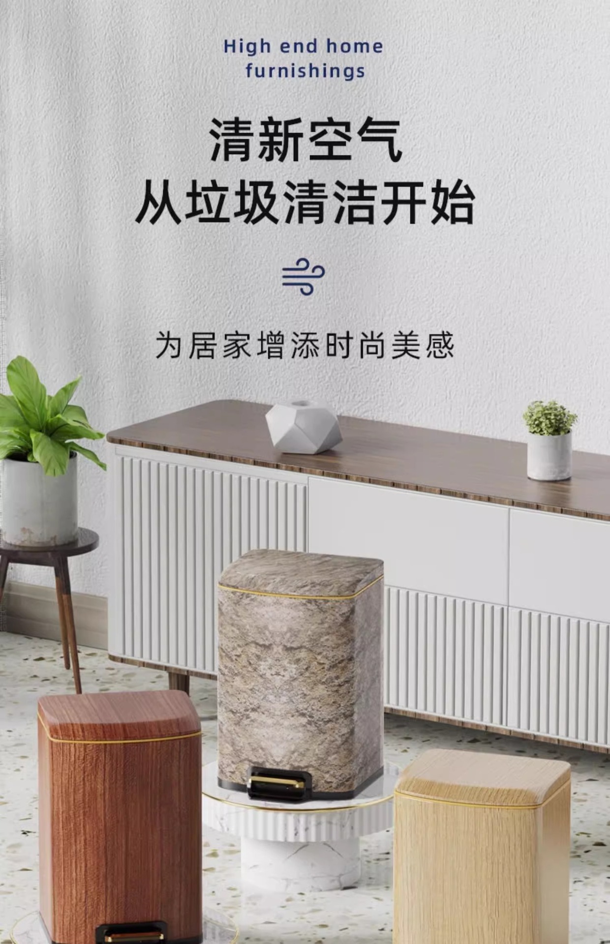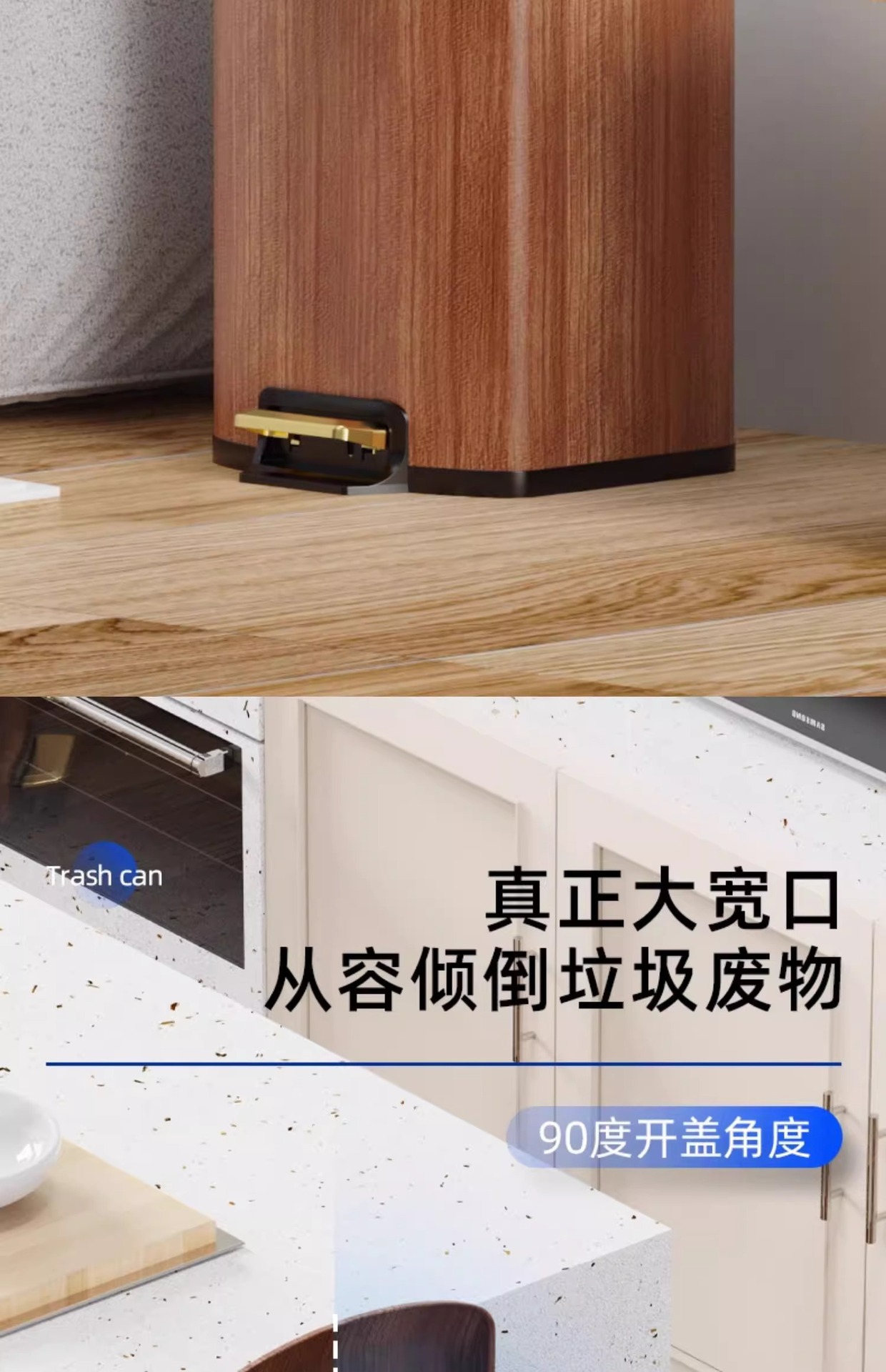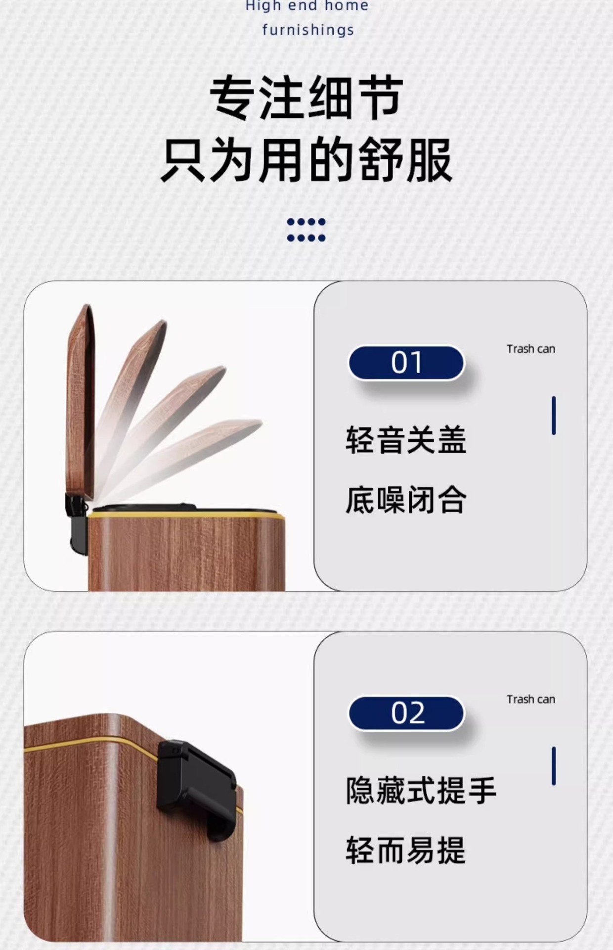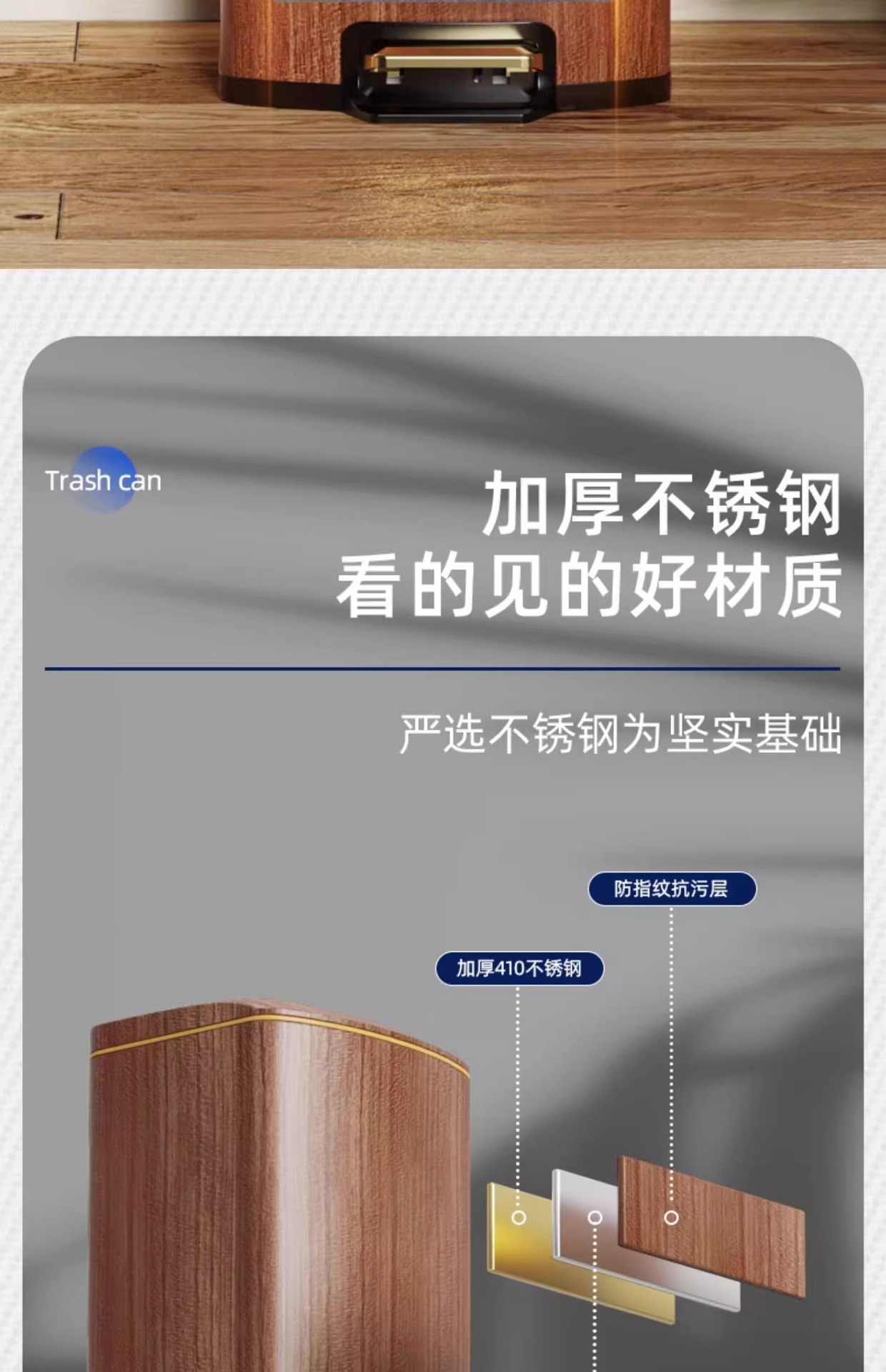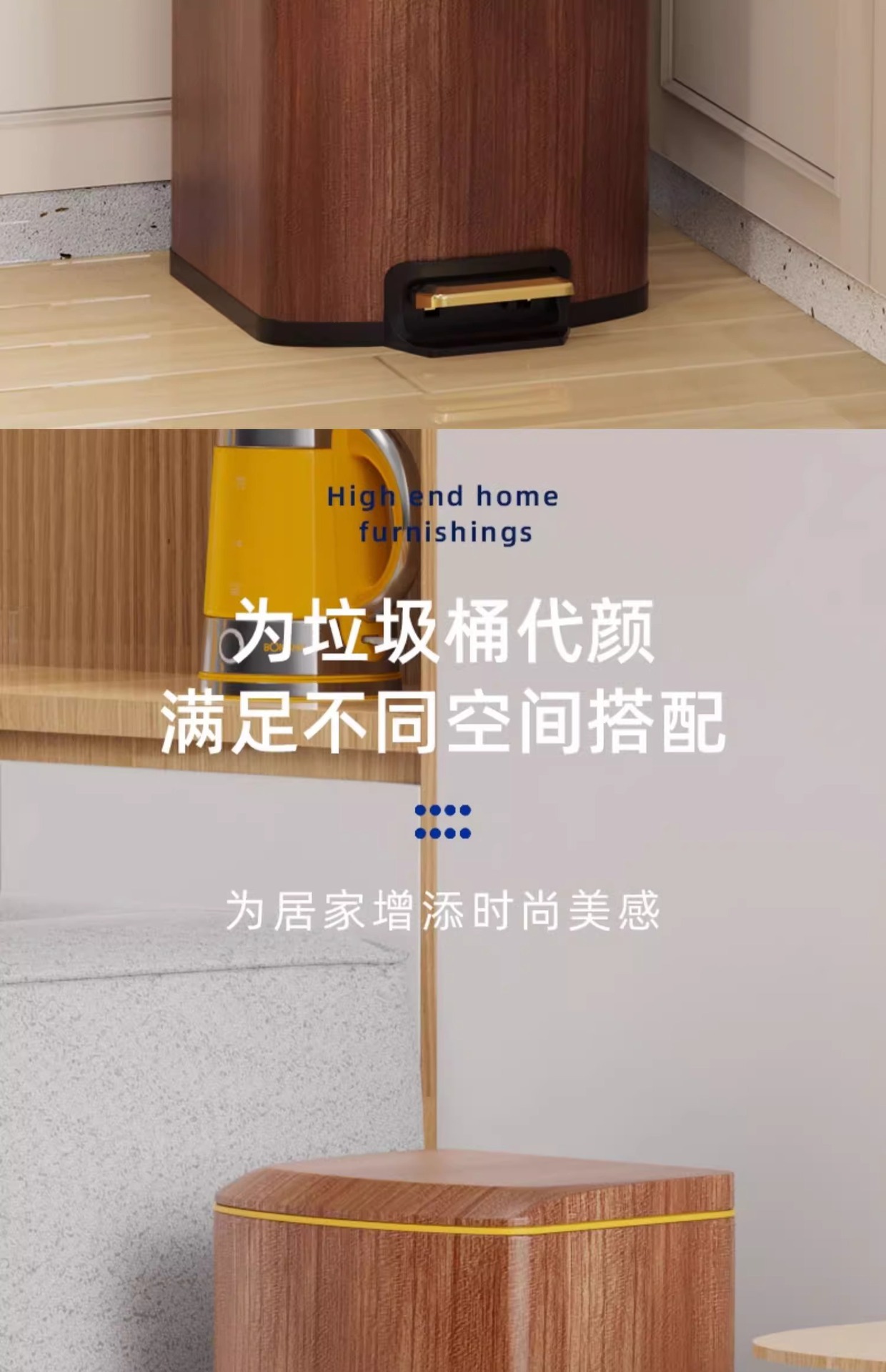 Nuevo estilo chino imitación de madera de acero inoxidable cubo de basura sala de estar cocina doméstica con cubierta suave pie de mesa de té de oficina