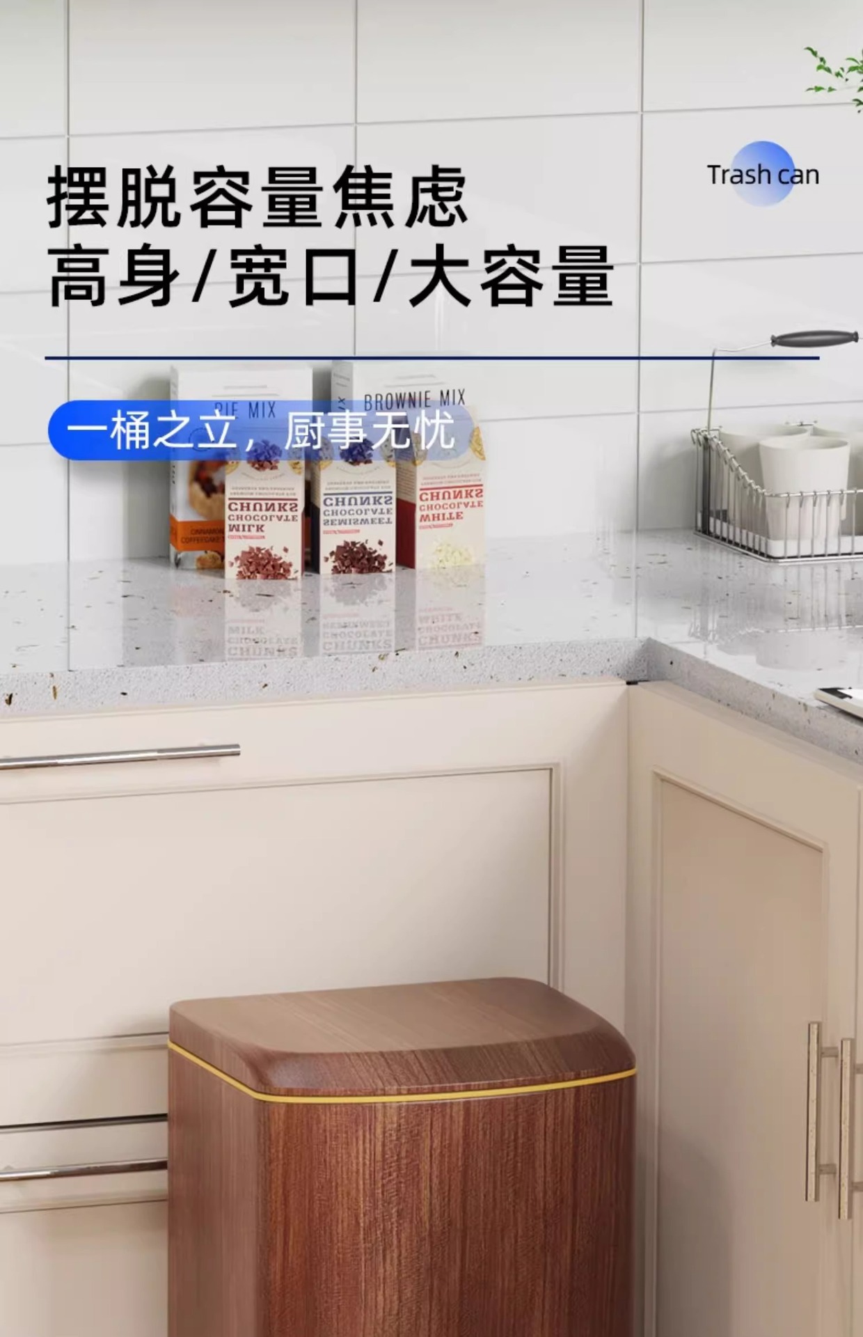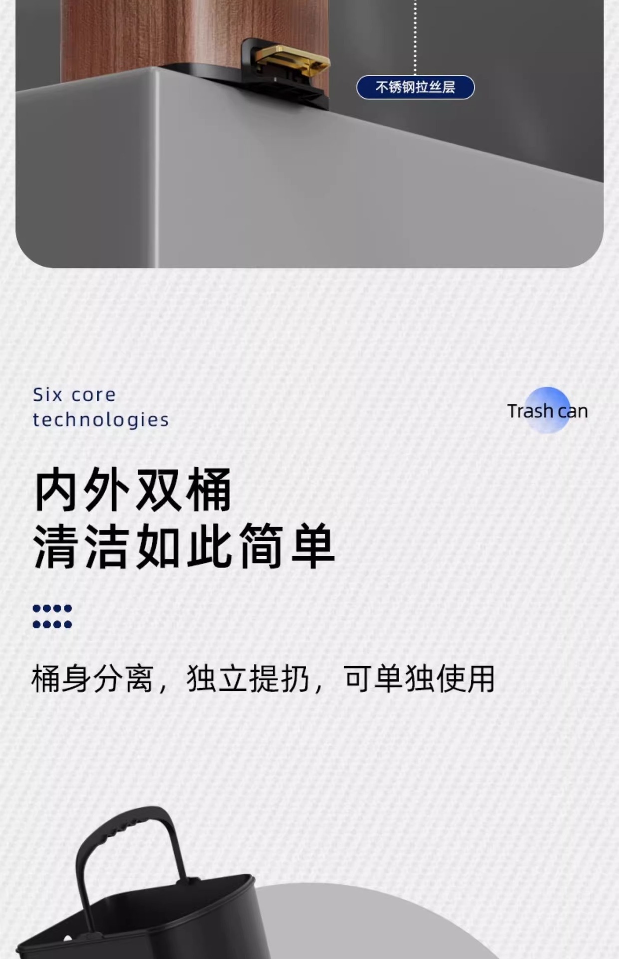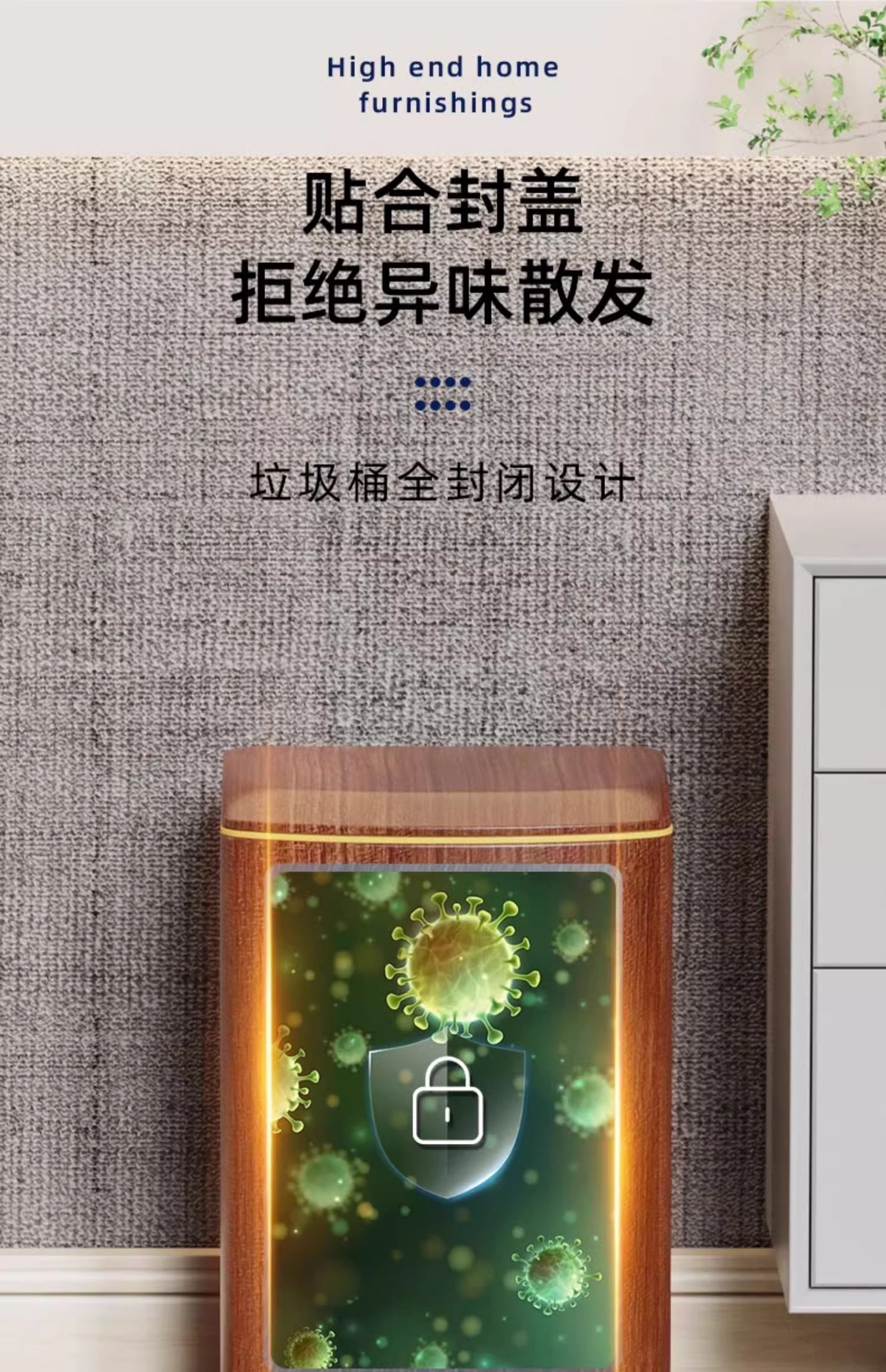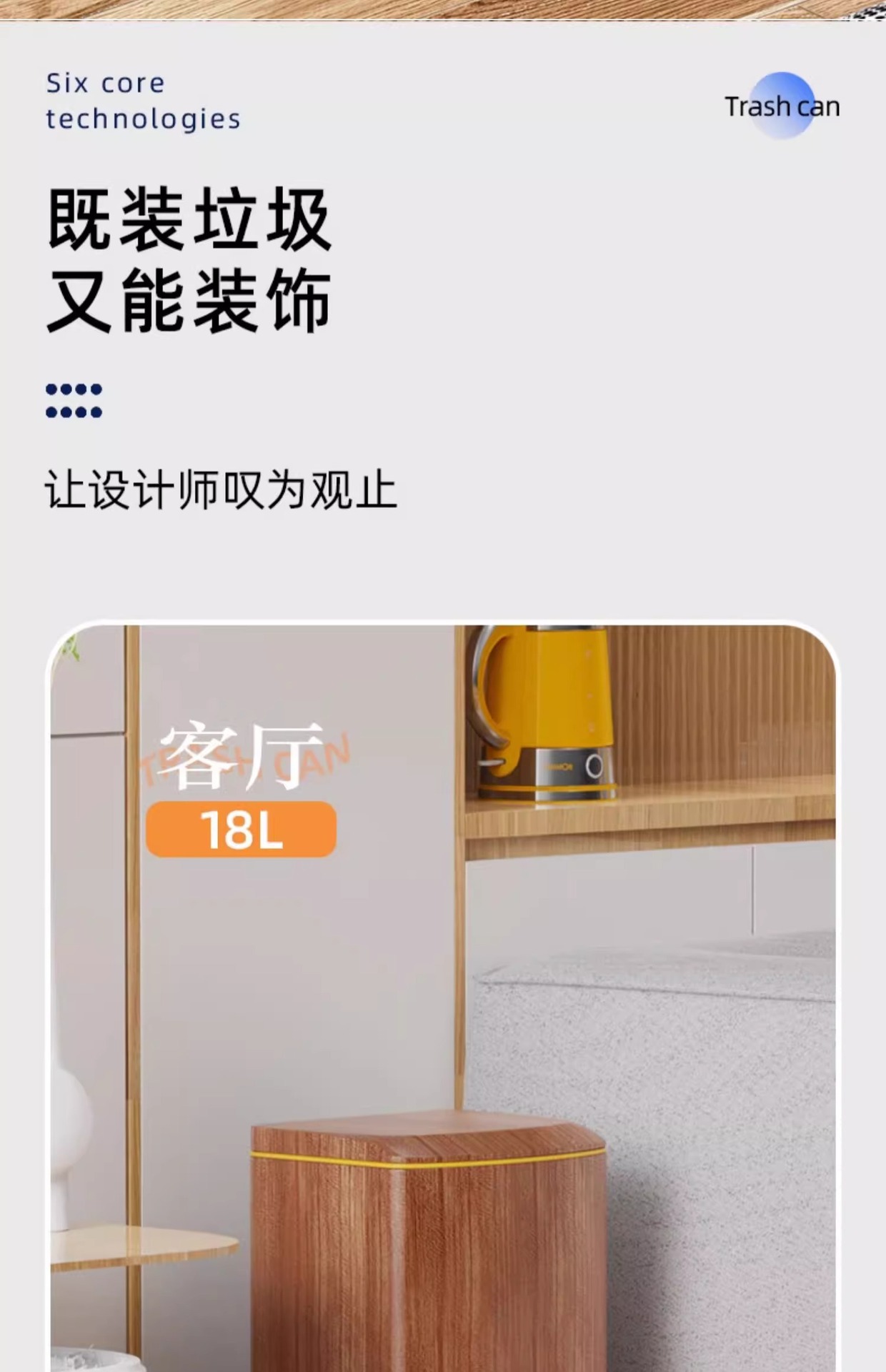 Nuevo estilo chino imitación de madera de acero inoxidable cubo de basura sala de estar cocina doméstica con cubierta suave pie de mesa de té de oficina