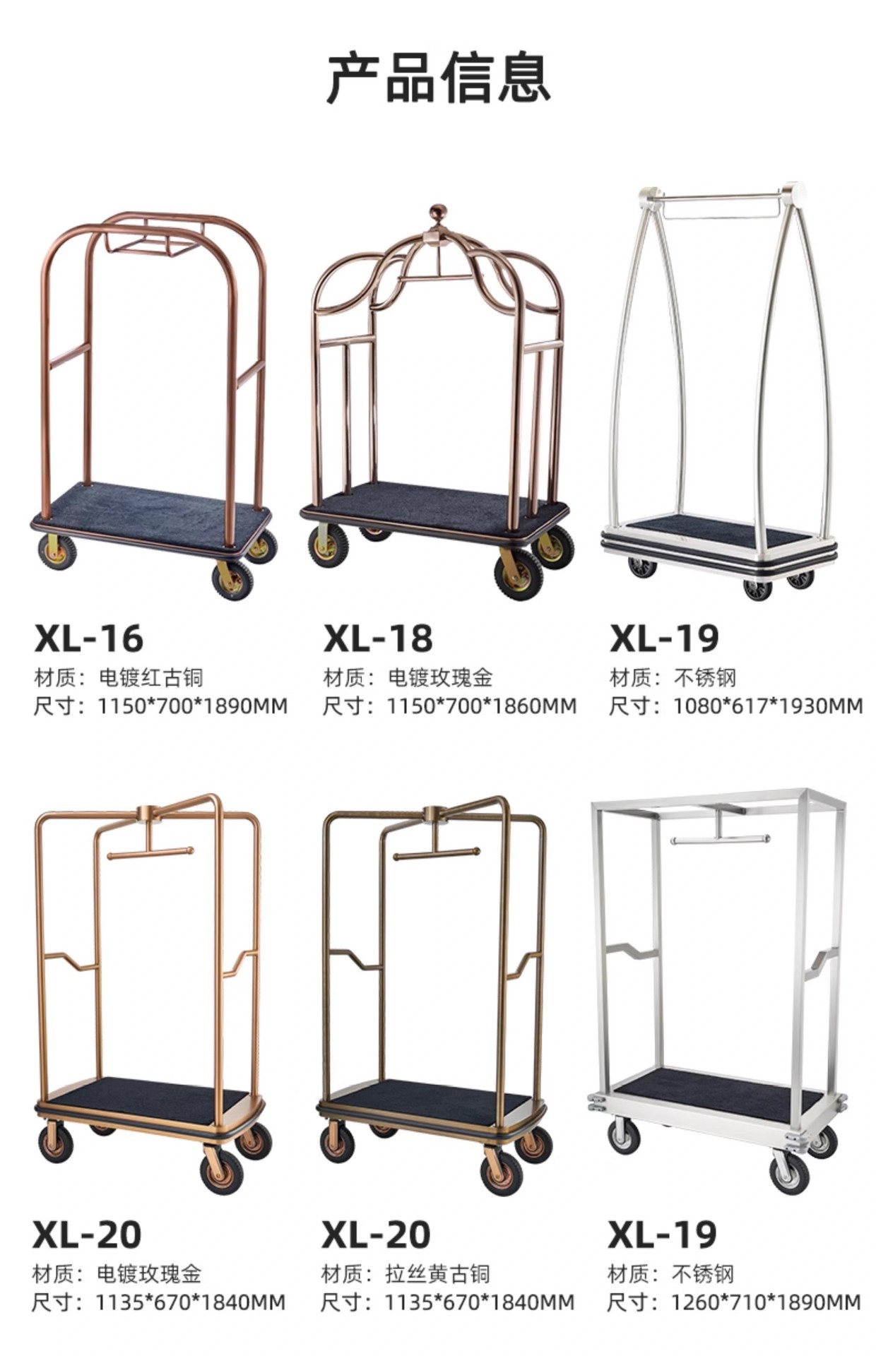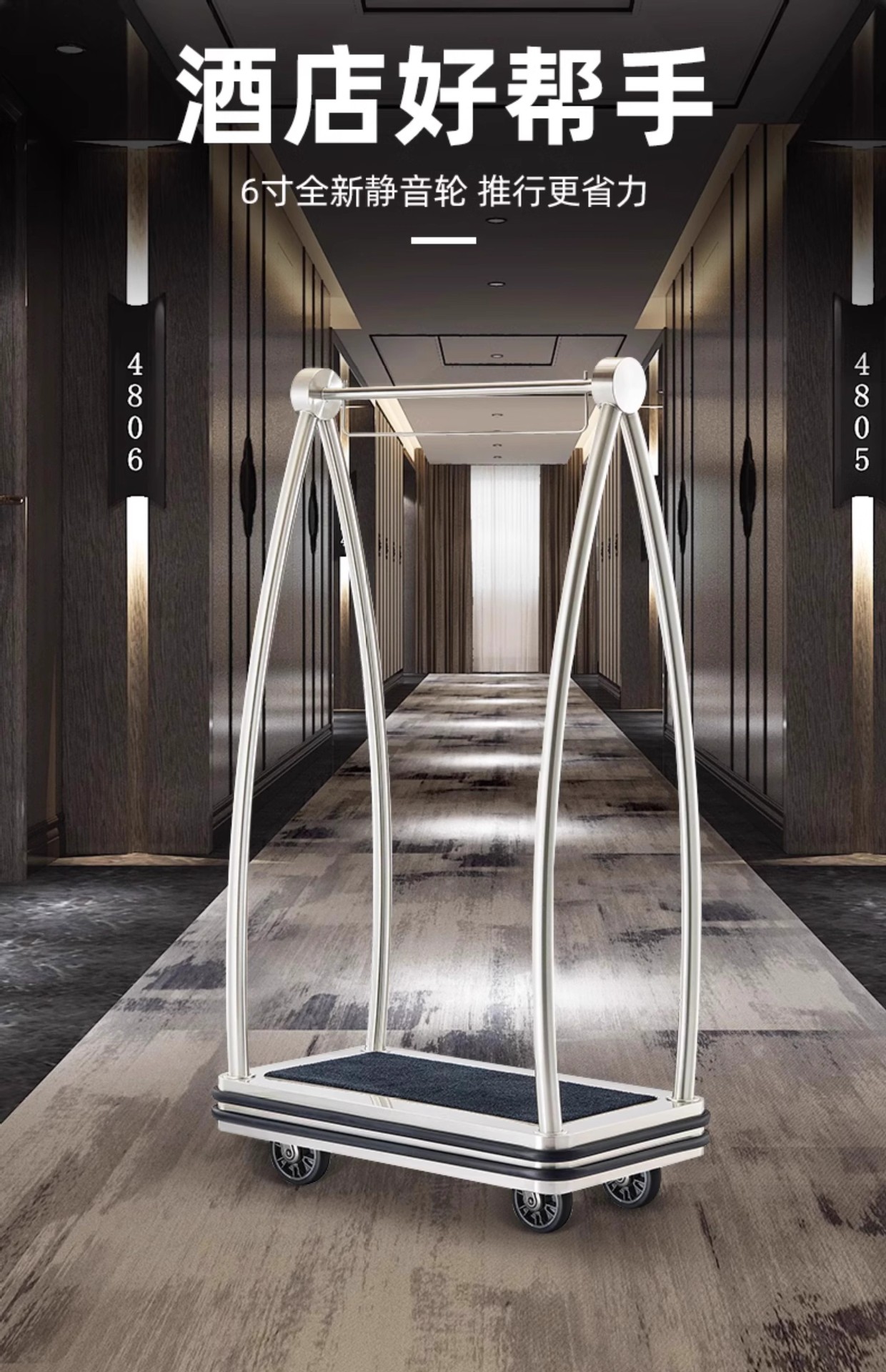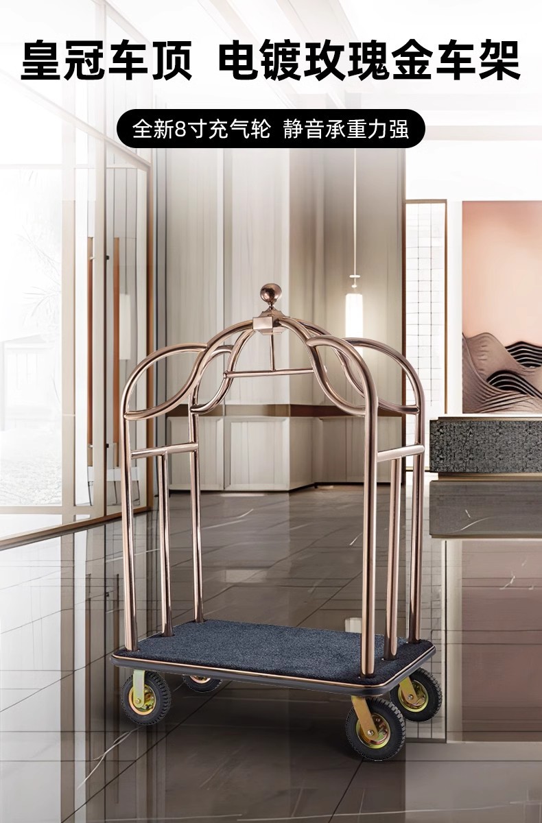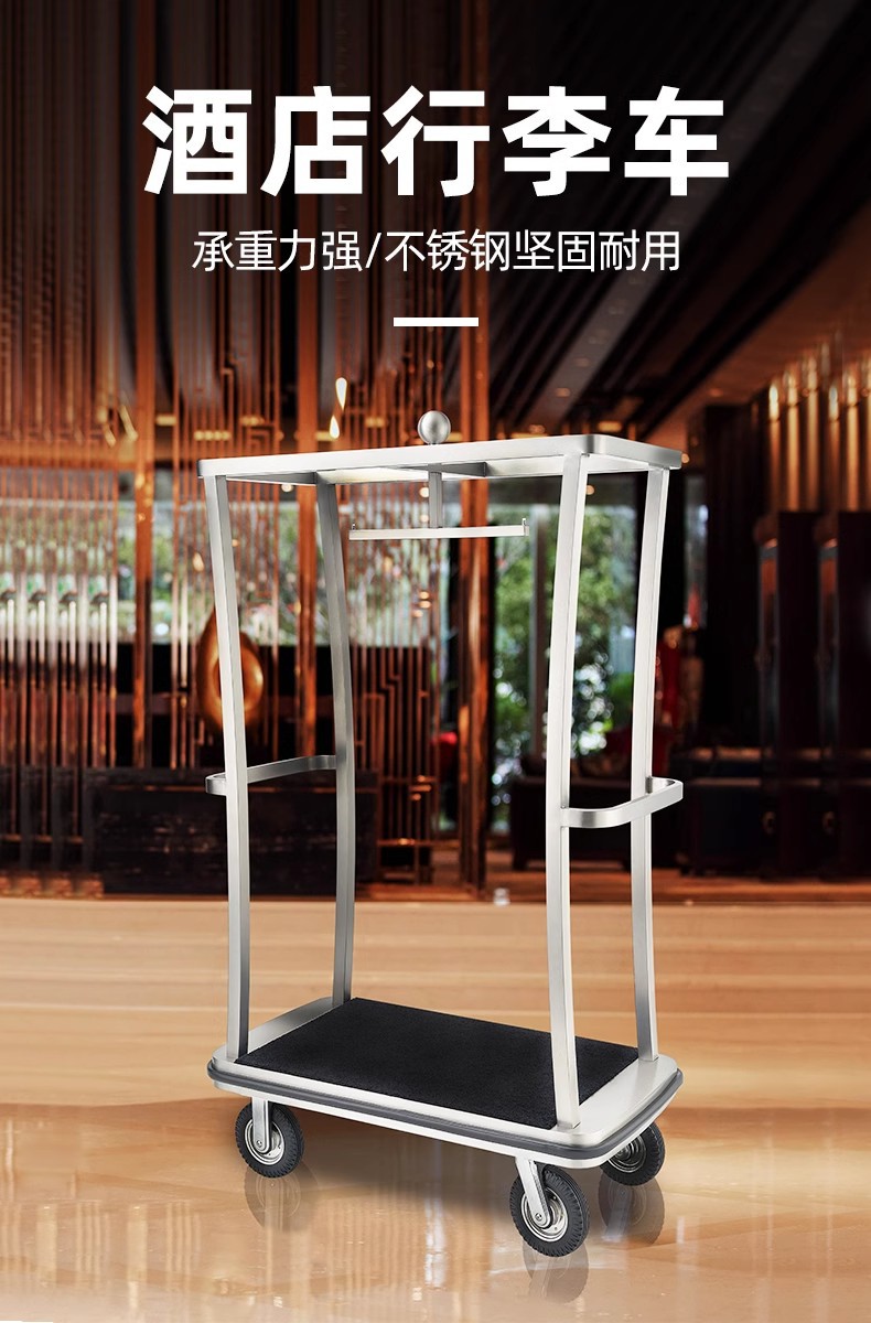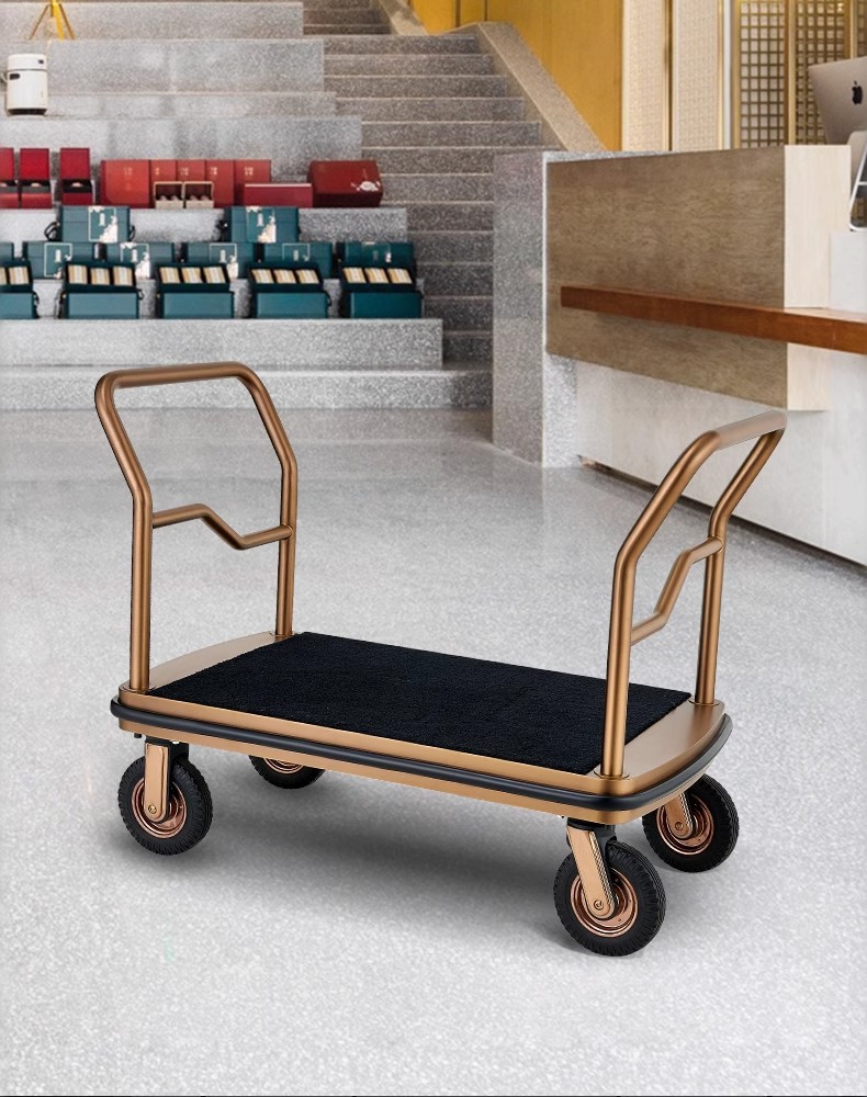 Hotel vestíbulo carro de equipaje mano empuja acero inoxidable rueda silenciosa conserje tienda de bodas de mano maleta remolque aeropuerto