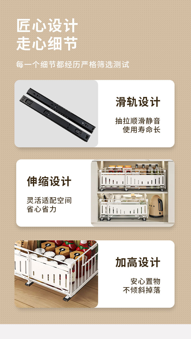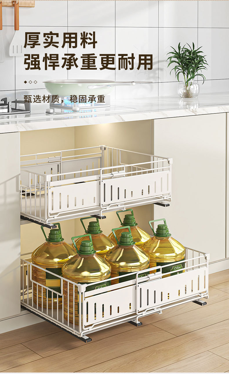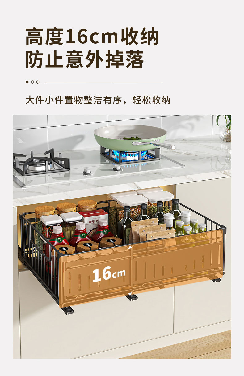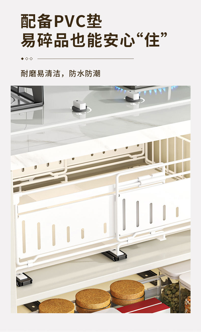 Estante de armario Estante de almacenamiento de canasta plegable retráctil retráctil sin perforación Estante de almacenamiento para platos debajo del fregadero de la cocina Estante de extracción