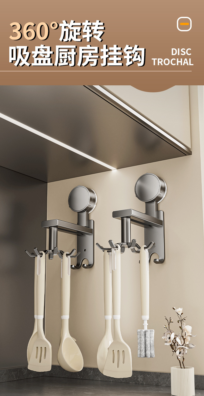 Cocina sin perforación espacio de aluminio multifuncional gancho giratorio de ventosa colgante de aluminio almacenamiento de pared estante de almacenamiento