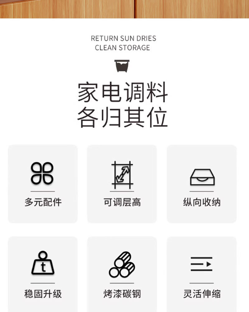 Estante de cocina, estante para horno de microondas, estante para olla arrocera, estante para laminado de vidrio, estante de almacenamiento para condimento