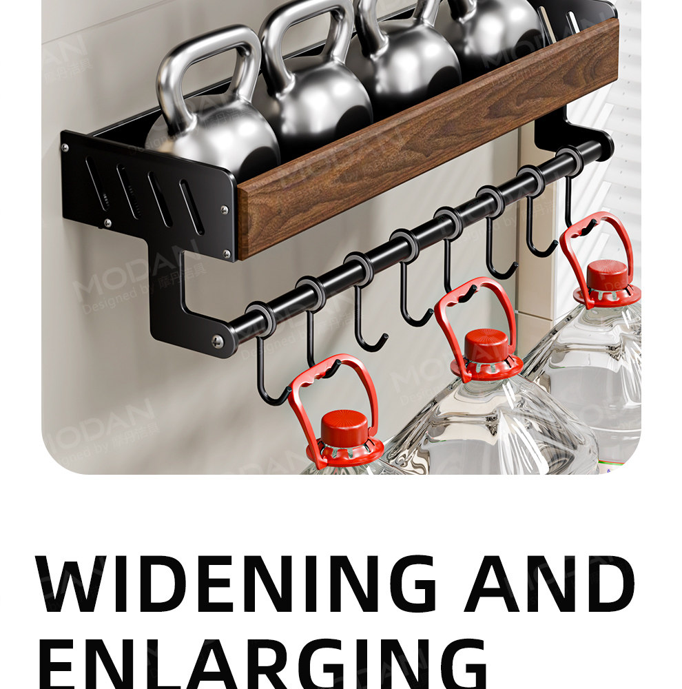 Estante de cocina de nogal Estante de condimento multicapa Estante de almacenamiento de latas Estante de condimento de pared multifuncional