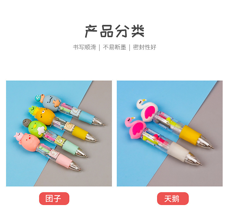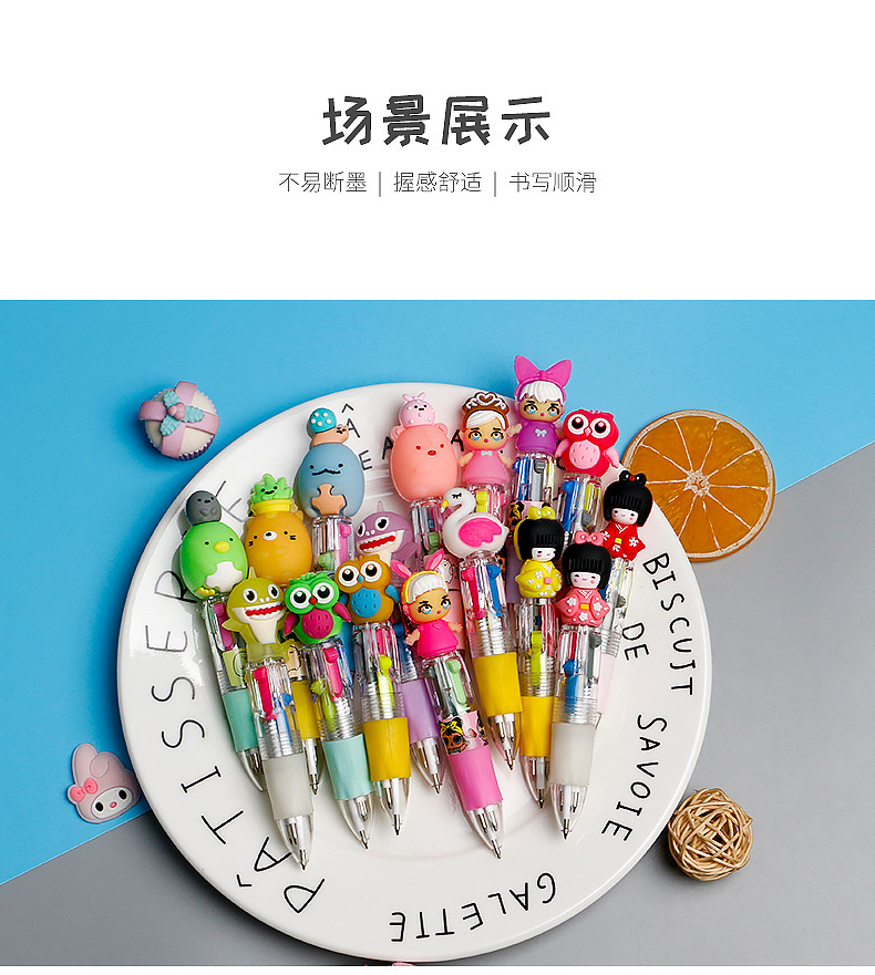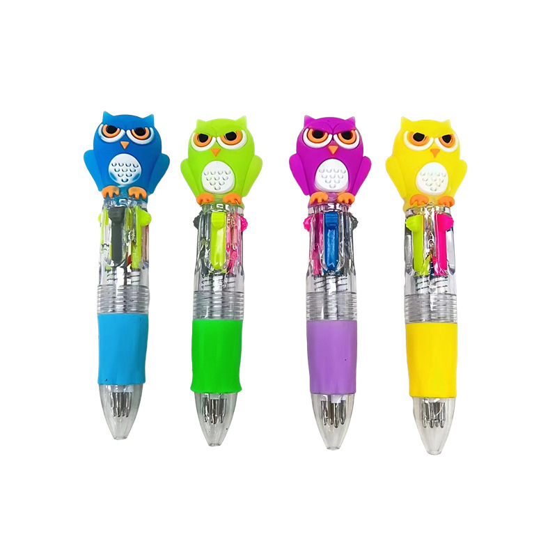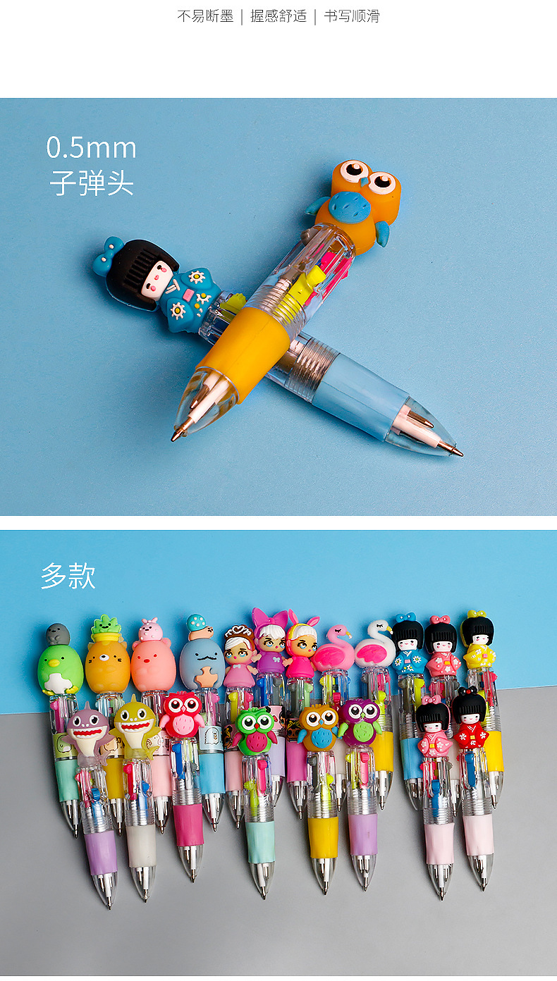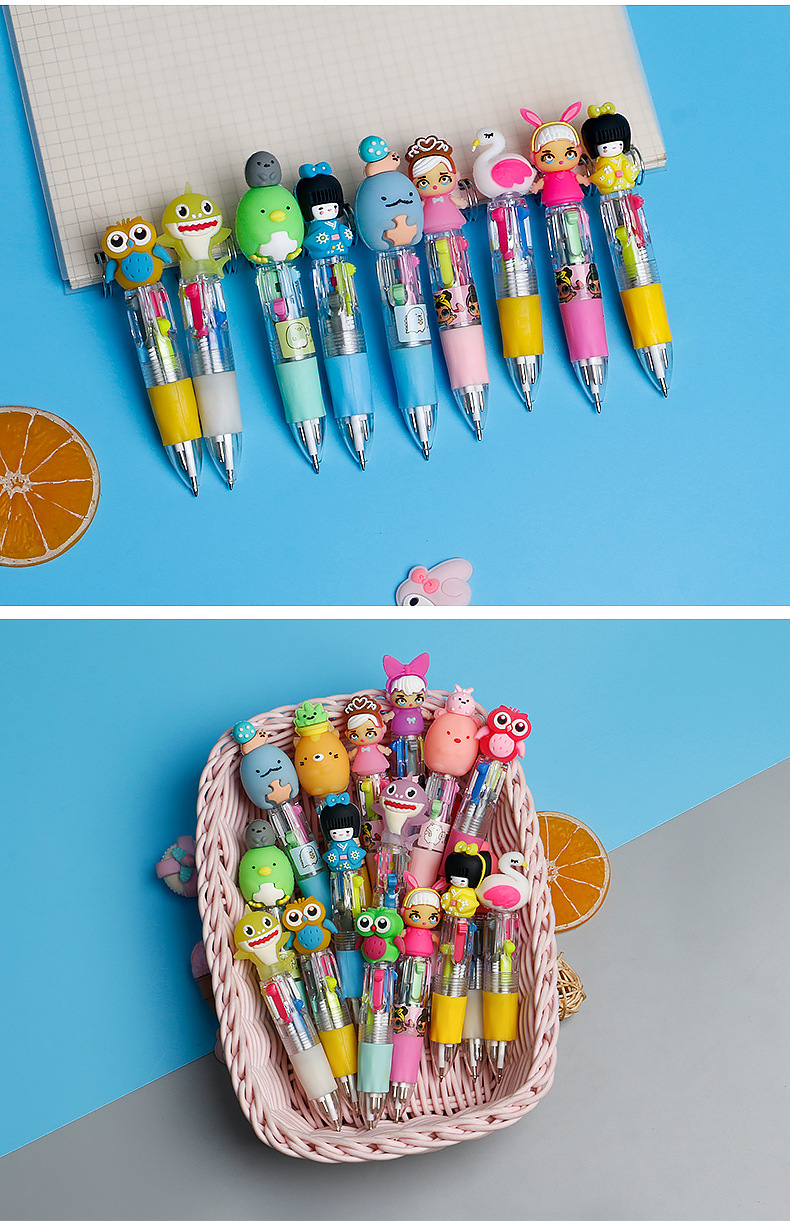 Fabricante mayorista de cuatro colores bolígrafo de silicona bolígrafo multicolor de dibujos animados cabeza portátil de estudiantes