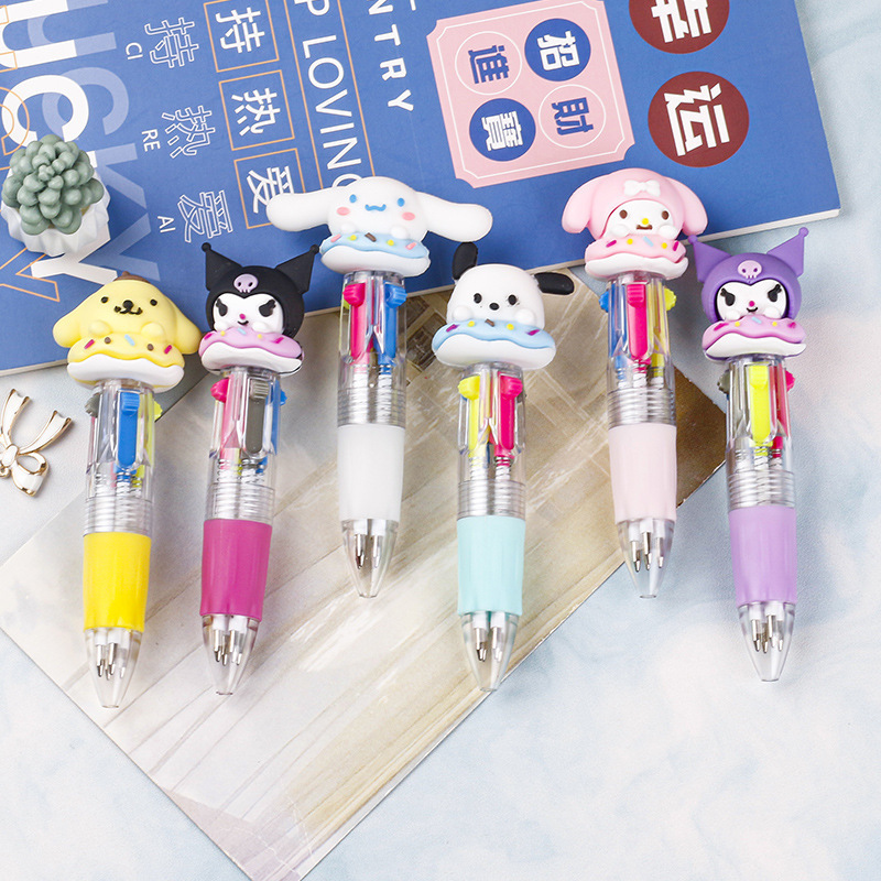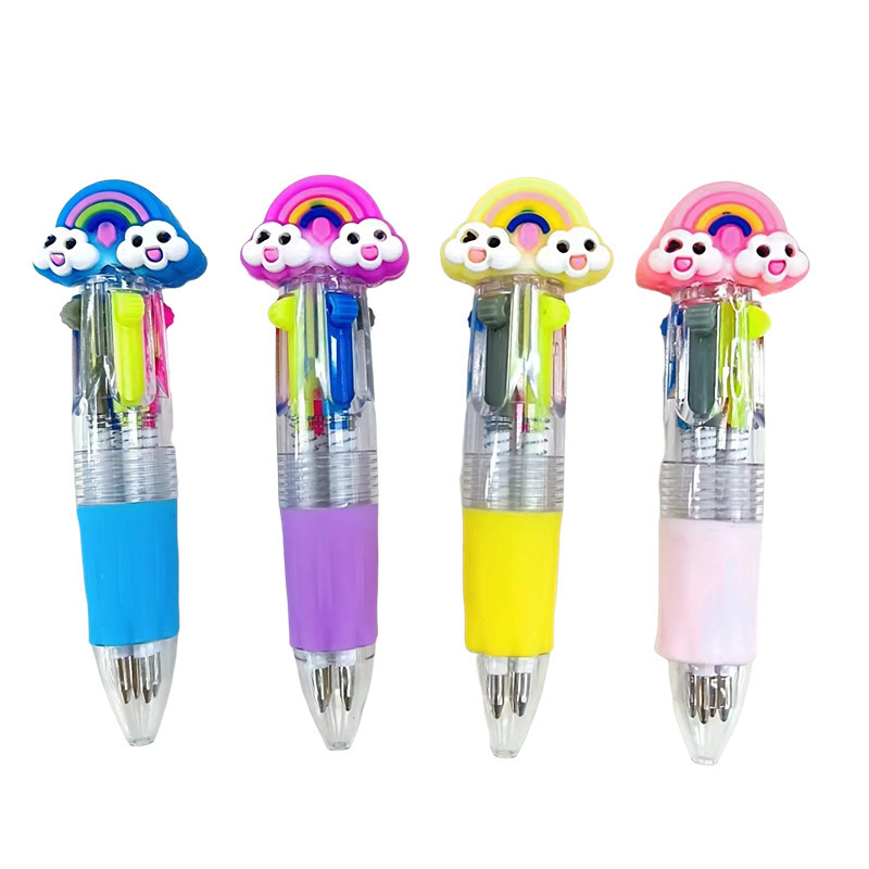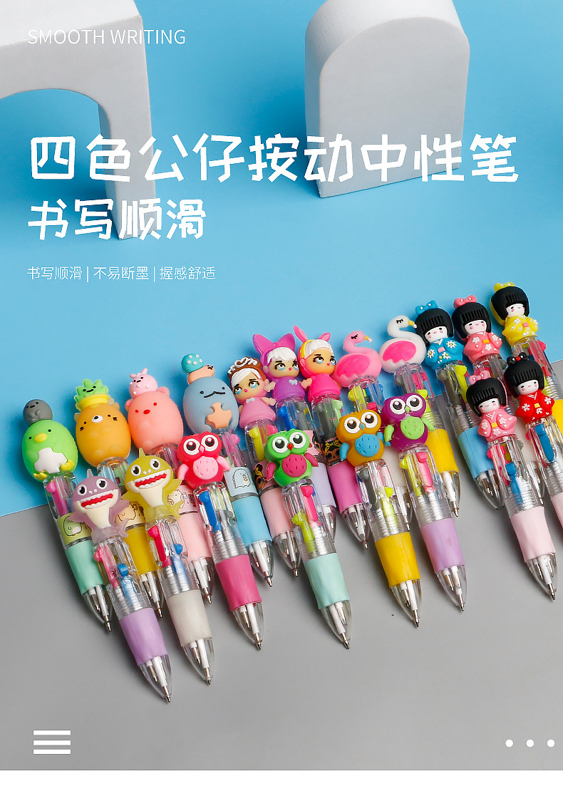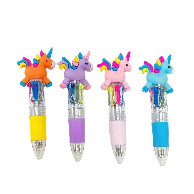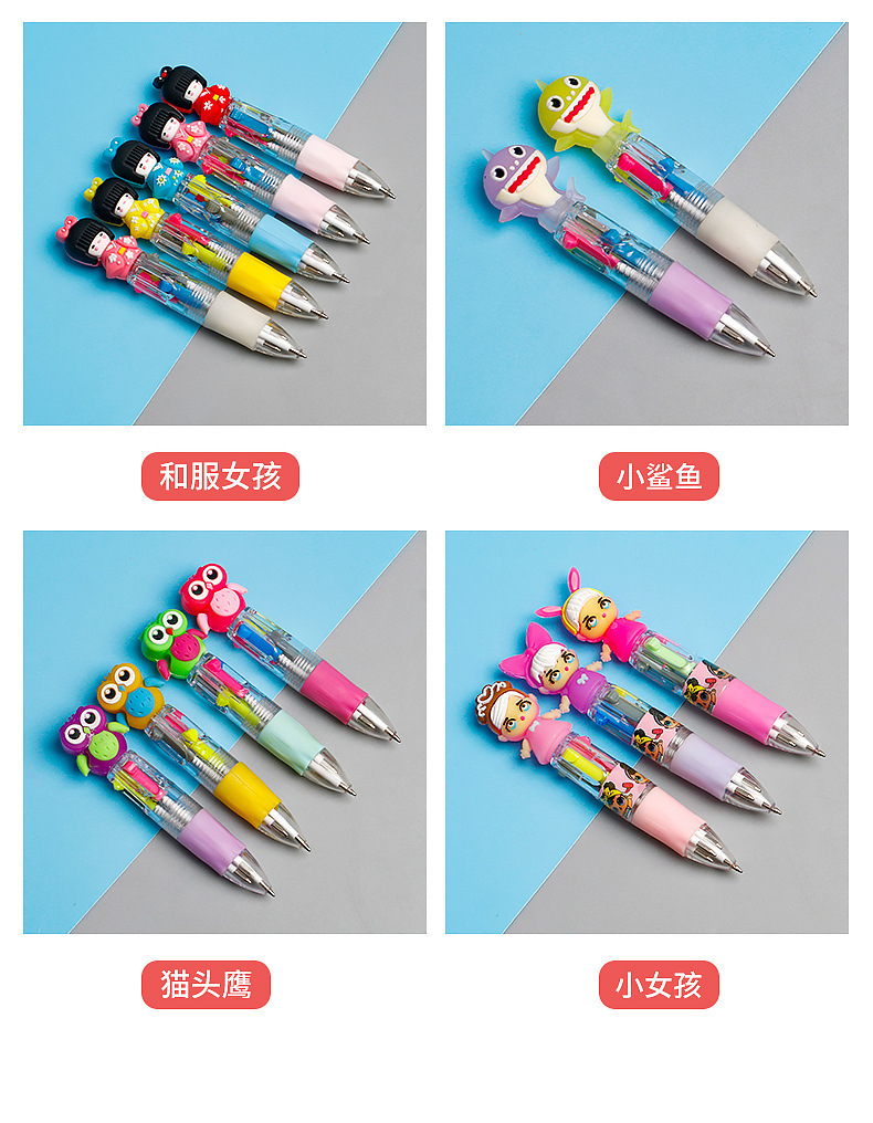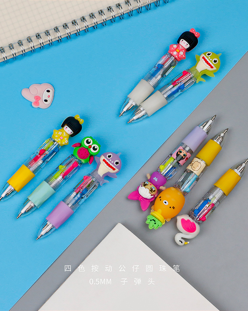 Fabricante mayorista de cuatro colores bolígrafo de silicona bolígrafo multicolor de dibujos animados cabeza portátil de estudiantes