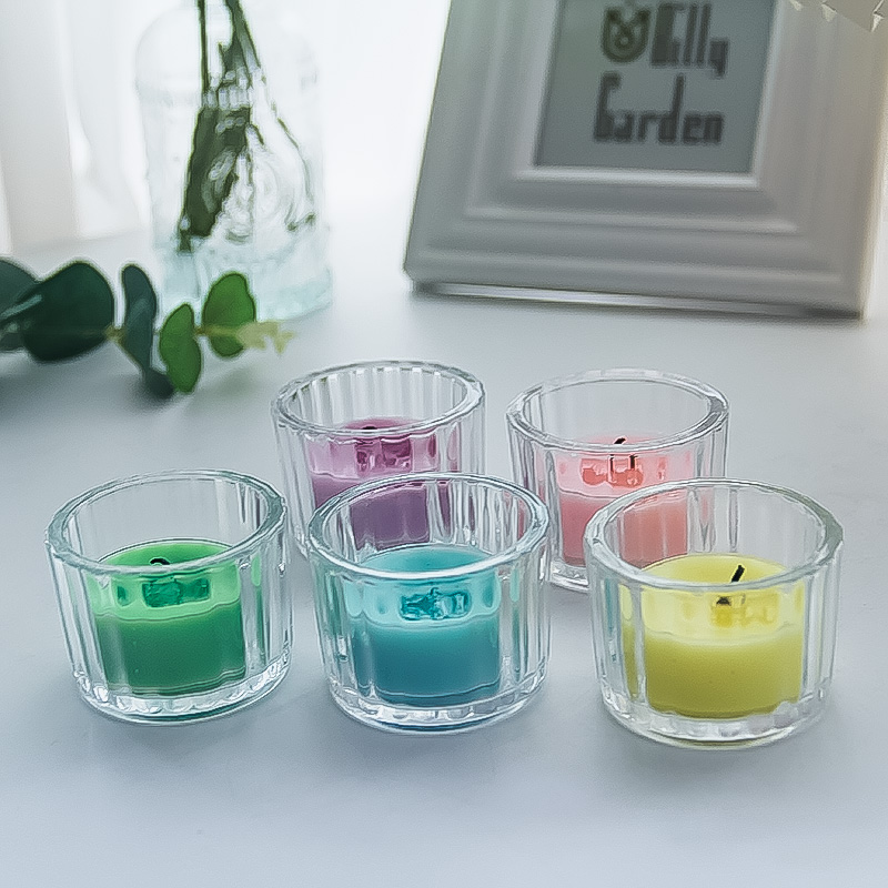 Mini pequeño vidrio aromaterapia vela taza hogar rayas verticales candelabro frasco regalo fragancia romántica vela botella vacía