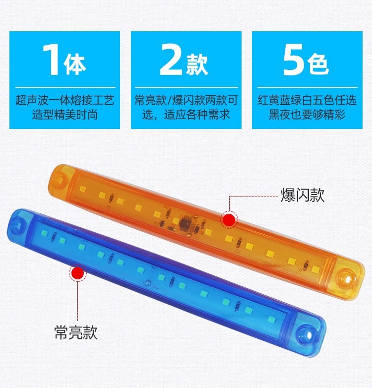 Lámpara lateral transfronteriza 12LED lámpara lateral larga - tipo de flash de 24V luz de dirección de alto brillo ultrasónica luz de advertencia de ancho