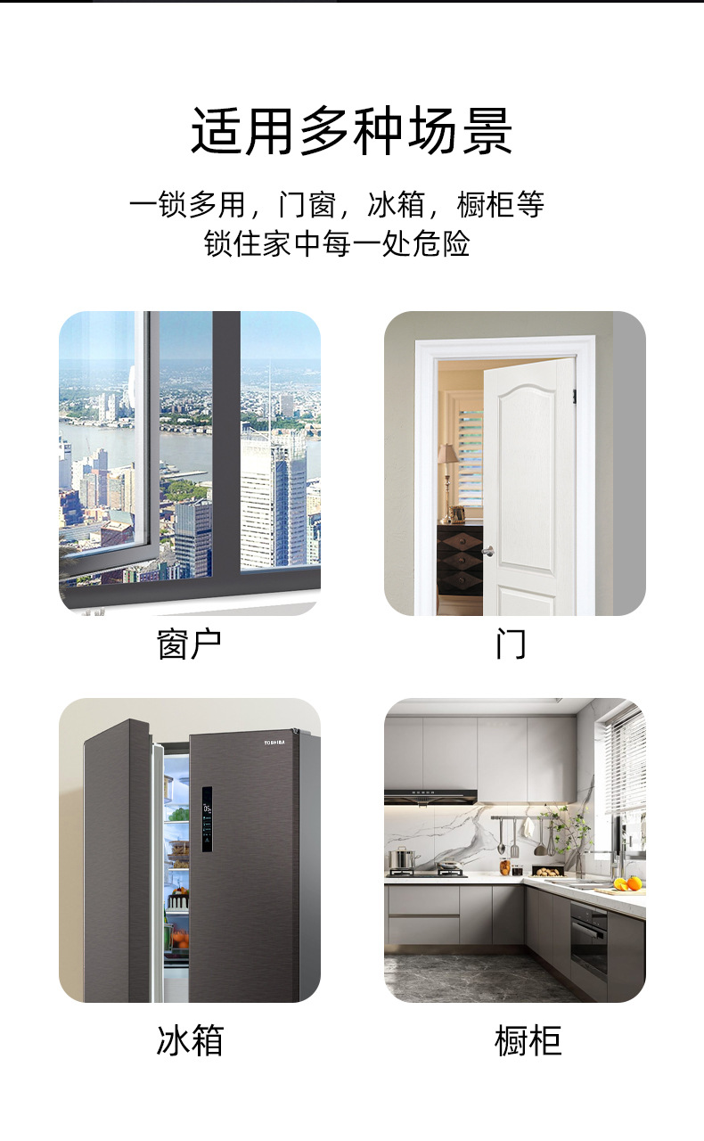 Fabricante al por mayor de cerradura de cajón de longitud ajustable, limitador de ventana para niños, abridor de ventana de puerta de gabinete para mascotas
