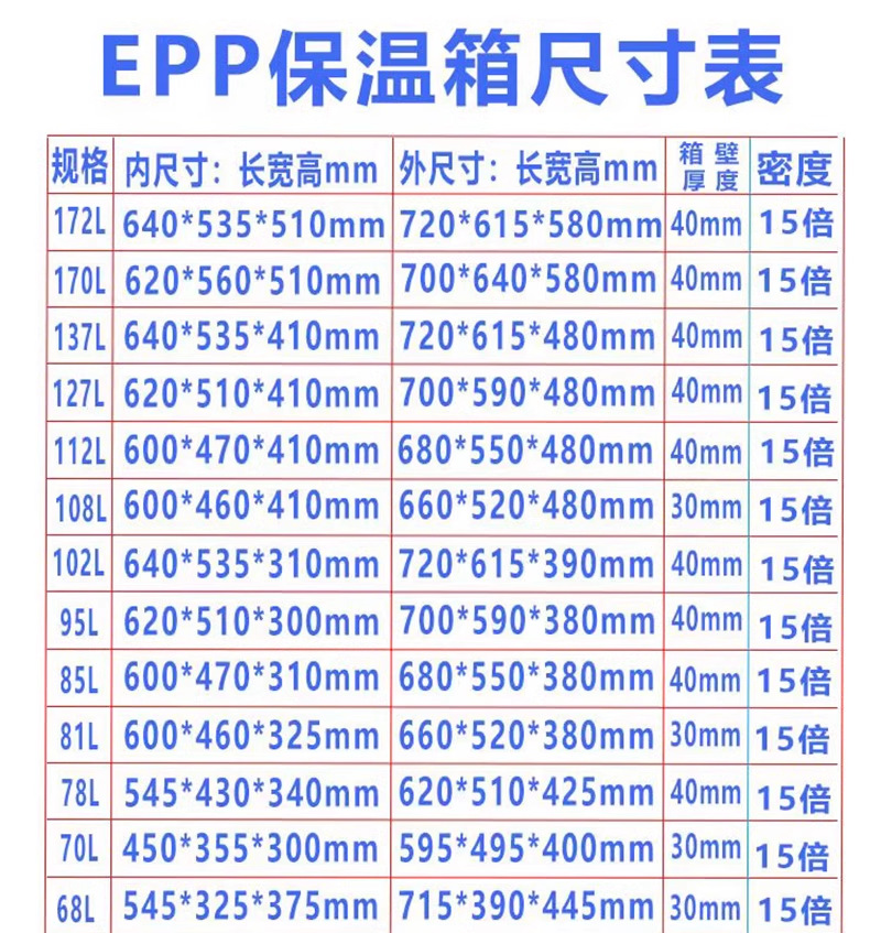 Alimentos EPP caja de aislamiento caja de espuma comedor comedor caja de comida caja de comida para llevar caja de entrega de alimentos tienda comercial refrigerador