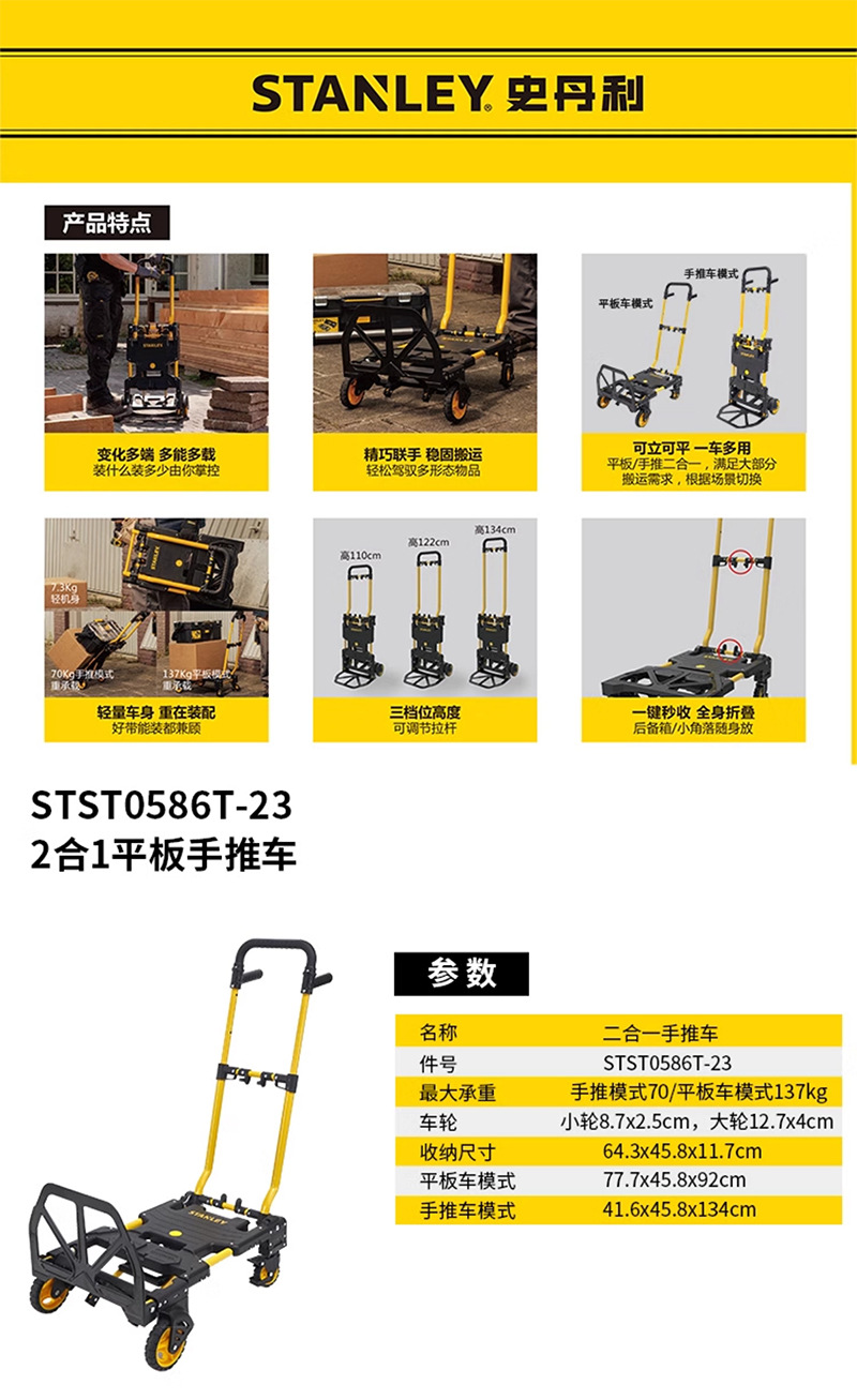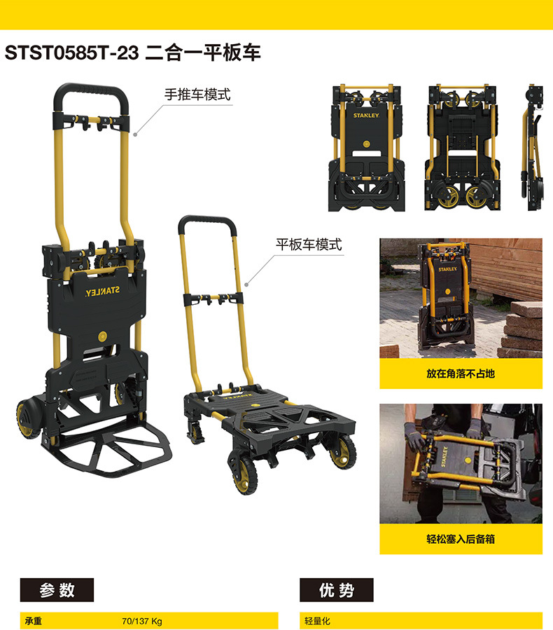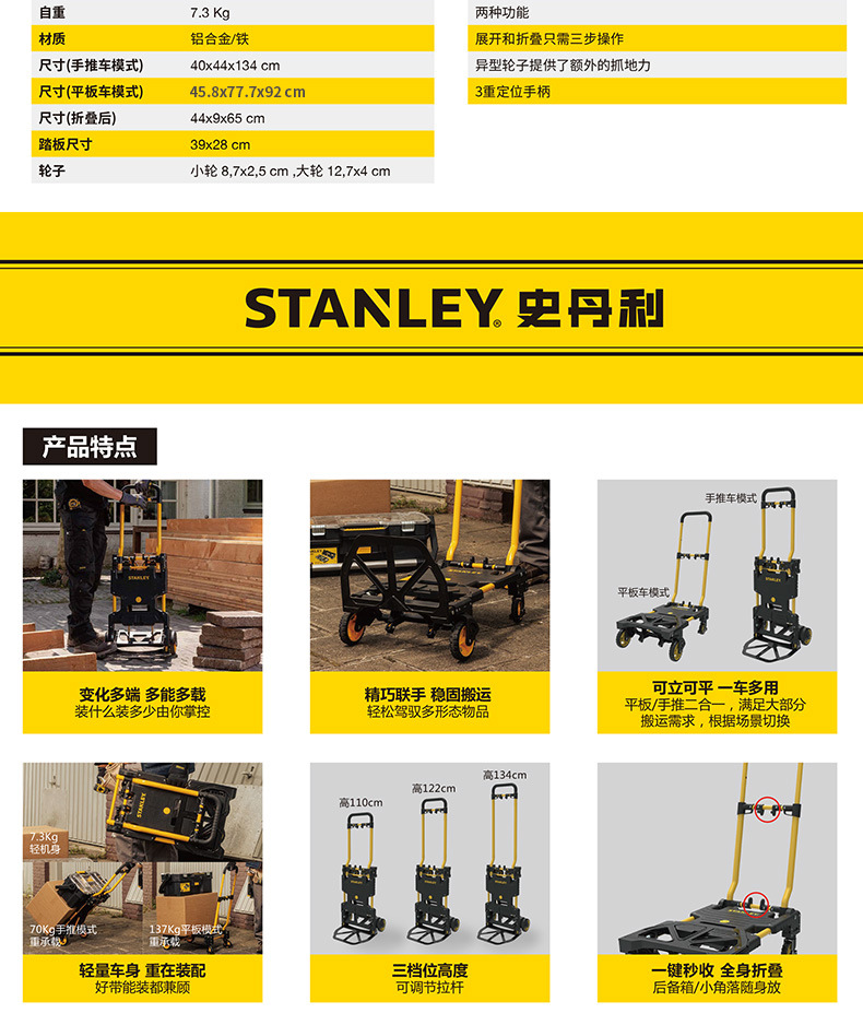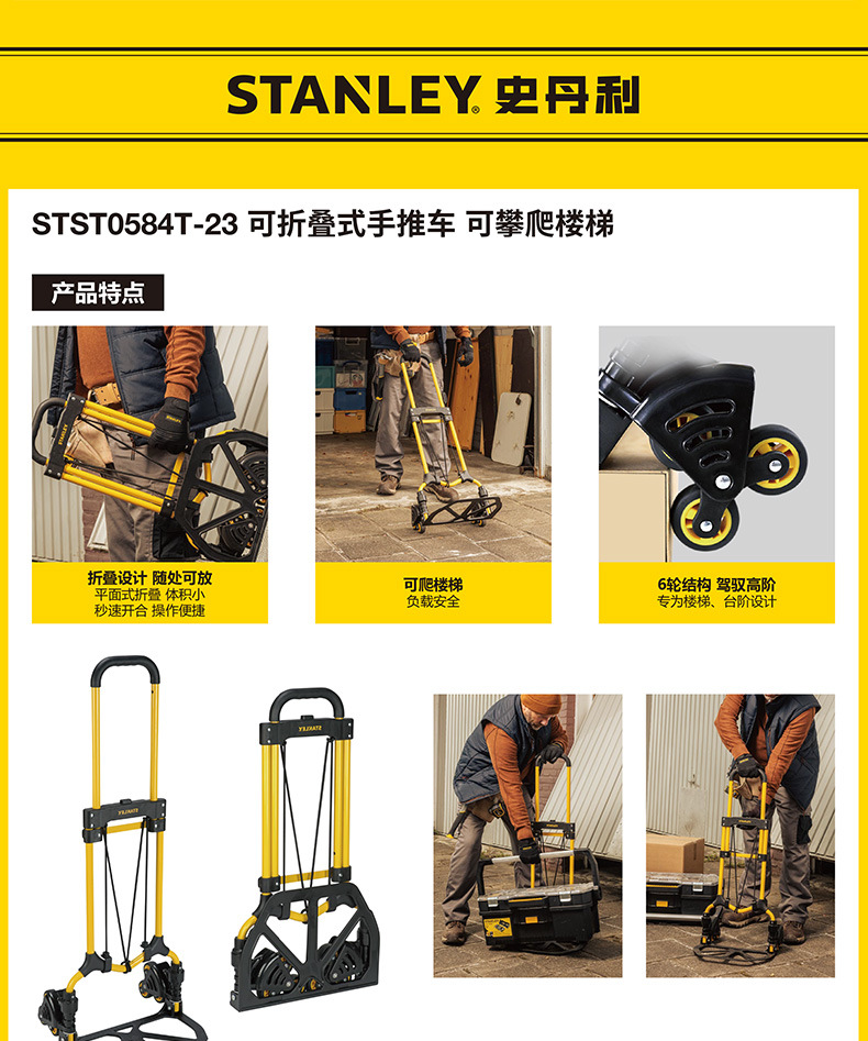 Stanley nuevo 2 - en - 1 carrito plegable portátil con freno de transporte de placa de tirón de manija de carro pequeño