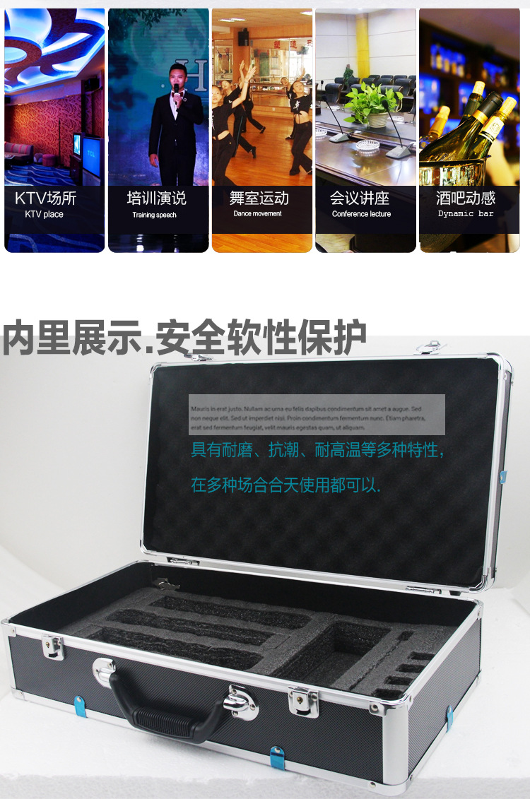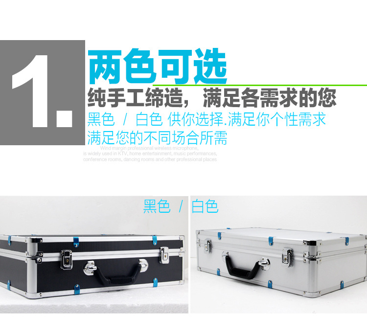 Uno, dos, uno, cuatro, micrófono inalámbrico, caja de aluminio, micrófono inalámbrico, caja de aleación de aluminio, caja portátil a prueba de golpes de aviación