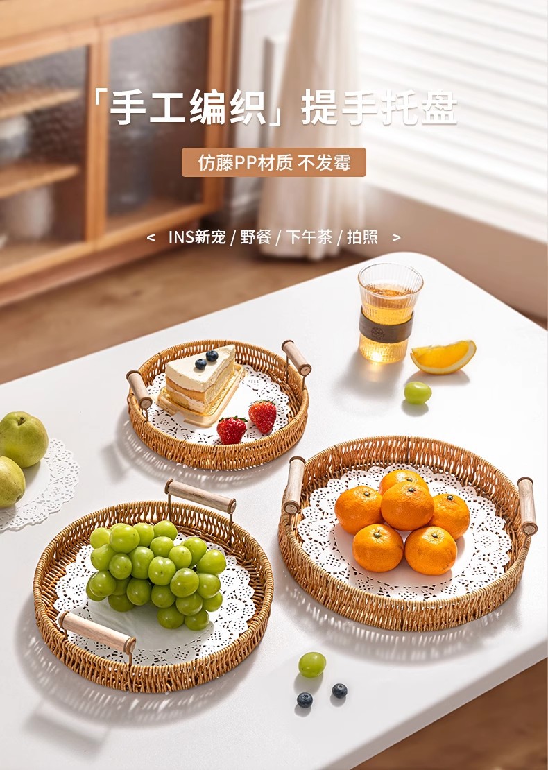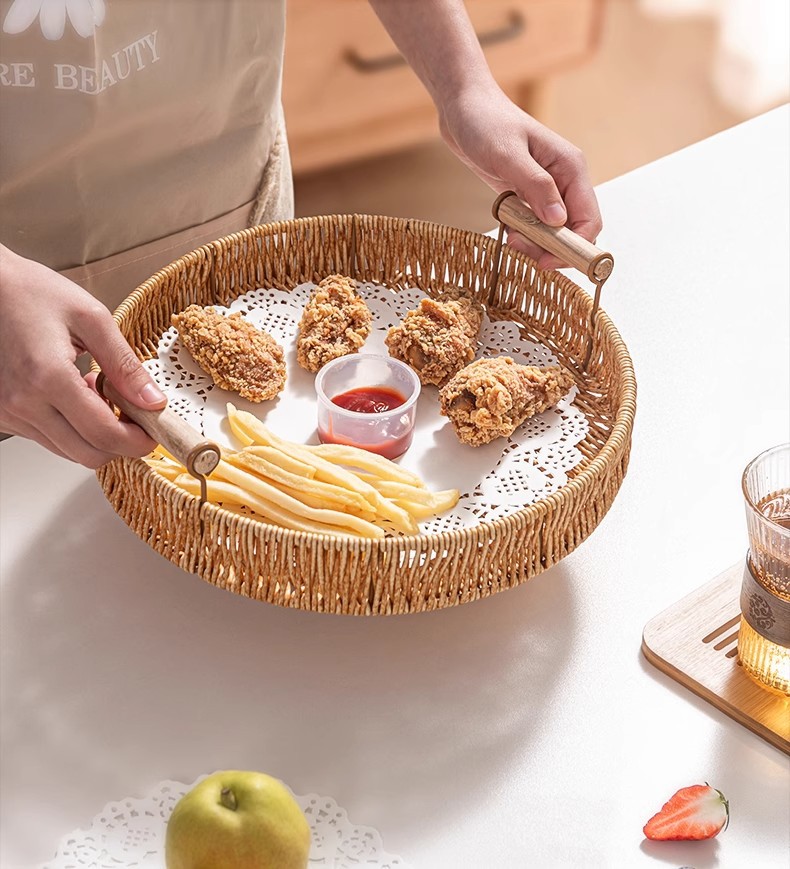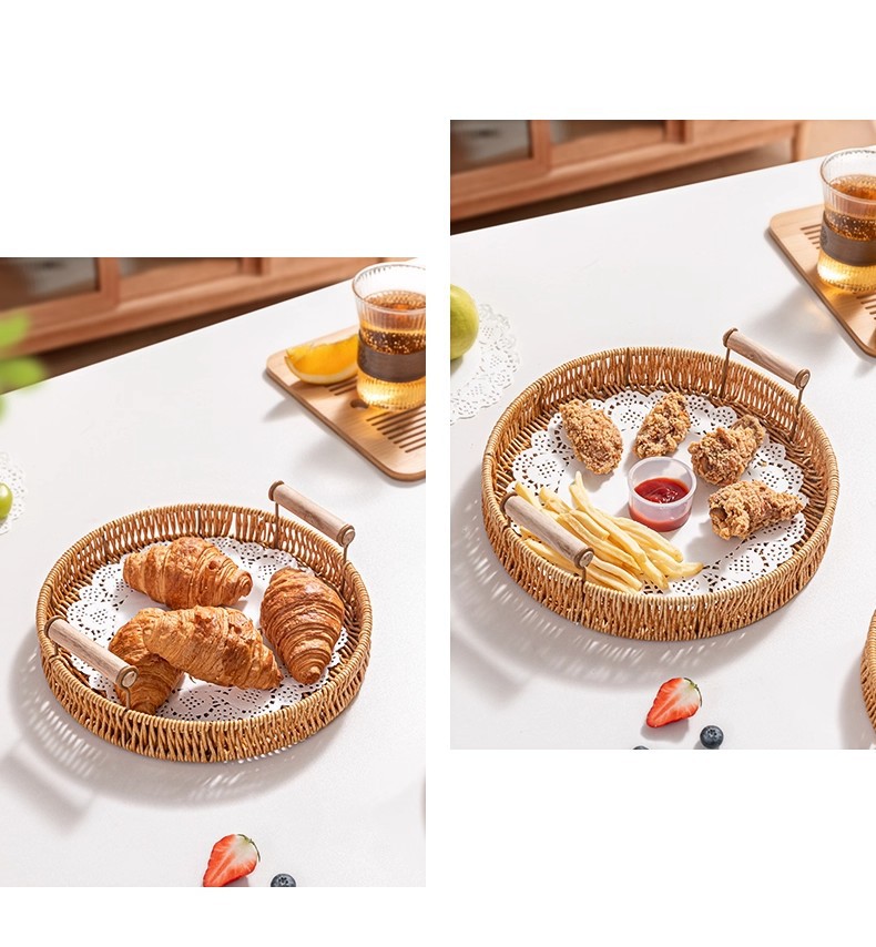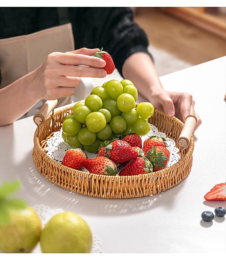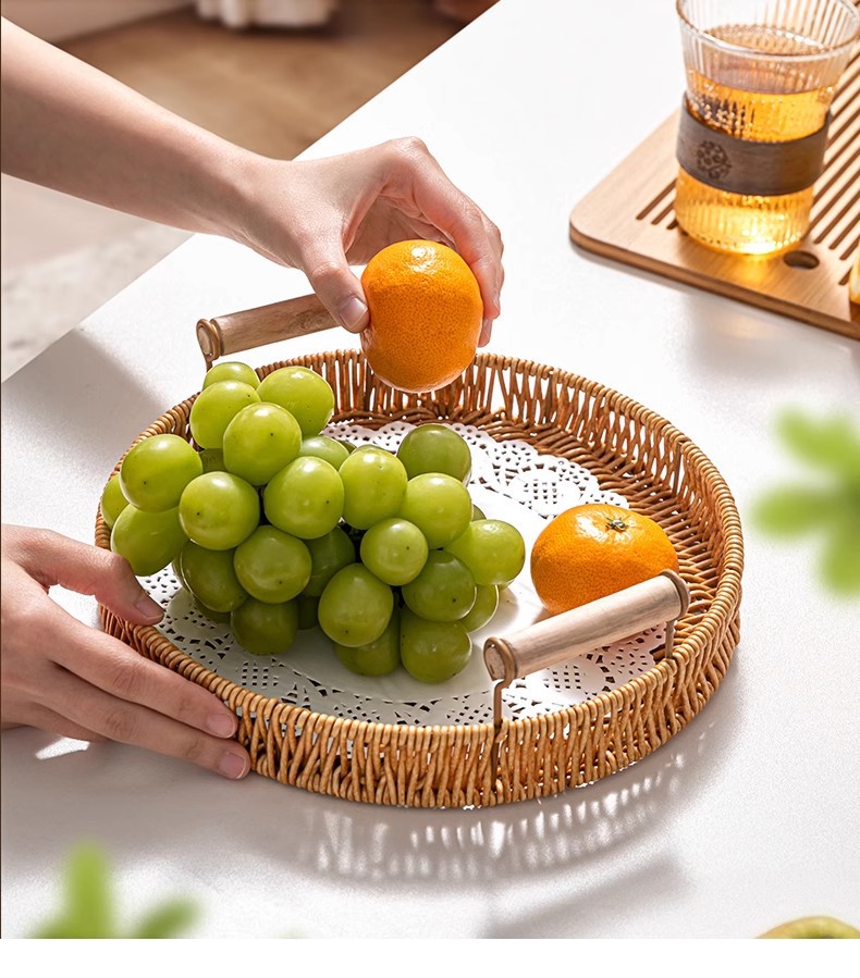 Bandeja de ratán, plato de frutas japonés, canasta de pan de lujo ligero para el hogar, canasta de pan al vapor, canasta de desayuno, canasta de bocadillos de picnic de bambú