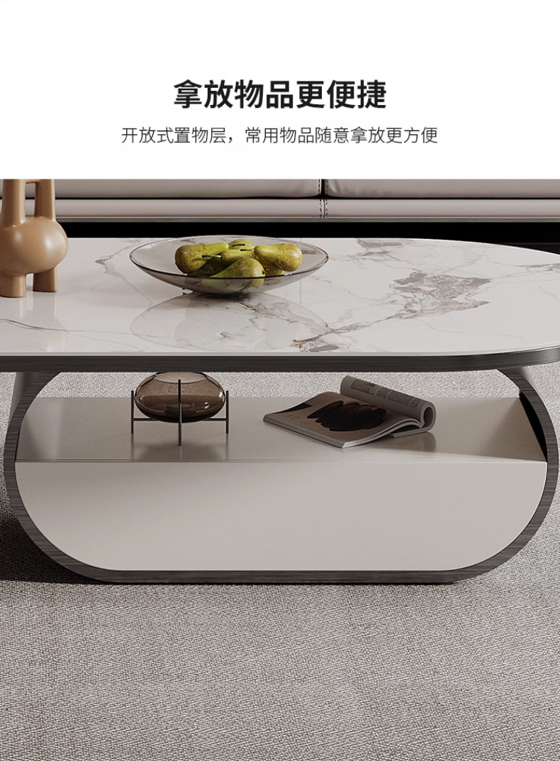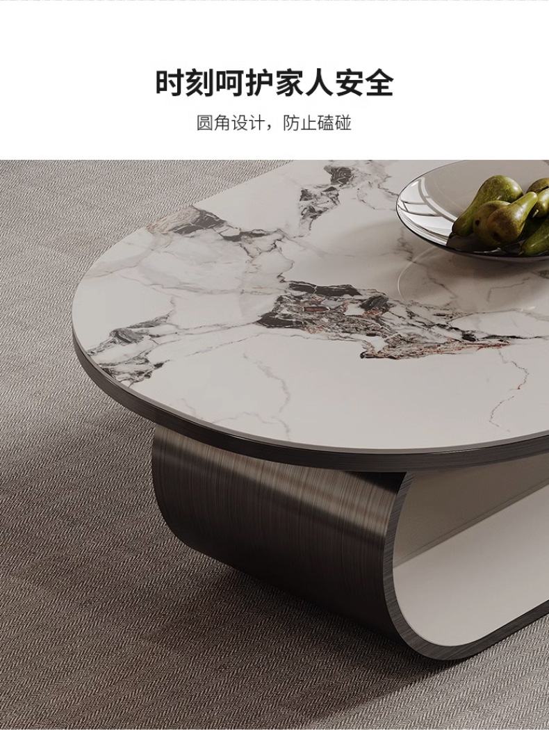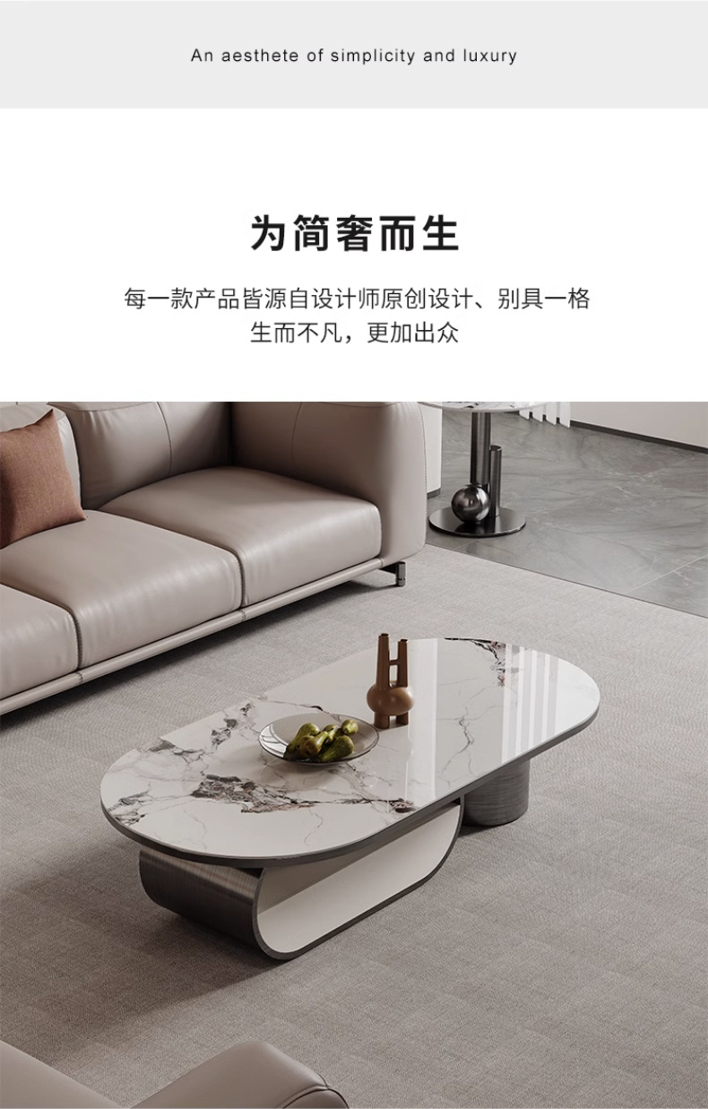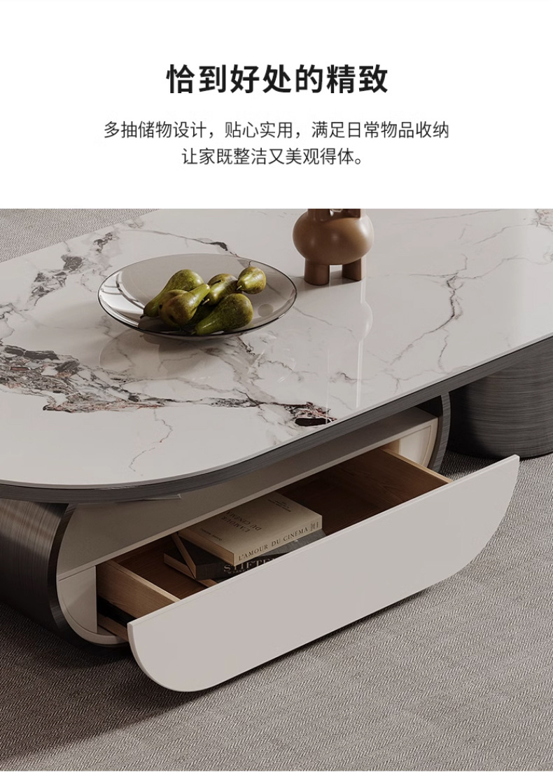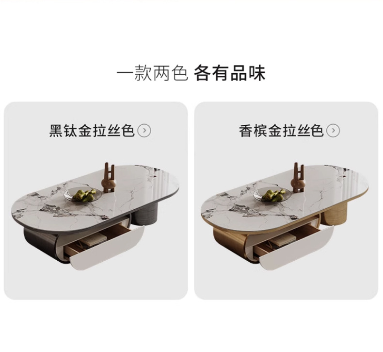 Mesa de té de placa de roca ovalada de lujo de estilo italiano moderna minimalista con cajón creativo apartamento grande y pequeño sala de estar mesa de té en casa