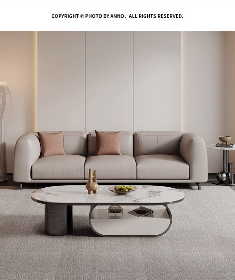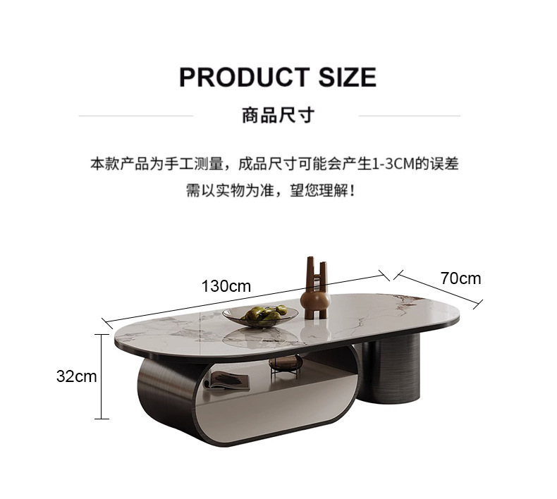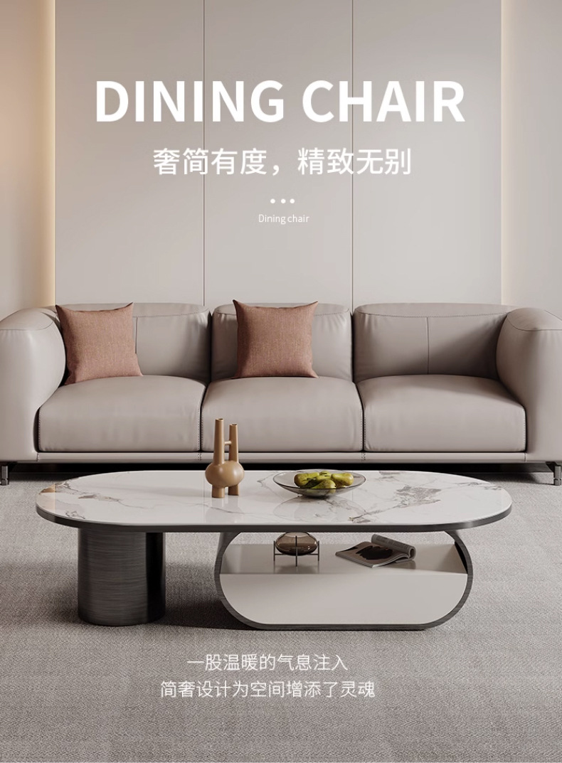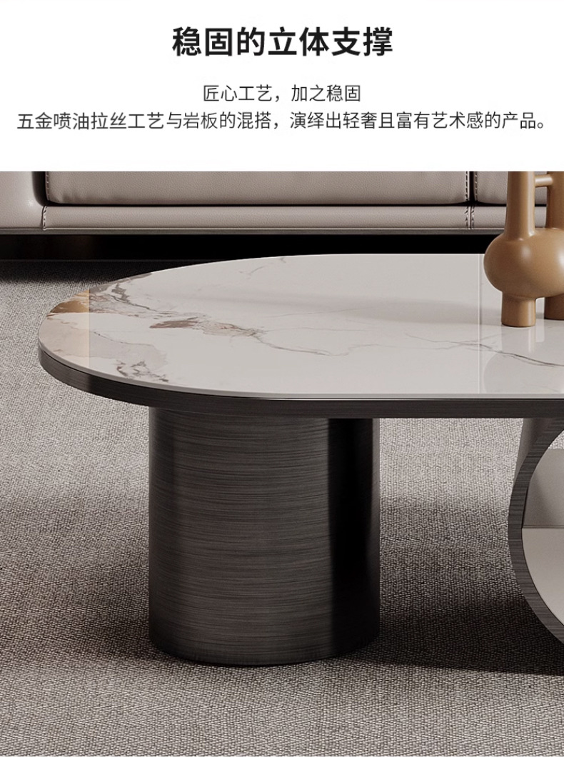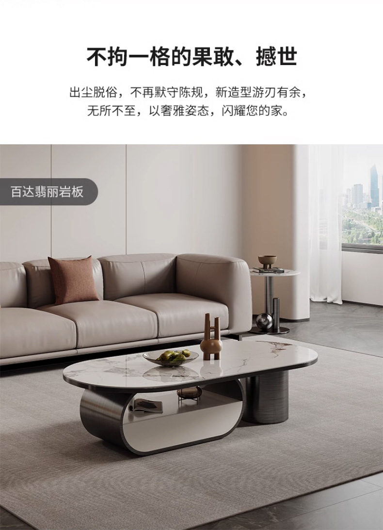 Mesa de té de placa de roca ovalada de lujo de estilo italiano moderna minimalista con cajón creativo apartamento grande y pequeño sala de estar mesa de té en casa
