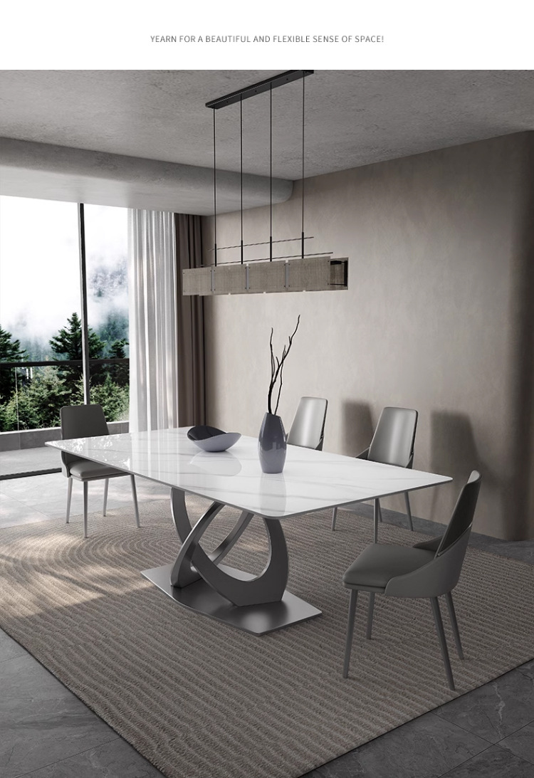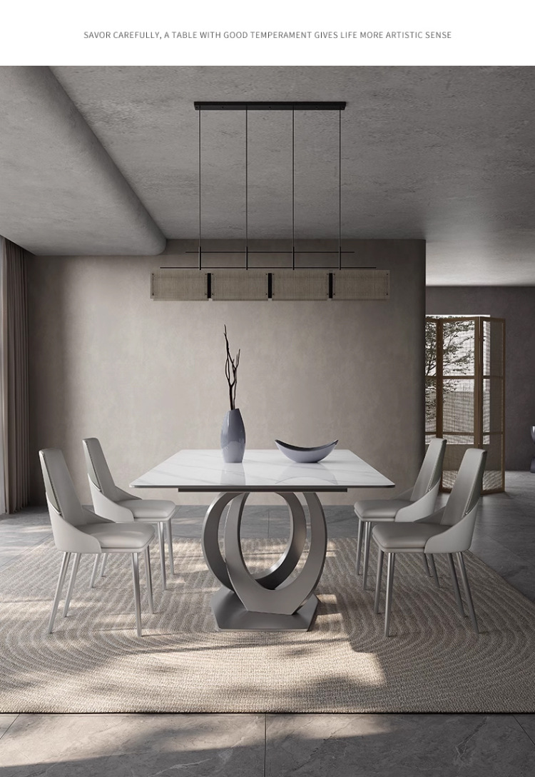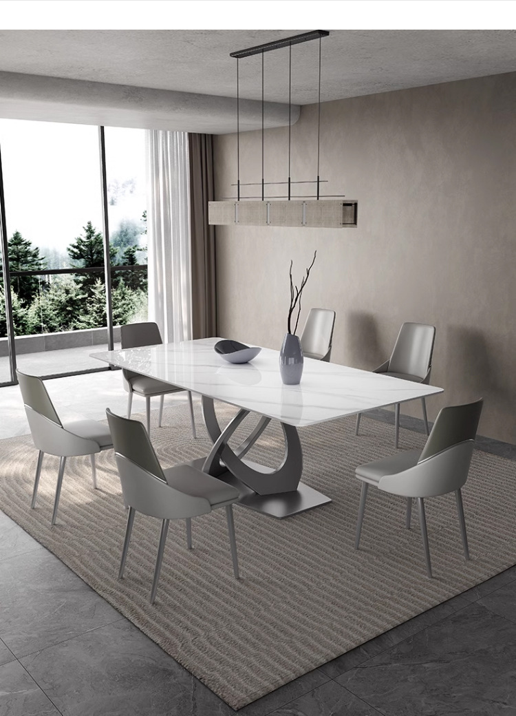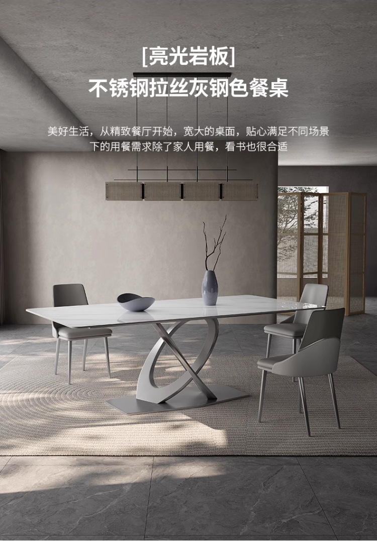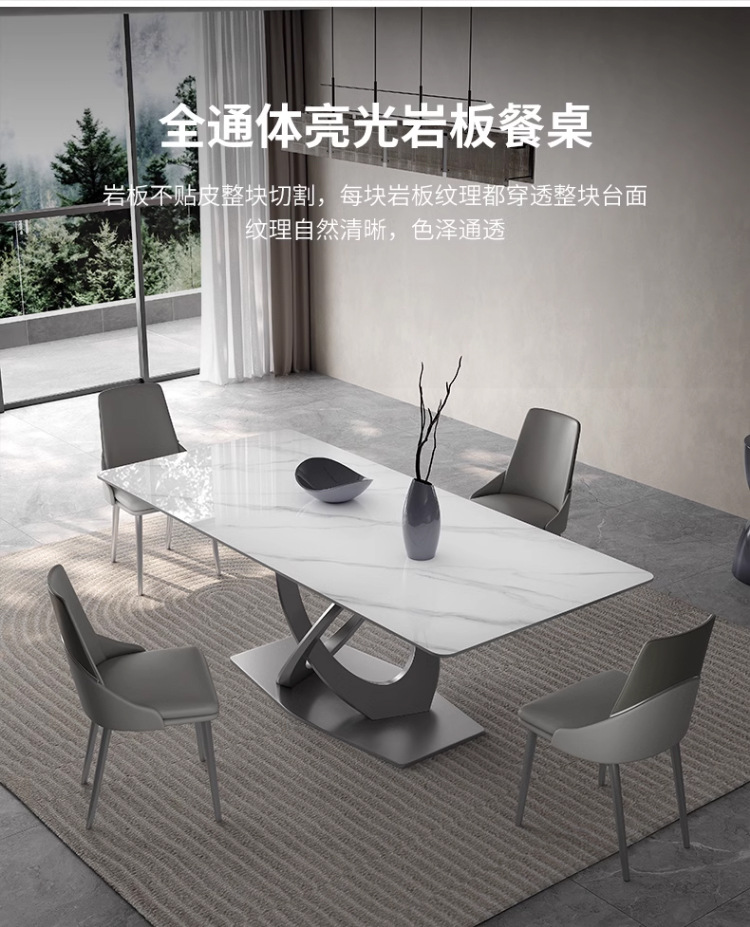 Taller casero minimalista italiano New Rock placa mesa de comedor y silla combinación de luz de lujo de alta gama brillante pequeño apartamento mesa de comedor rectangular